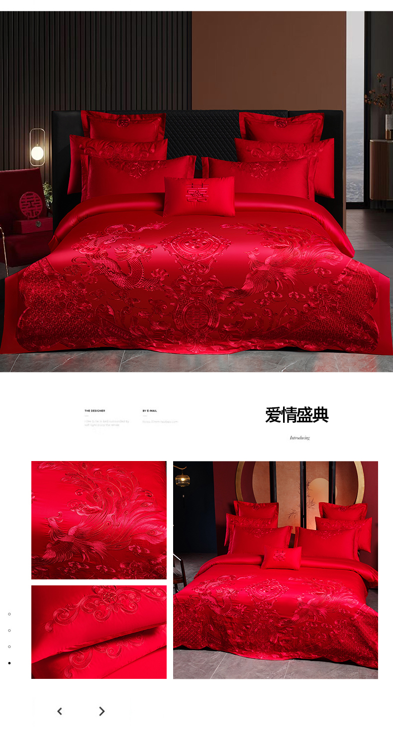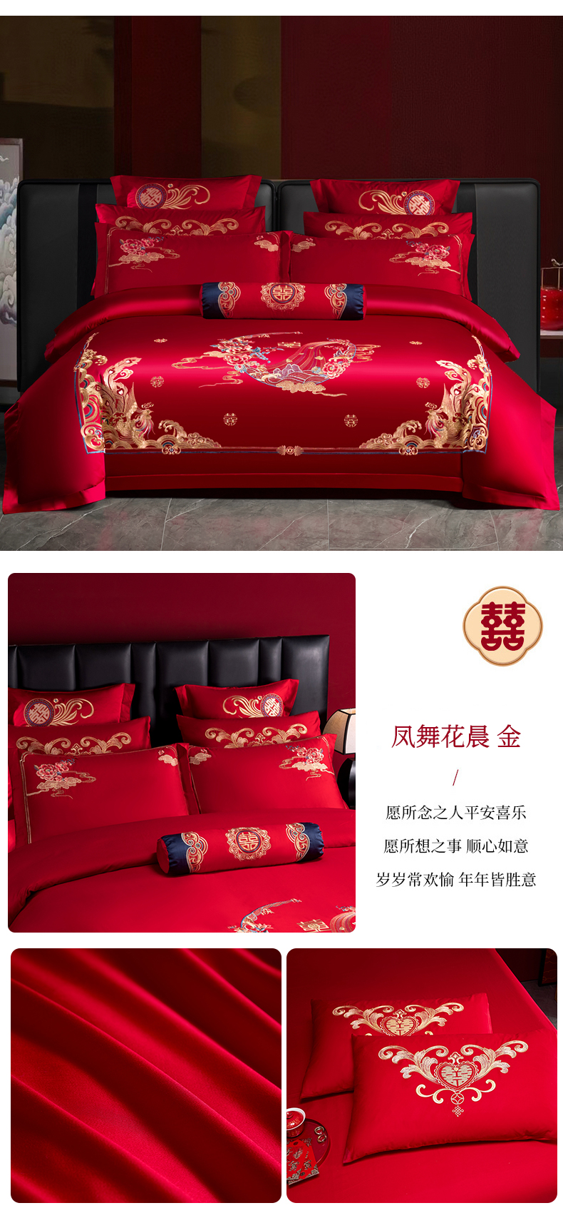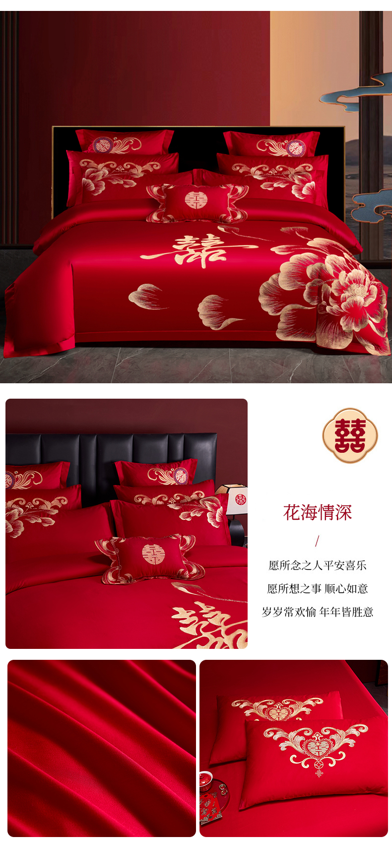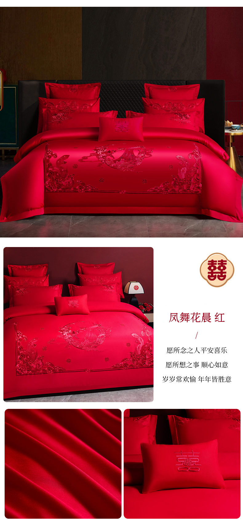 (总)慕她家纺 2026慕她大花工艺款全棉纯棉婚庆四件套大红色刺绣结婚床上用品,鸳鸯贺喜,喜韵江山,喜结连理,花开志喜,喜嫁,双喜临门,天赐良缘,龙凤添喜,龙凤团圆,缔结良缘 红,缔结良缘 金,凤冠霞帔,福喜龙凤,欢喜龙凤,佳偶天成,龙凤呈祥,龙凤佳缘,龙凤送子,龙凤祥和,龙翔凤舞,龙啸凤吟,甜蜜龙凤,早生贵子,挚爱龙凤,百子登科,恩爱情深,繁花似锦,恋曲牡丹,美丽红妆,如愿,诗韵牡丹,走进幸福 红,走进幸福 金,百子江山,好运吉祥,吉祥龙凤,名门龙凤,眷恋龙凤,天生一对,执手龙凤,至尊龙凤,子孙满堂,百子贺喜