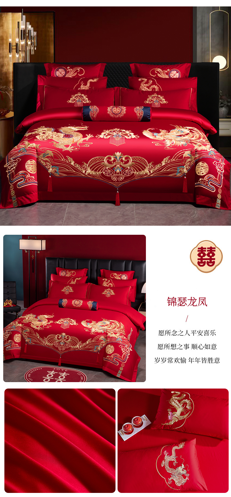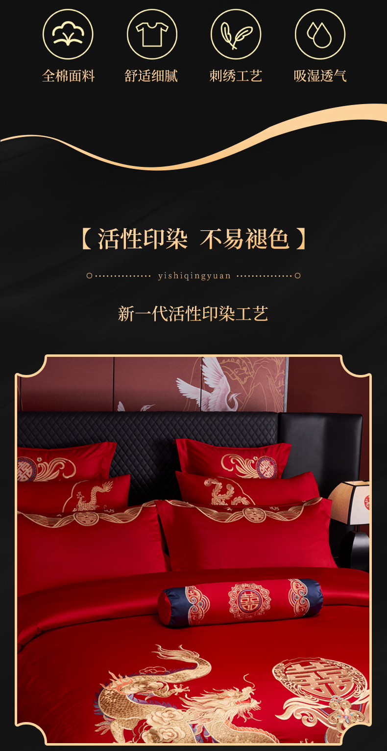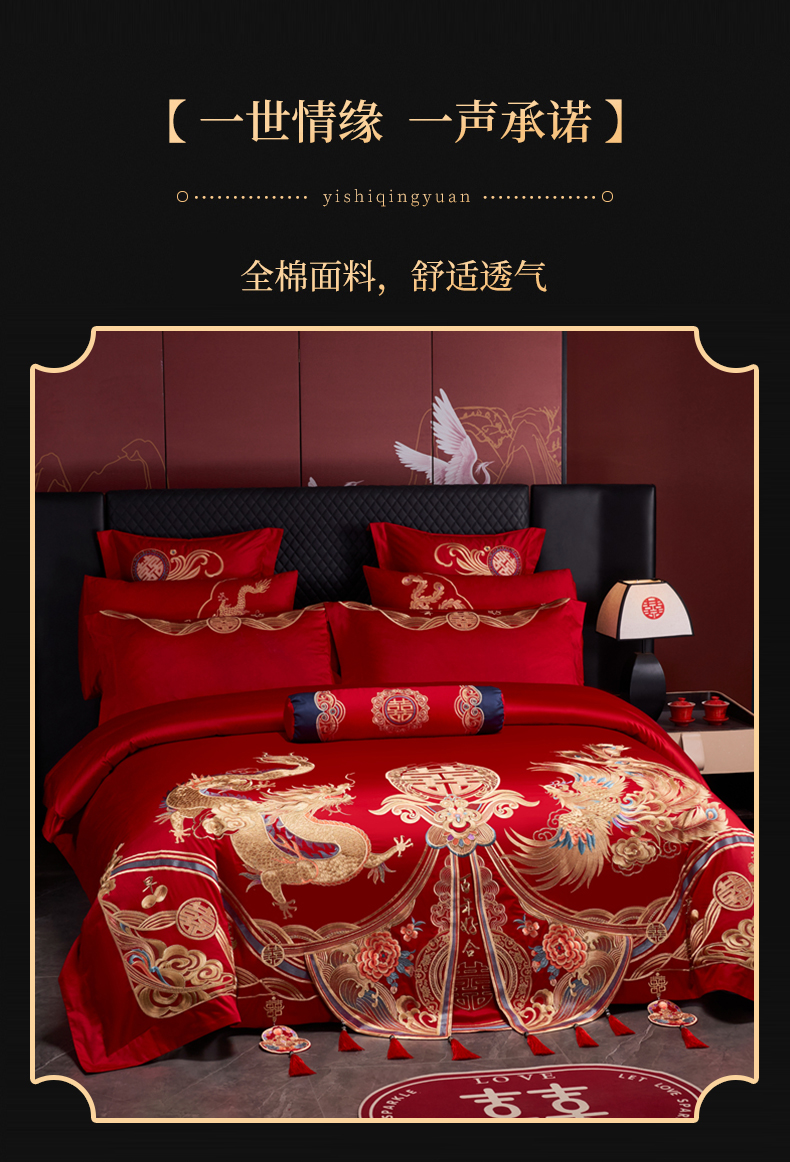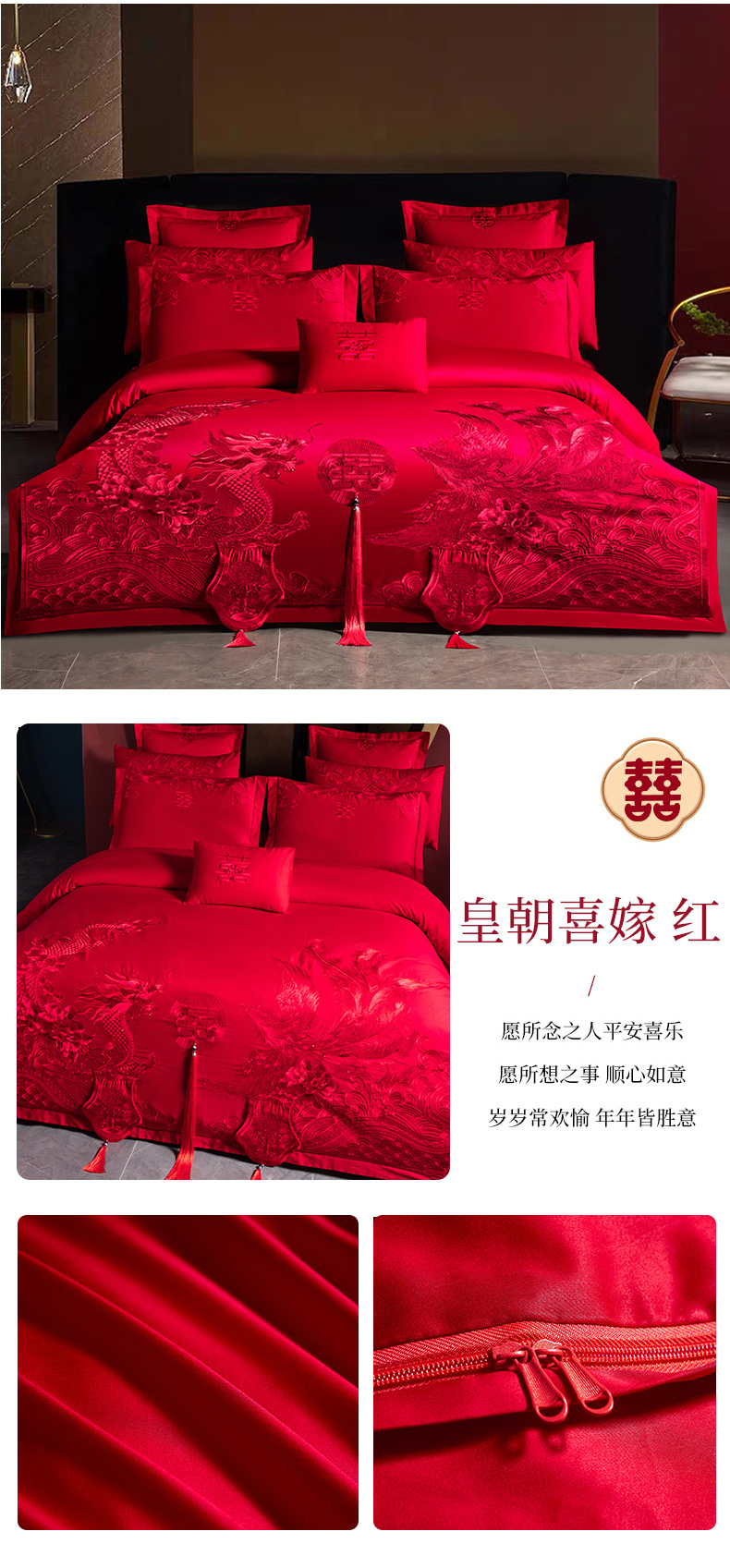(总)慕她家纺 2026年全棉纯棉婚庆四件套大红色刺绣结床上用品(床盖款加40),喜上加喜,浪漫喜事,永浴爱河,龙凤报喜,龙凤迎亲,锦绣龙凤,琴瑟和鸣,龙凤婚约,礼赞唐朝,长绒棉-欢喜龙凤,长绒棉-早生贵子,龙凤瑞彩,龙凤百子,华贵龙凤,盛世红妆,龙凤王朝,祥龙瑞凤,婚天喜地,鸾凤和鸣,盛唐婚礼
