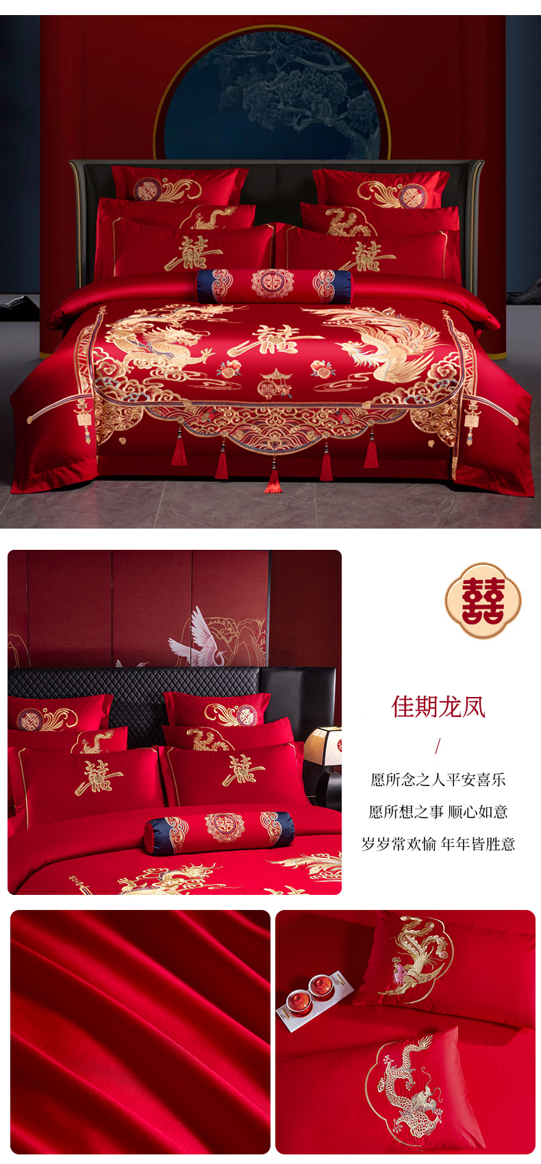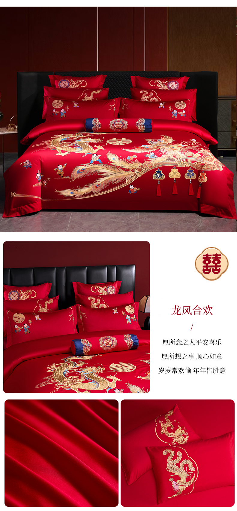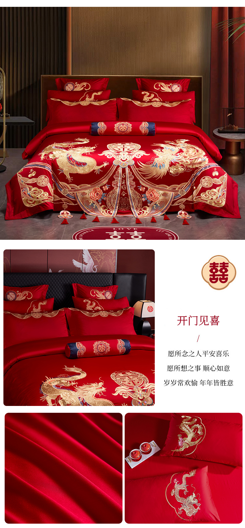 (总)慕她家纺 2026年全棉纯棉婚庆四件套大红色刺绣结床上用品(床盖款加40),喜上加喜,浪漫喜事,永浴爱河,龙凤报喜,龙凤迎亲,锦绣龙凤,琴瑟和鸣,龙凤婚约,礼赞唐朝,长绒棉-欢喜龙凤,长绒棉-早生贵子,龙凤瑞彩,龙凤百子,华贵龙凤,盛世红妆,龙凤王朝,祥龙瑞凤,婚天喜地,鸾凤和鸣,盛唐婚礼