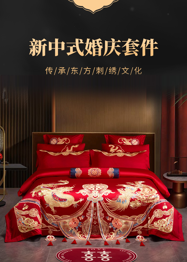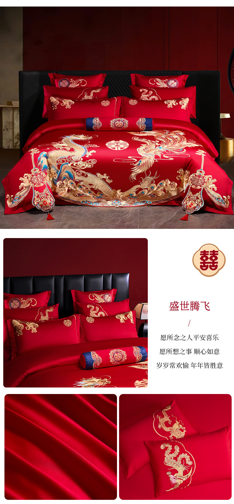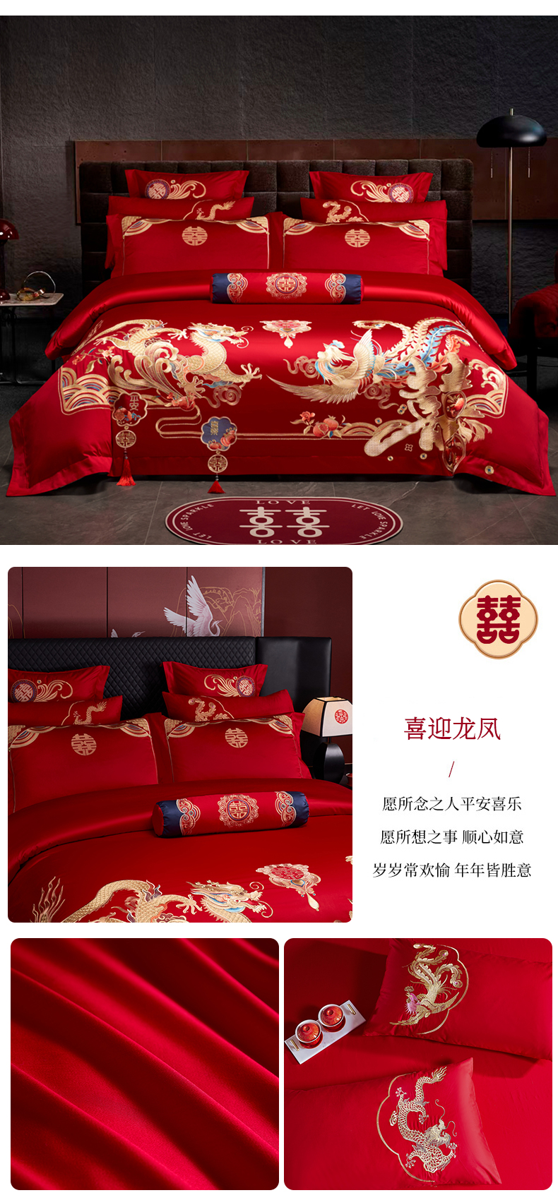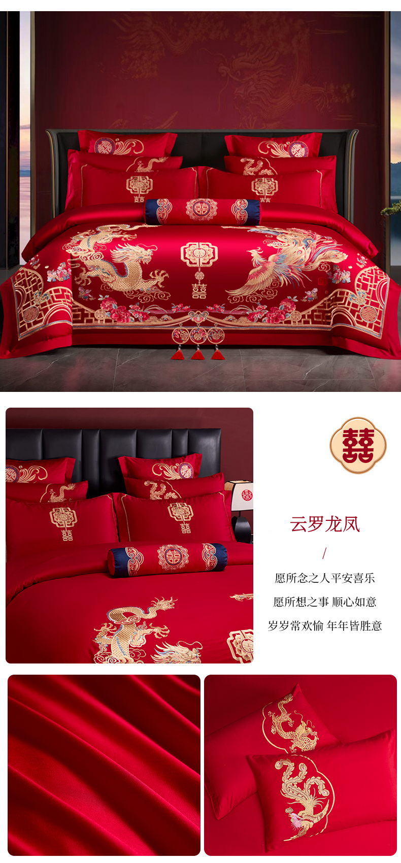 (总)慕她家纺 2026年全棉纯棉婚庆四件套大红色刺绣结床上用品(床盖款加40),喜上加喜,浪漫喜事,永浴爱河,龙凤报喜,龙凤迎亲,锦绣龙凤,琴瑟和鸣,龙凤婚约,礼赞唐朝,长绒棉-欢喜龙凤,长绒棉-早生贵子,龙凤瑞彩,龙凤百子,华贵龙凤,盛世红妆,龙凤王朝,祥龙瑞凤,婚天喜地,鸾凤和鸣,盛唐婚礼