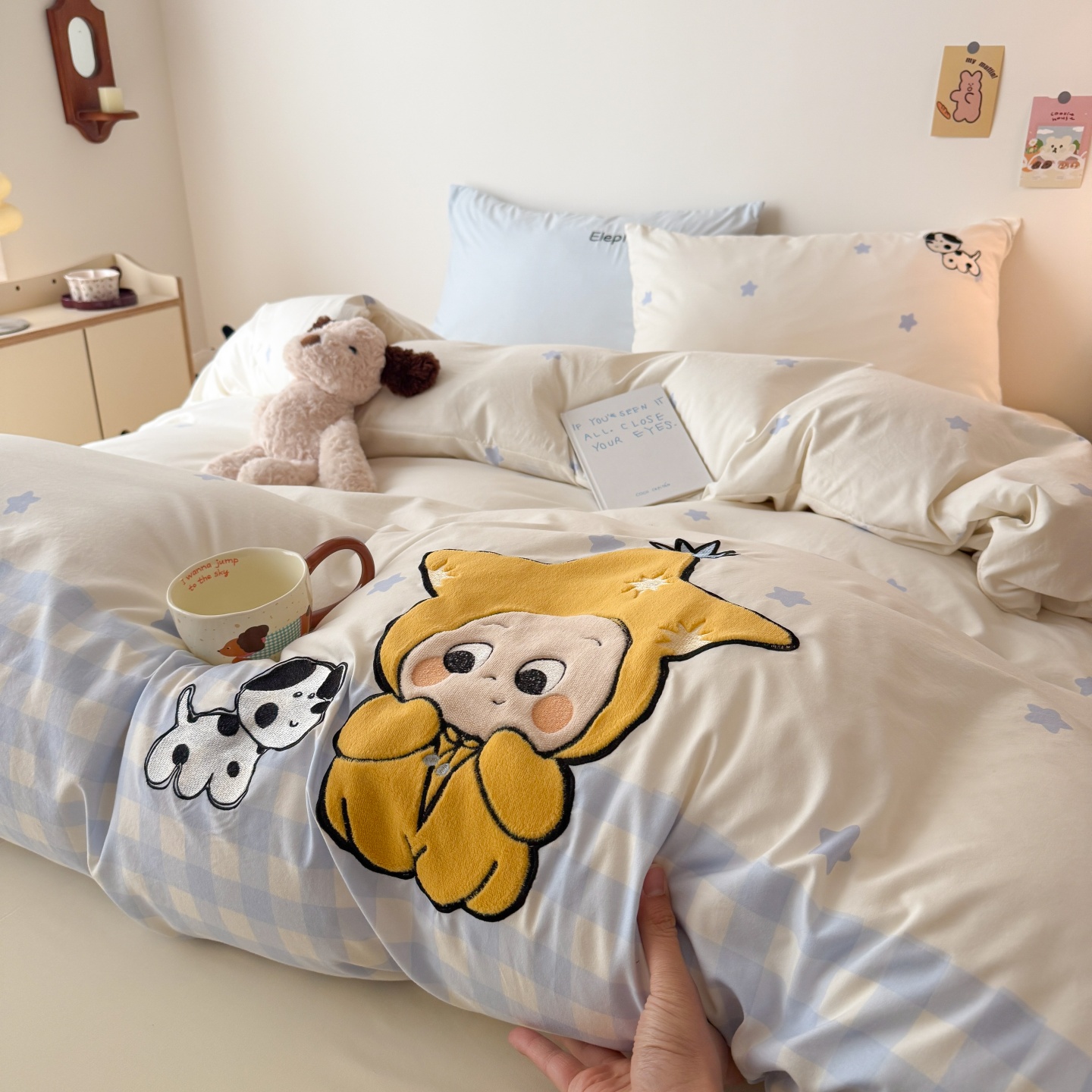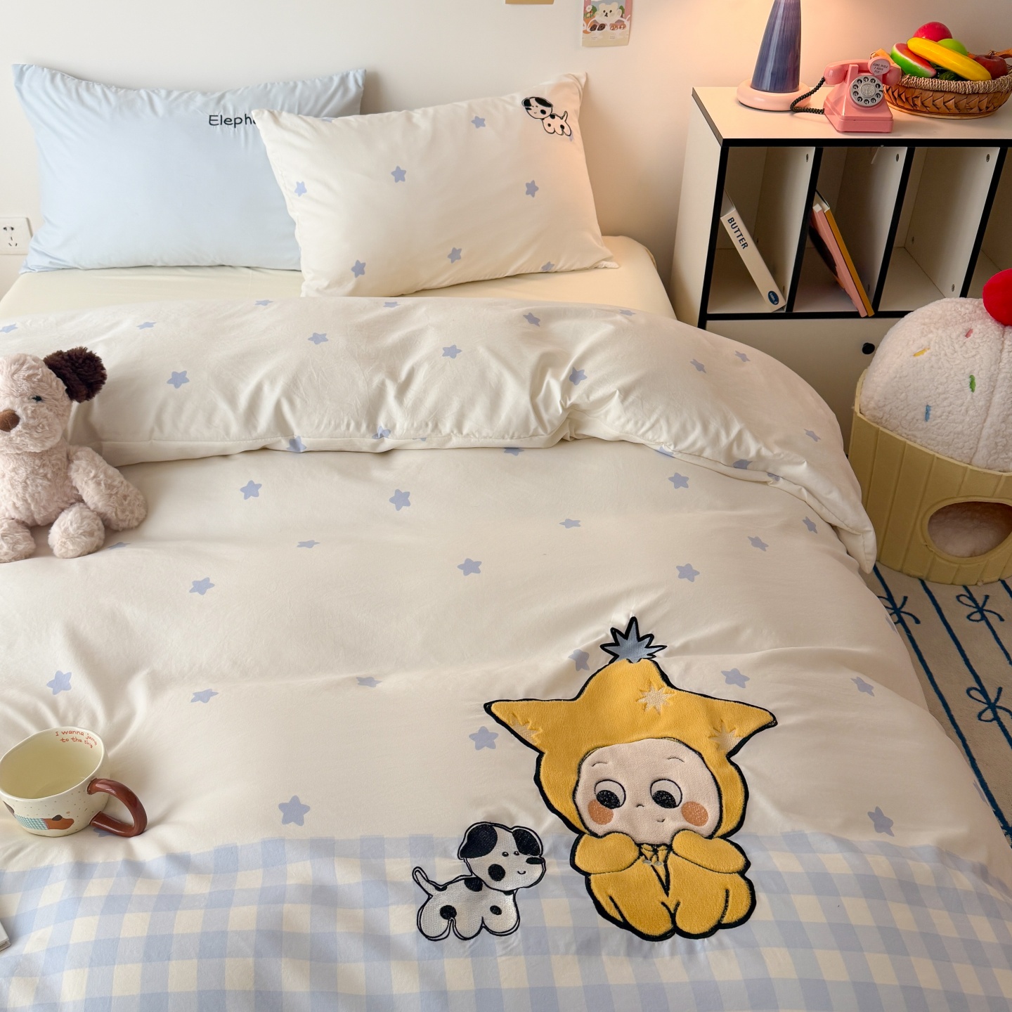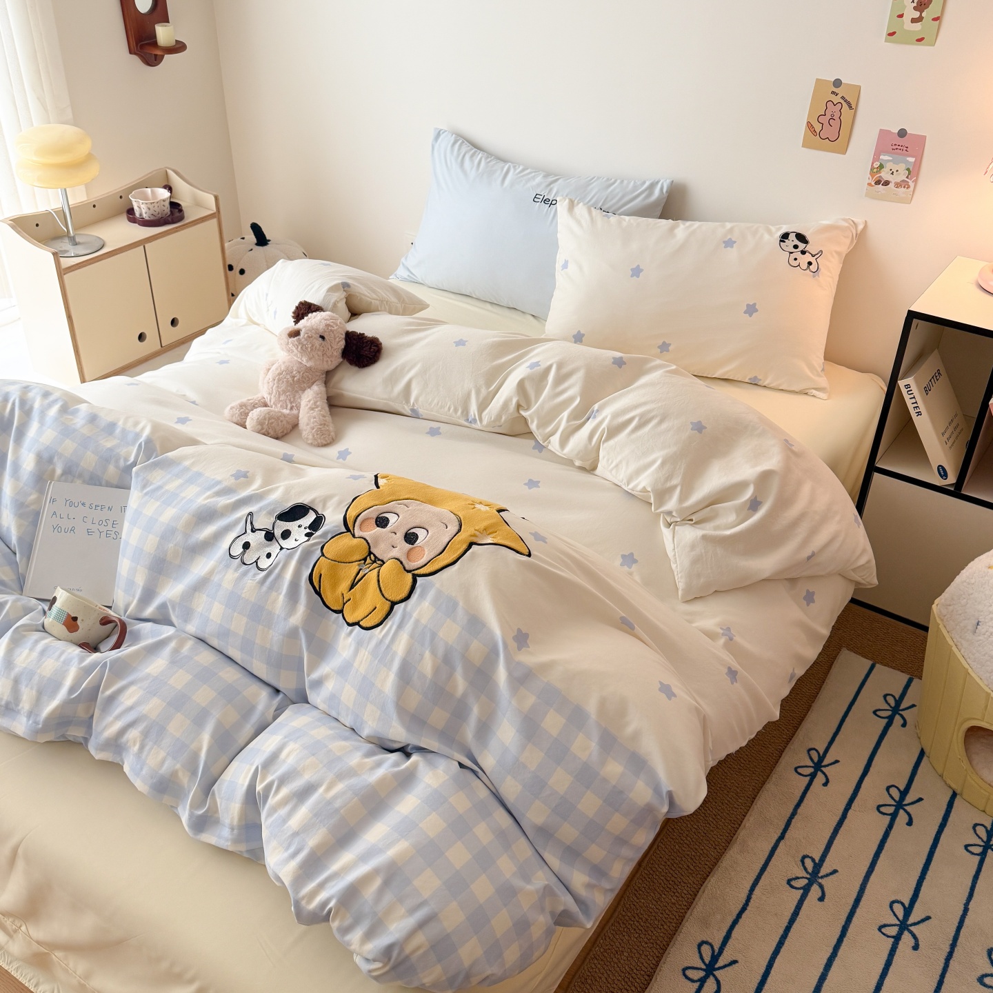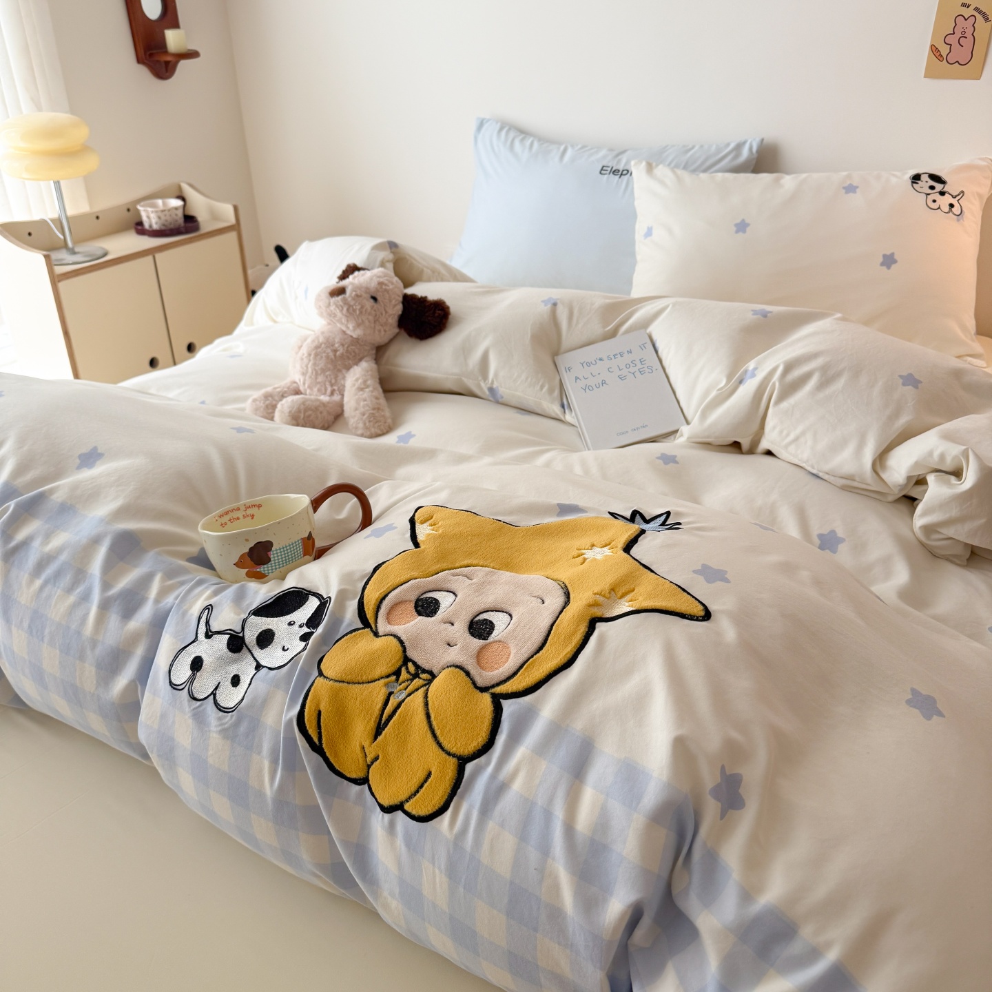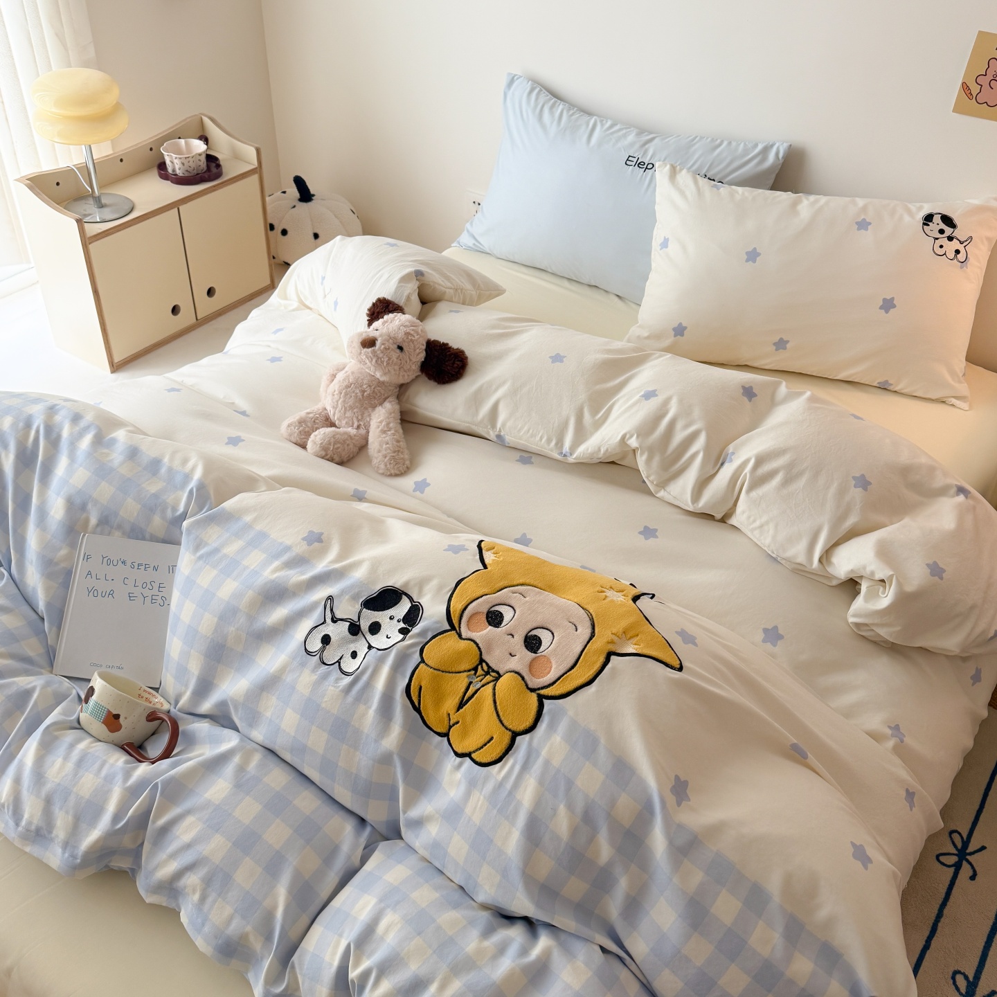 商品名称:吾欢心 2026春夏新款水洗棉床盖款四件套夏被四件套 星星宝贝