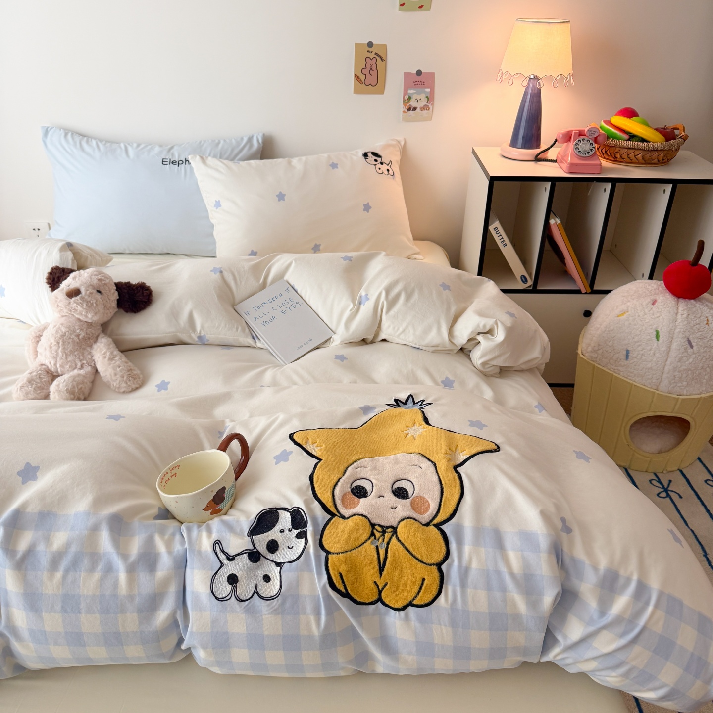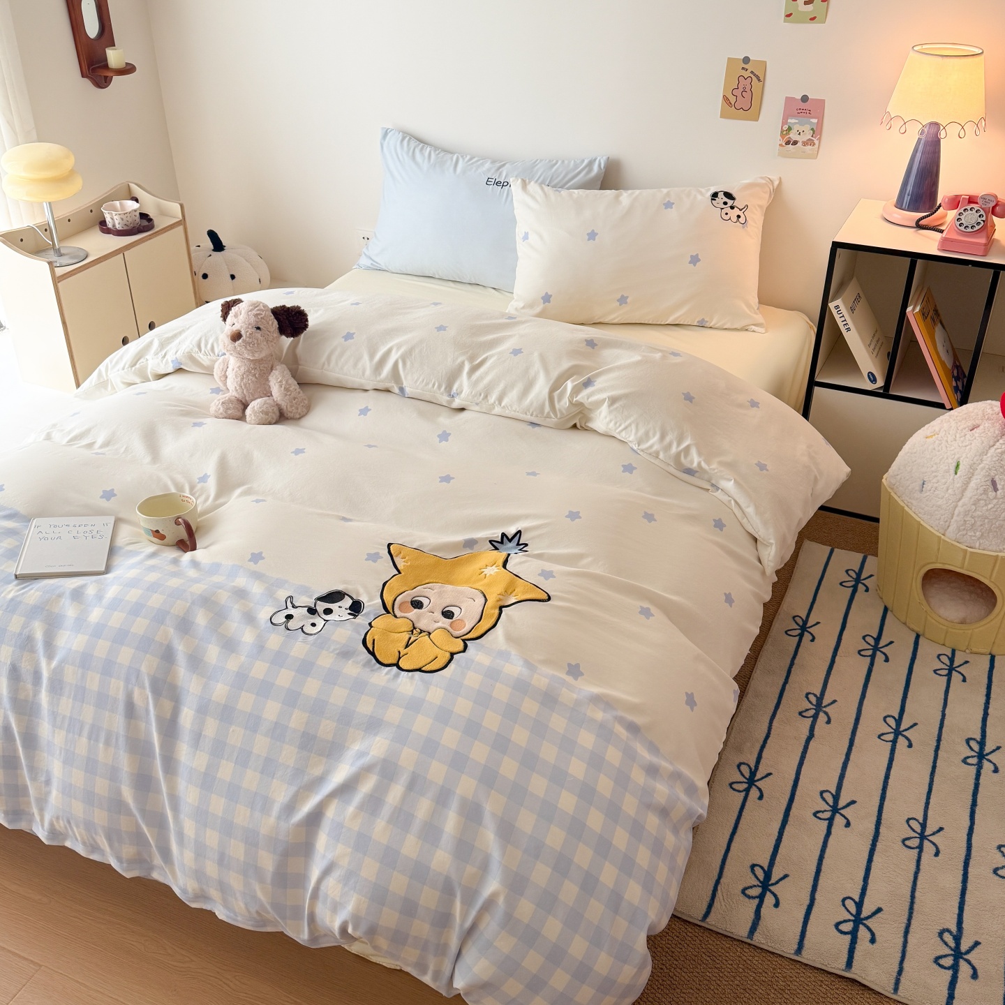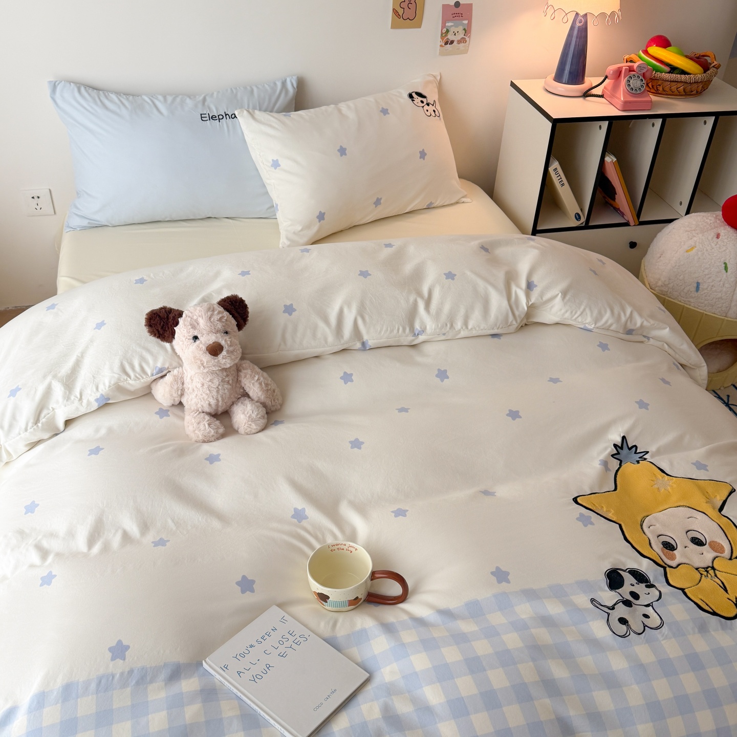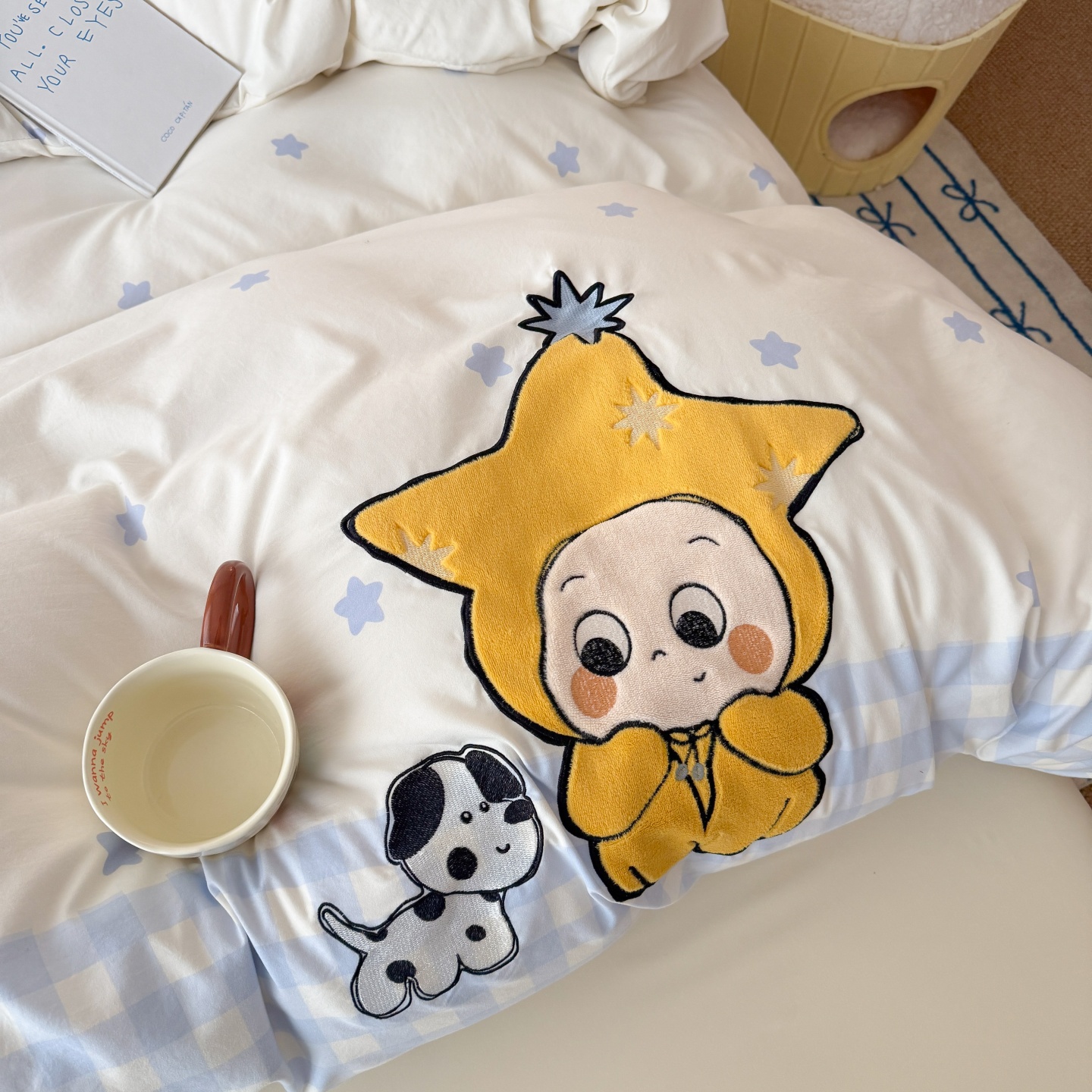 商品名称:吾欢心 2026春夏新款水洗棉床盖款四件套夏被四件套 星星宝贝
