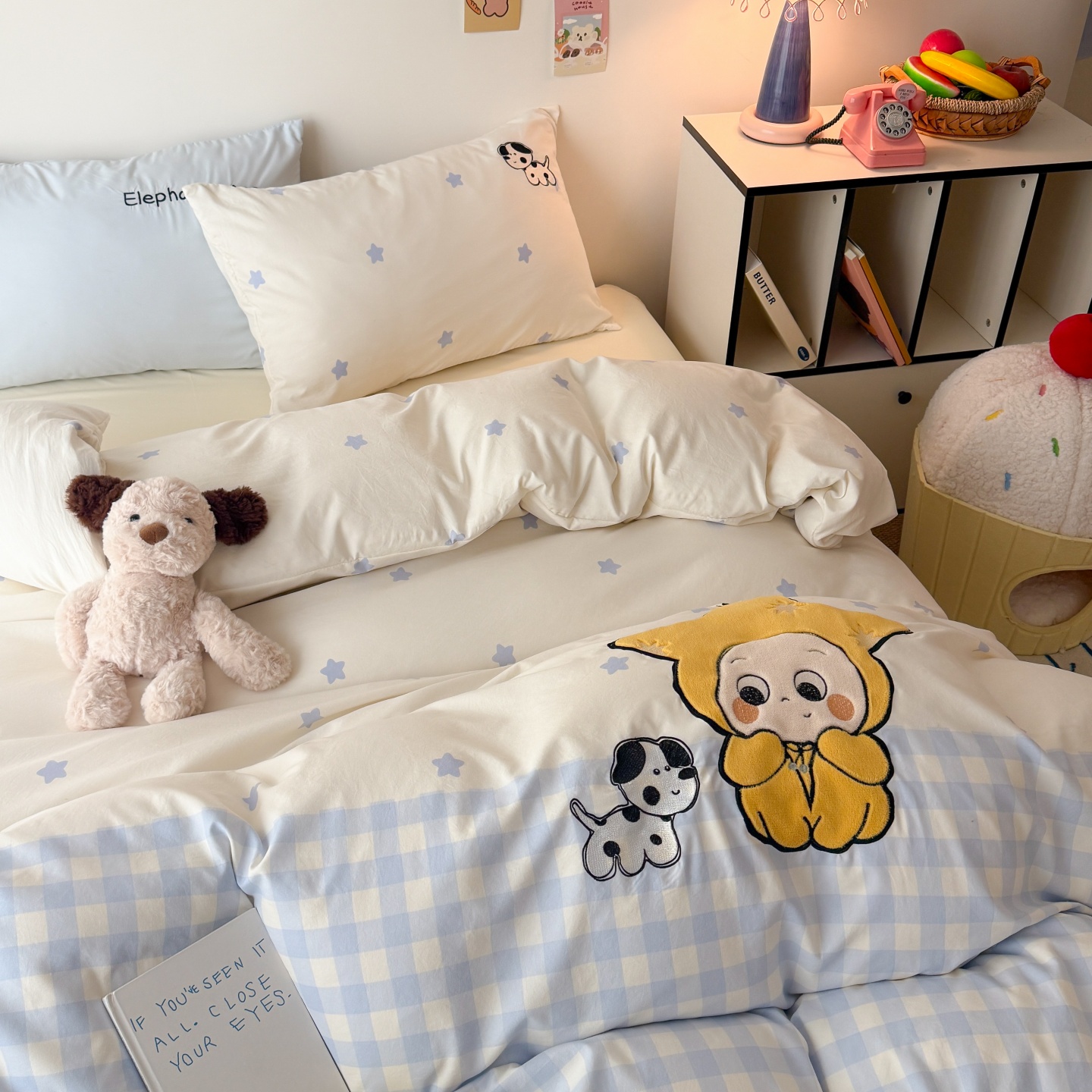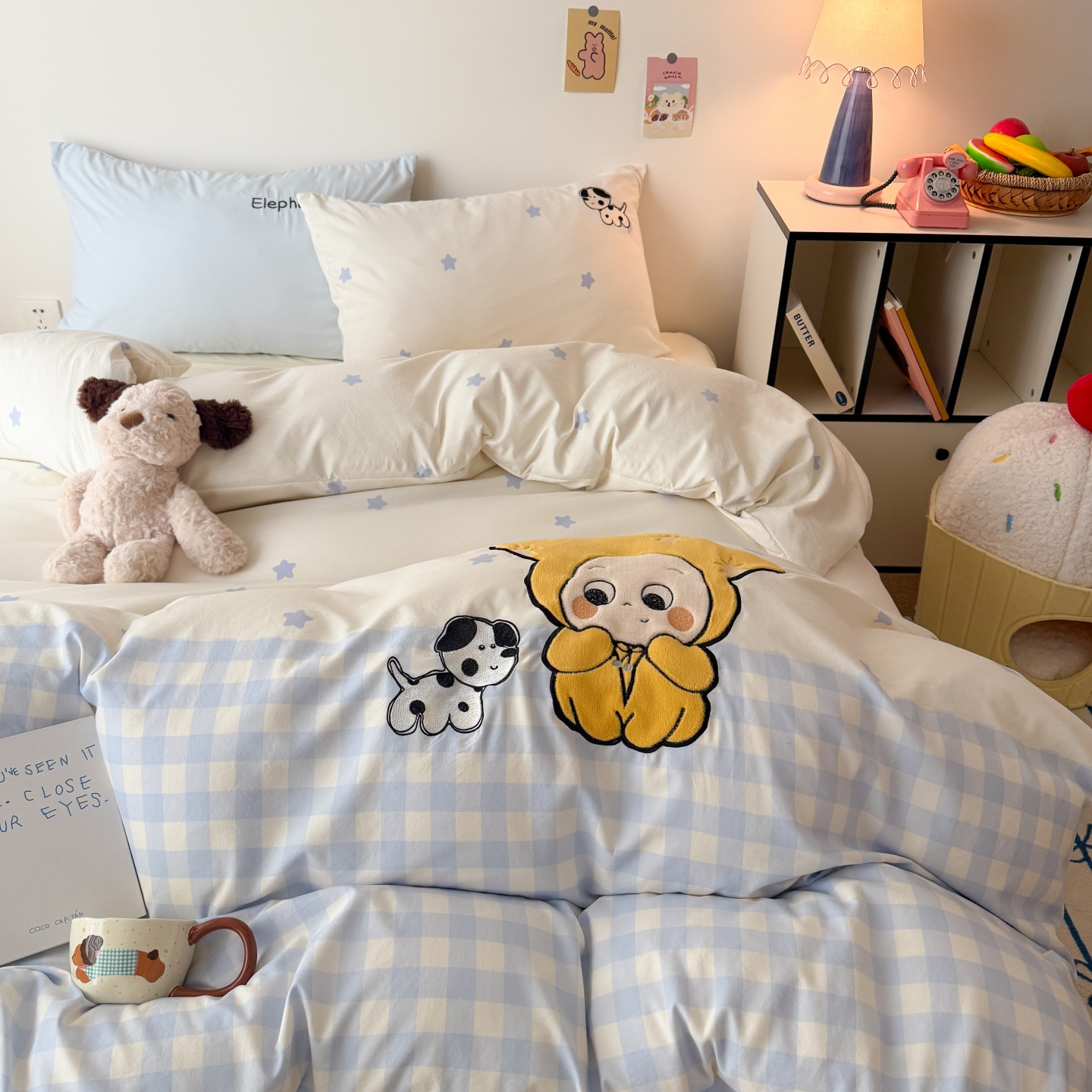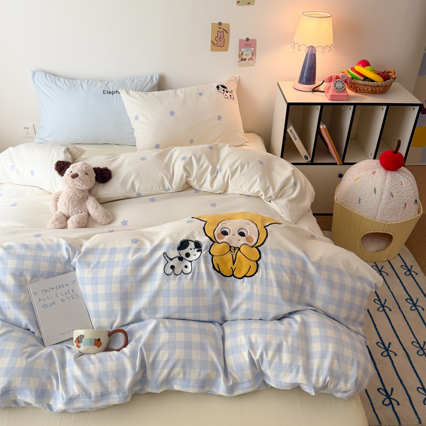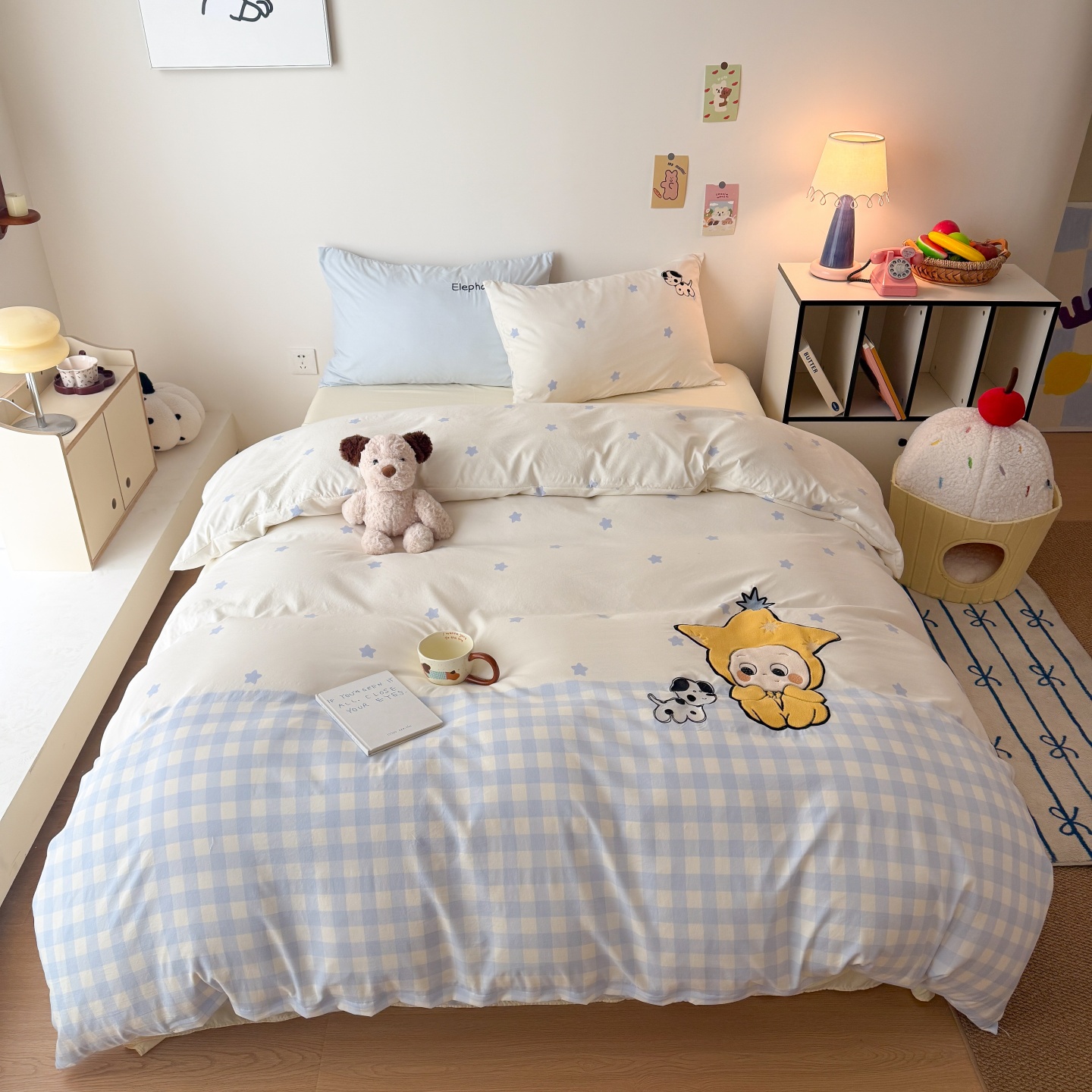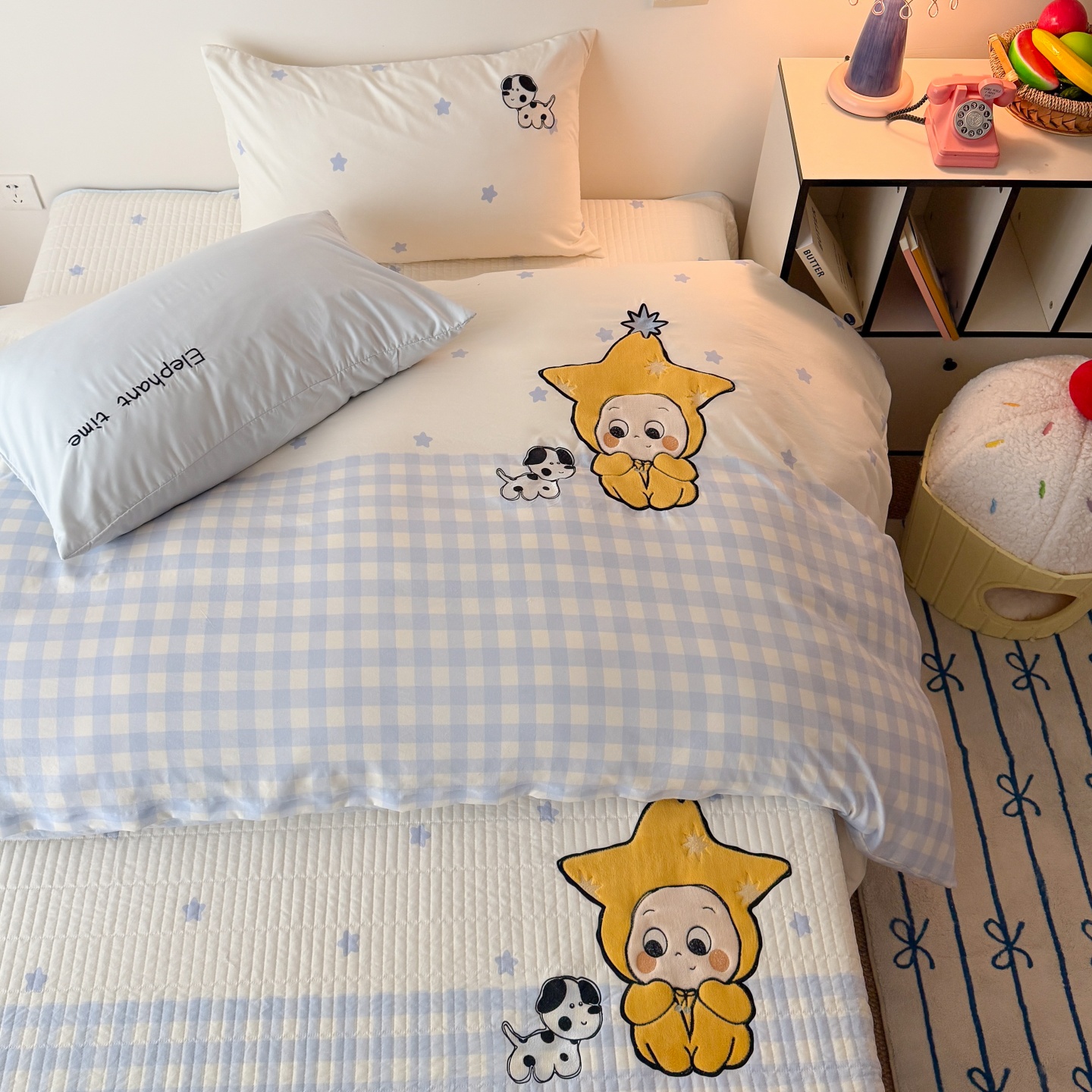 商品名称:吾欢心 2026春夏新款水洗棉床盖款四件套夏被四件套 星星宝贝
