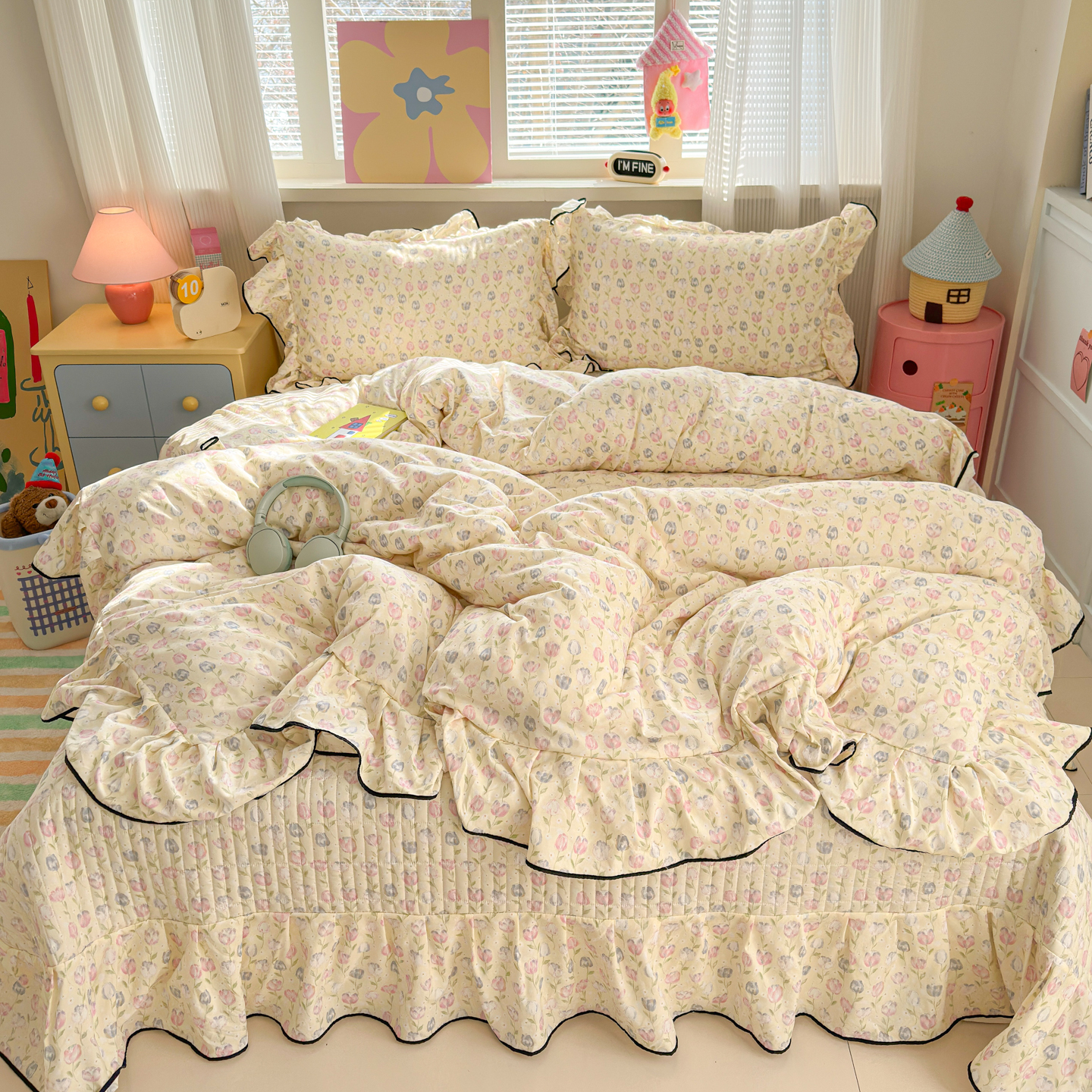 (总)德比尔斯 2026新款小清新110g高品质直播热卖款A类木耳花边泡芙棉四件套,爱心草莓,安妮小兔,鸿运小马,蝴蝶,浆果,可爱熊猫,马上有钱,奶酪星宝,轻蕊,手绘草莓,条纹狗,小马派对,樱桃小猫,云朵