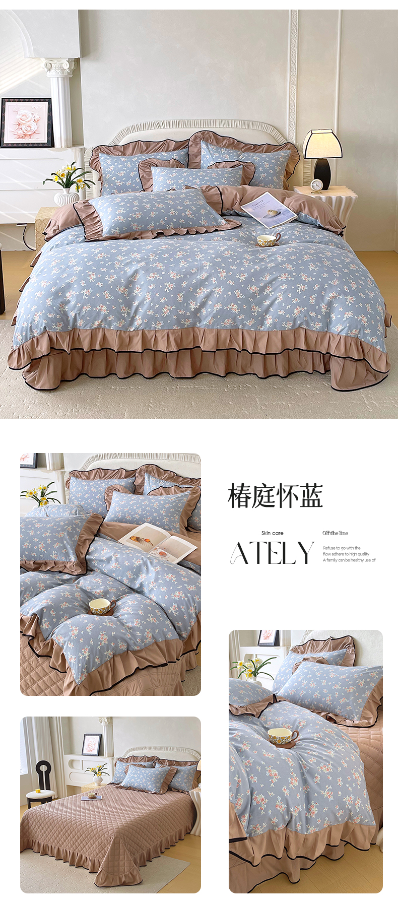 (总)麦田家纺 2026新款花边床盖四件套,朝花夕拾,椿庭怀蓝,丹枫白露,花漾甜心,秘密花园