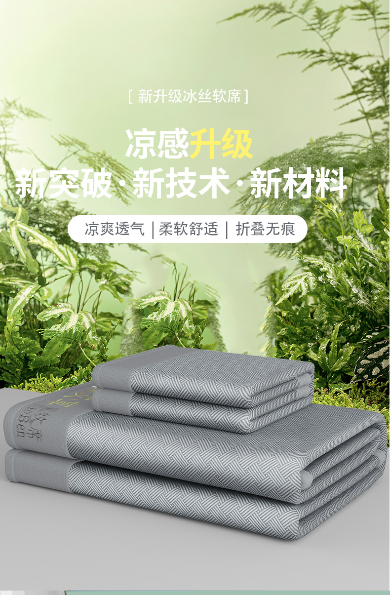 (总)福来临家纺 2026艾草冰藤席 ,步步高,水中花