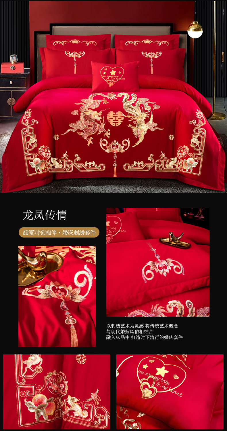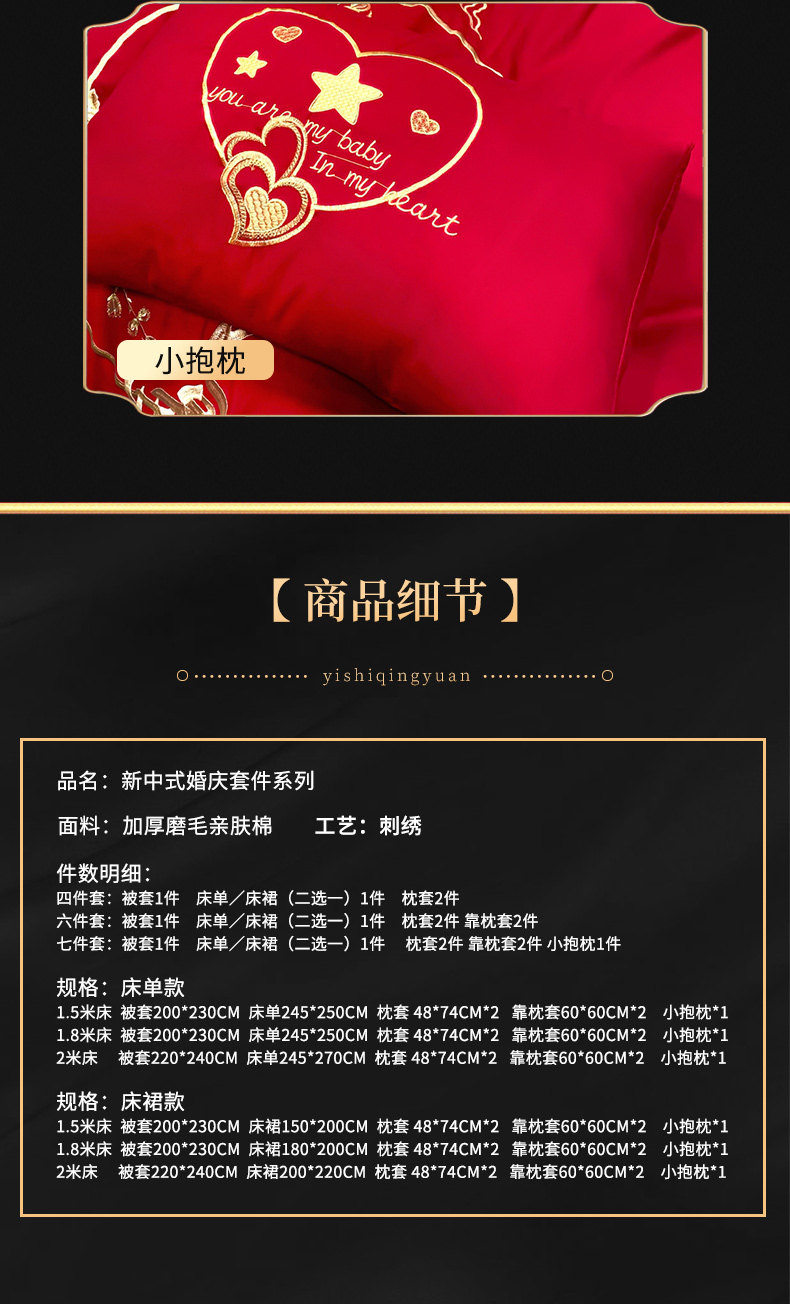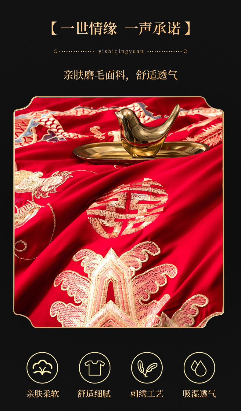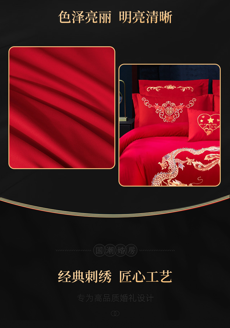 当前位置: 91家纺网 > 商品网购 > 床品套件 > 四件套 > 婚庆四件套 > 慕她家纺 2026年磨毛亲肤棉婚庆四件套大红色刺绣结床上用品 盛世龙凤