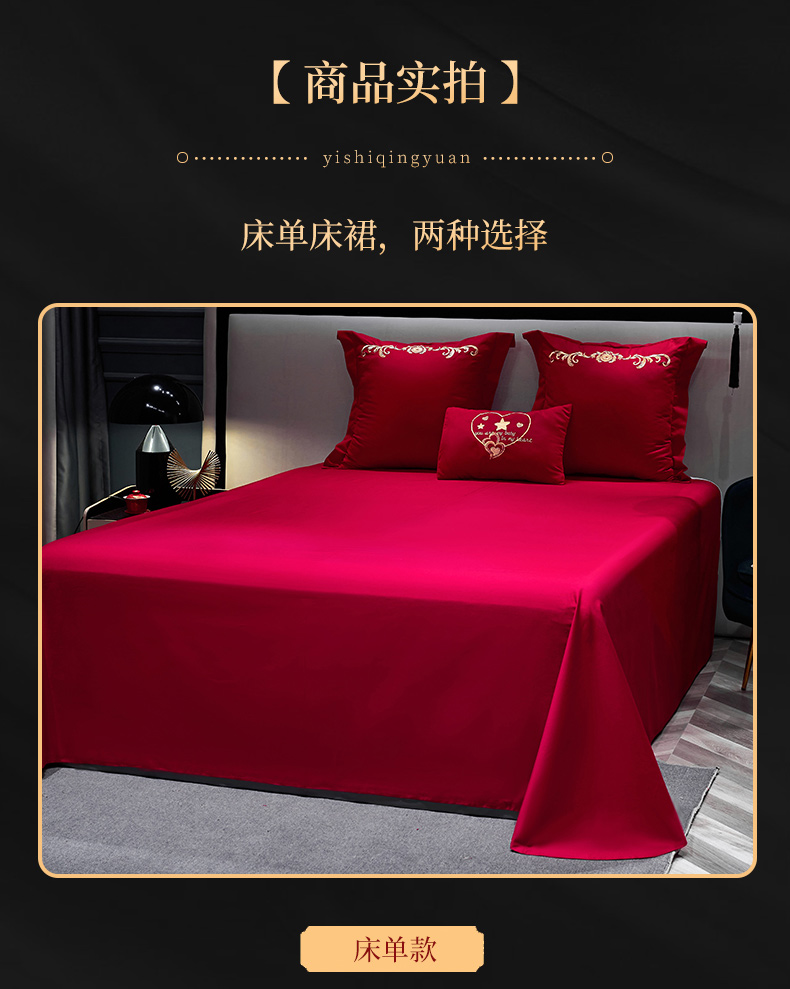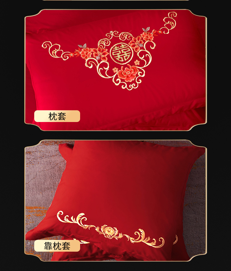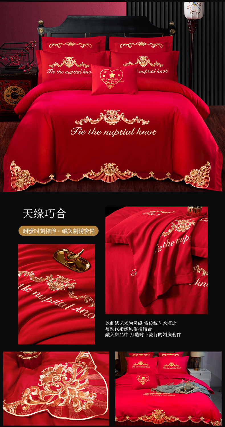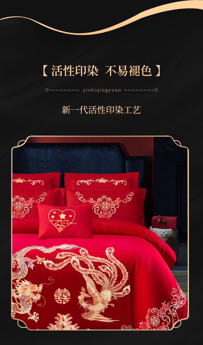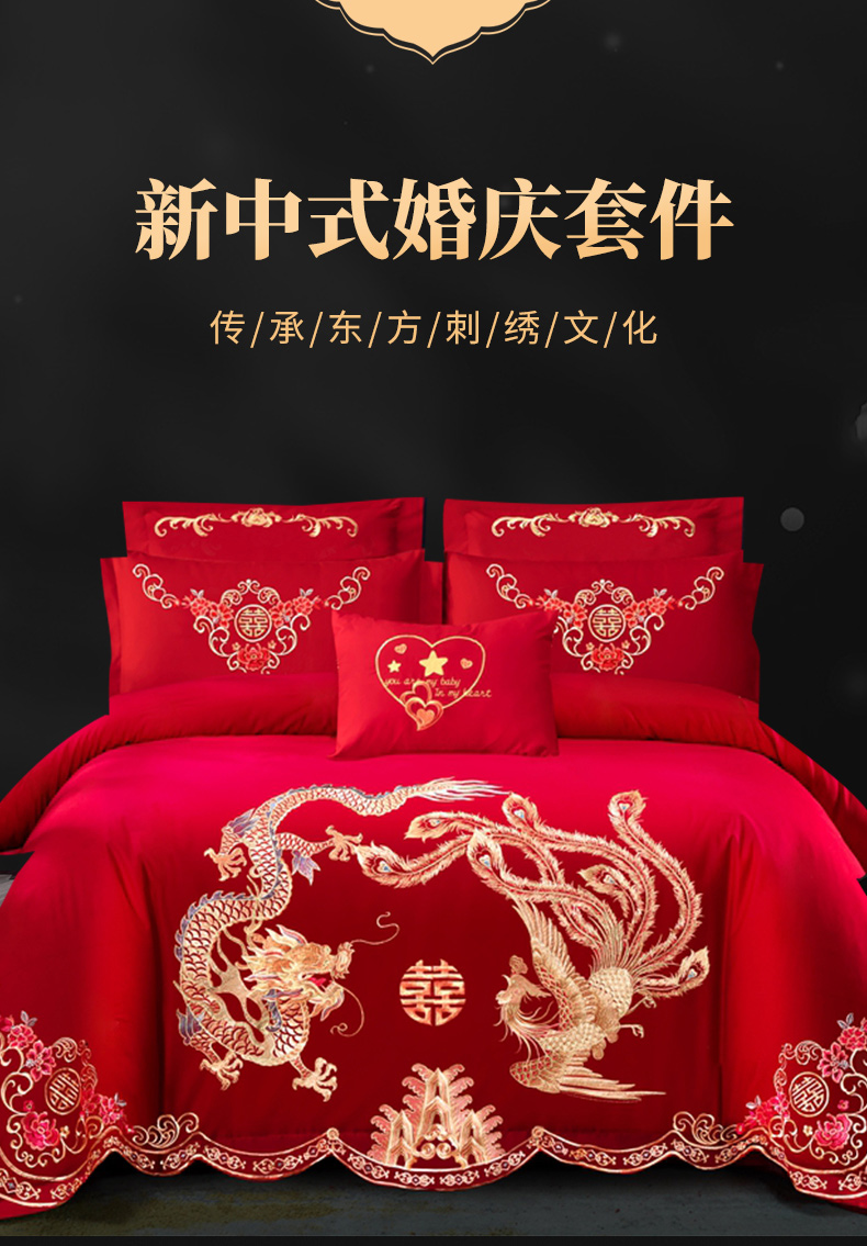 当前位置: 91家纺网 > 商品网购 > 床品套件 > 四件套 > 婚庆四件套 > 慕她家纺 2026年磨毛亲肤棉婚庆四件套大红色刺绣结床上用品 盛世龙凤