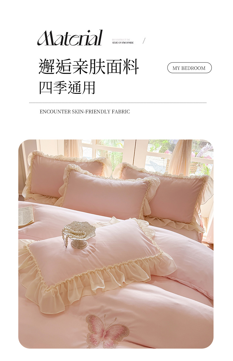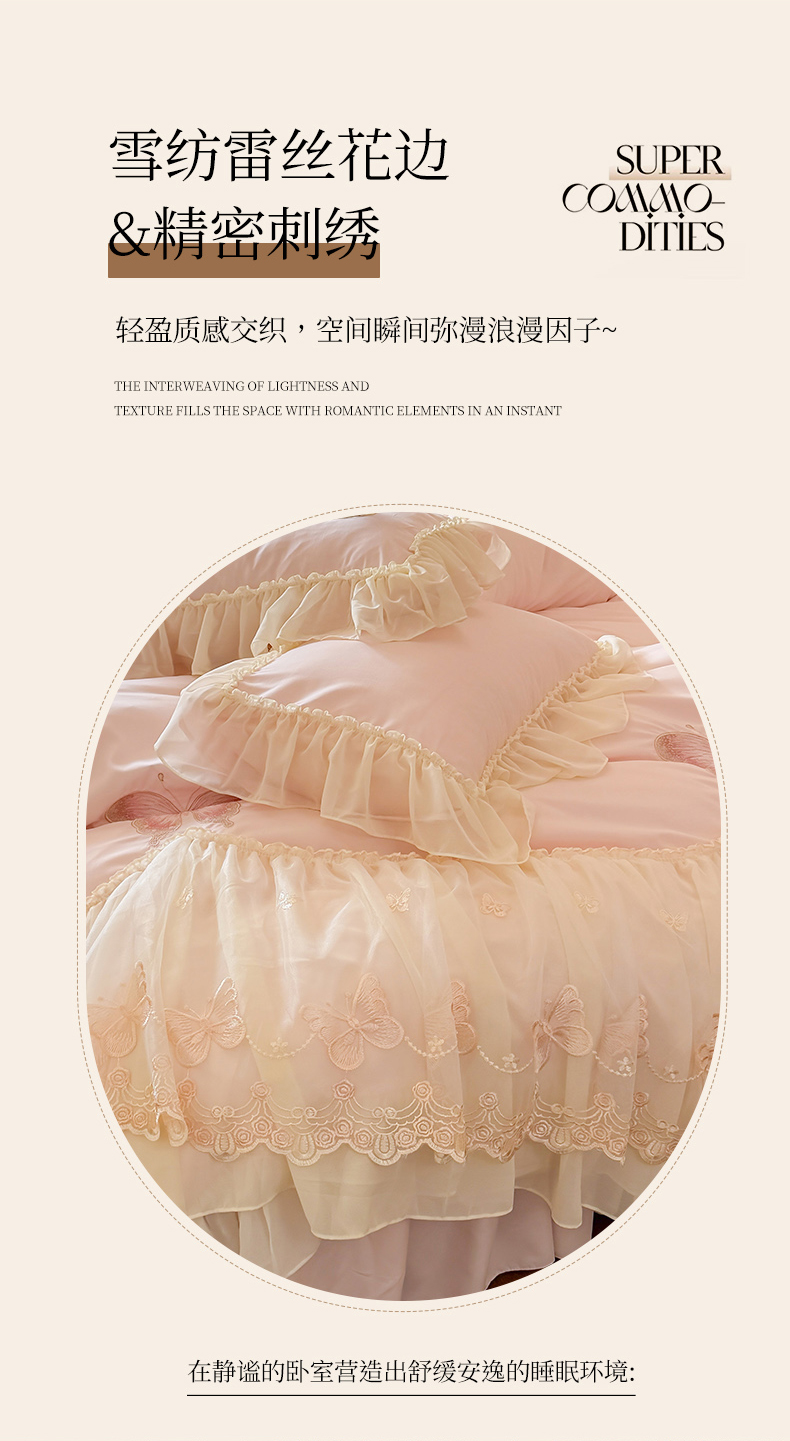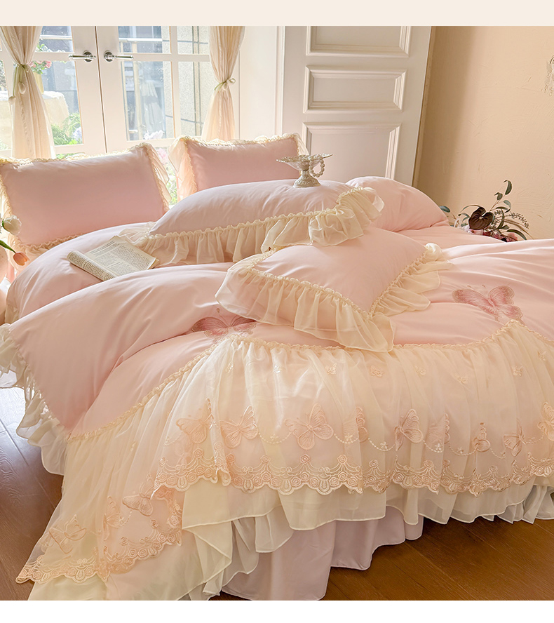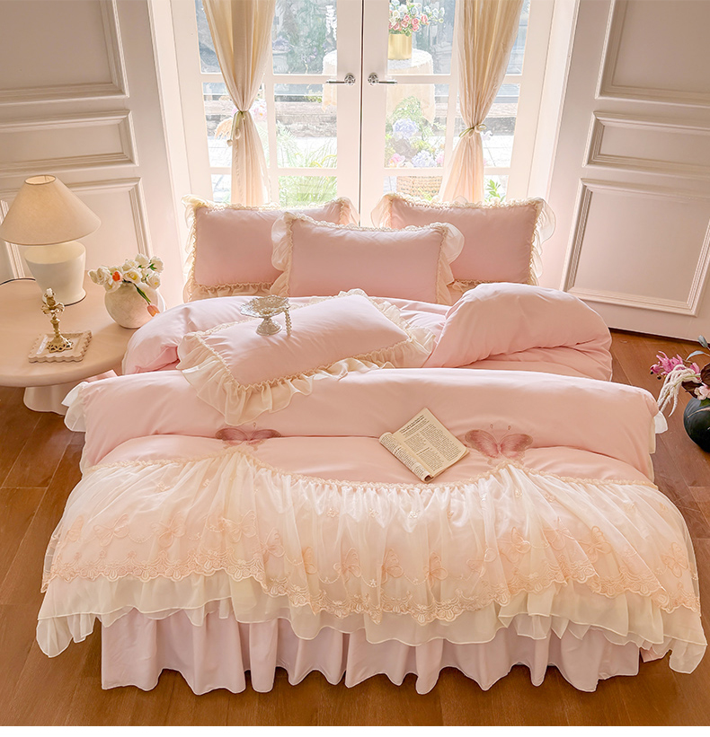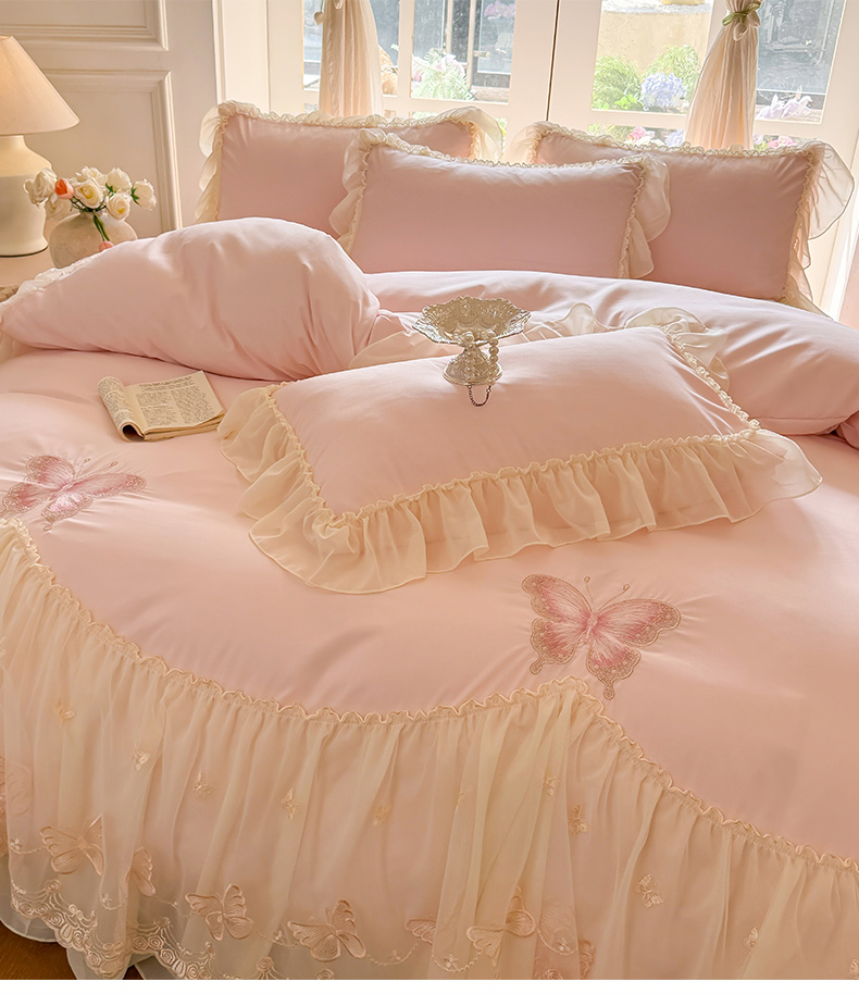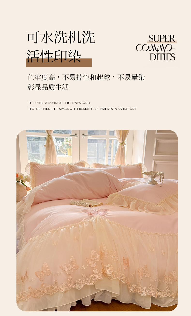 当前位置: 91家纺网 > 商品网购 > 床品套件 > 四件套 > 水洗棉四件套 > 富盛家纺 2026新款水洗亲肤棉雪纺蕾丝刺绣公主风韩版四件套-迷迭香 迷迭香—粉
