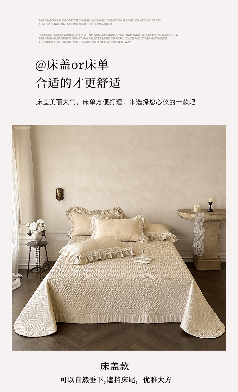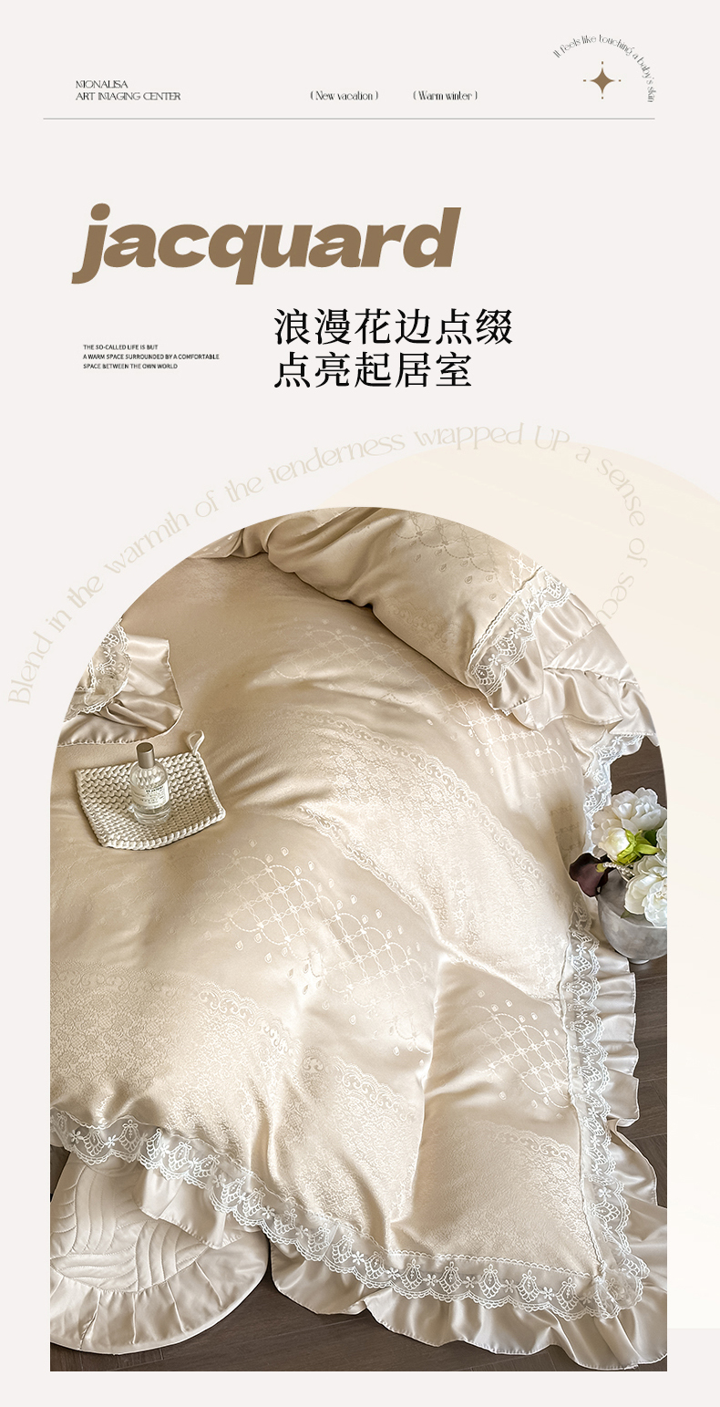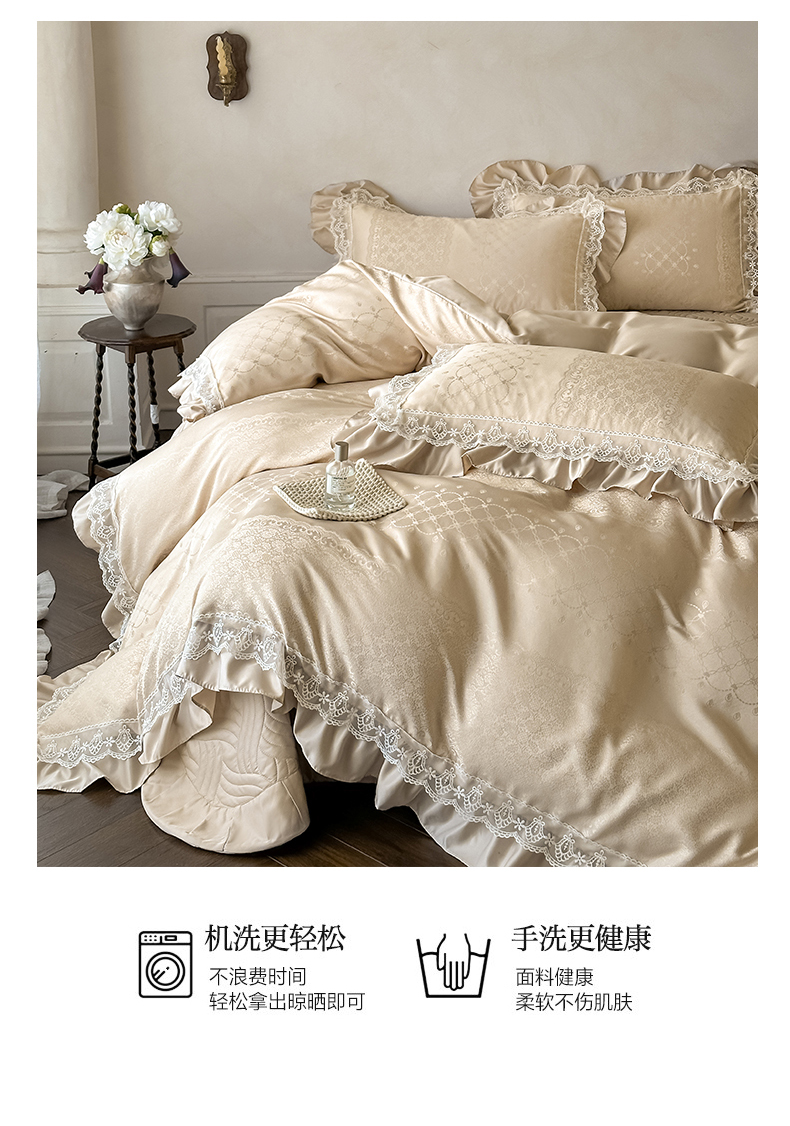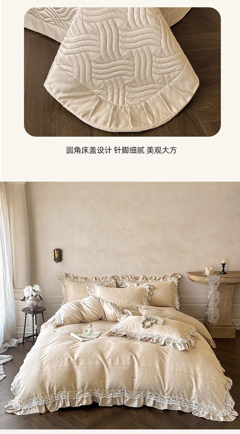 当前位置: 91家纺网 > 商品网购 > 床品套件 > 四件套 > 其它四件套 > 首尔家纺 2026新款花边夹棉床盖四件套厚织提花款系列-提供买家秀 浮生若梦-香槟