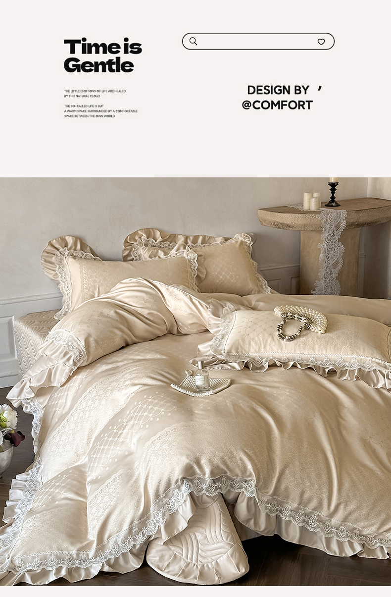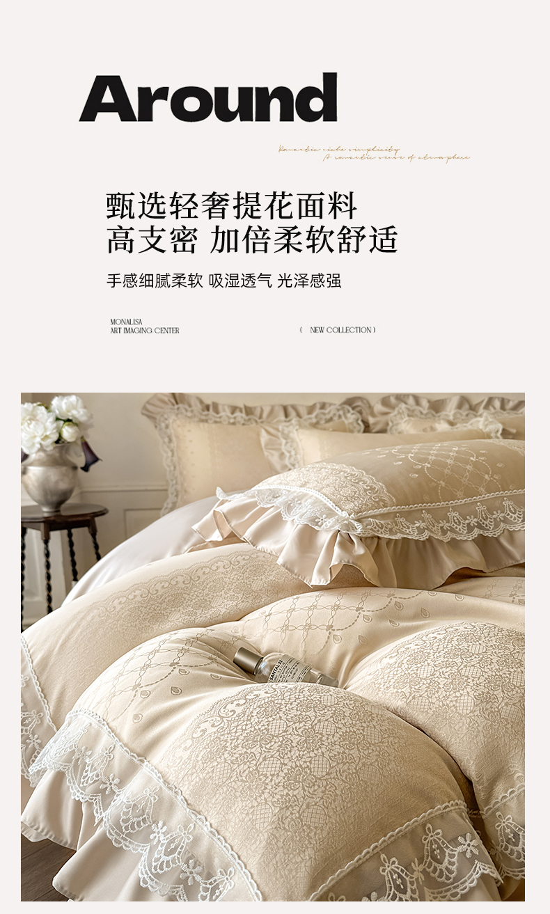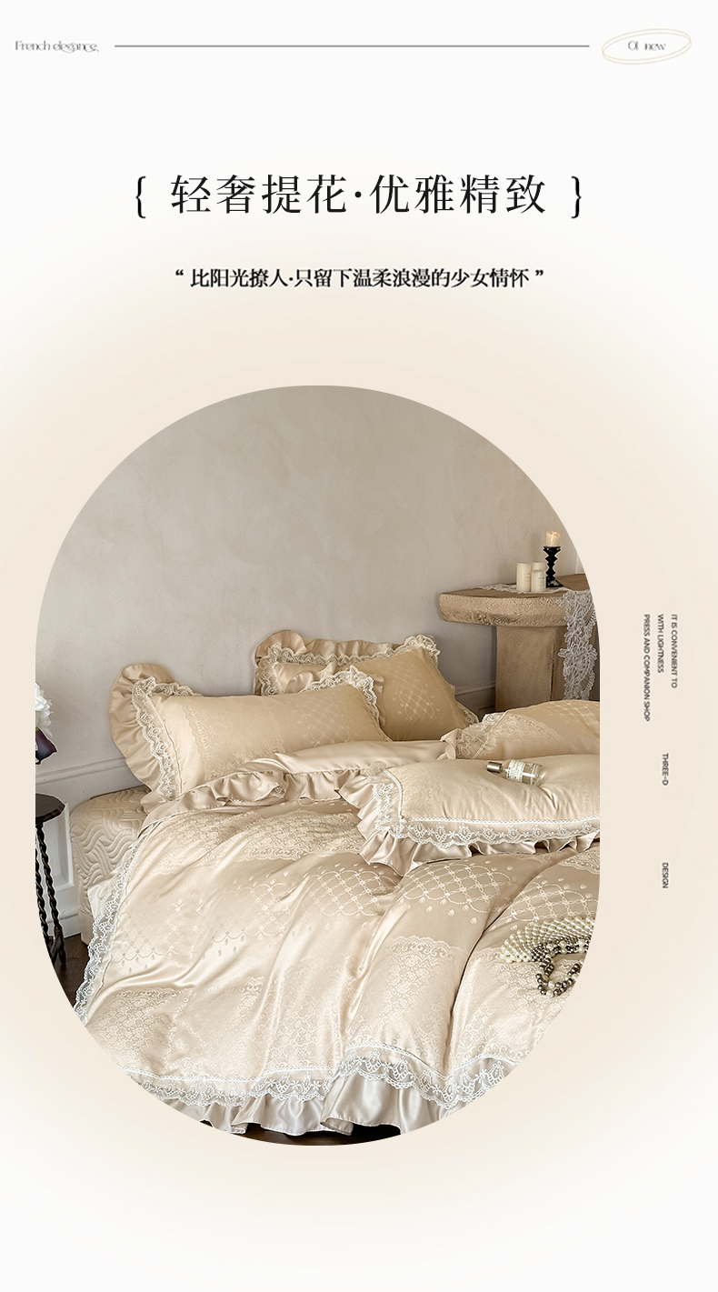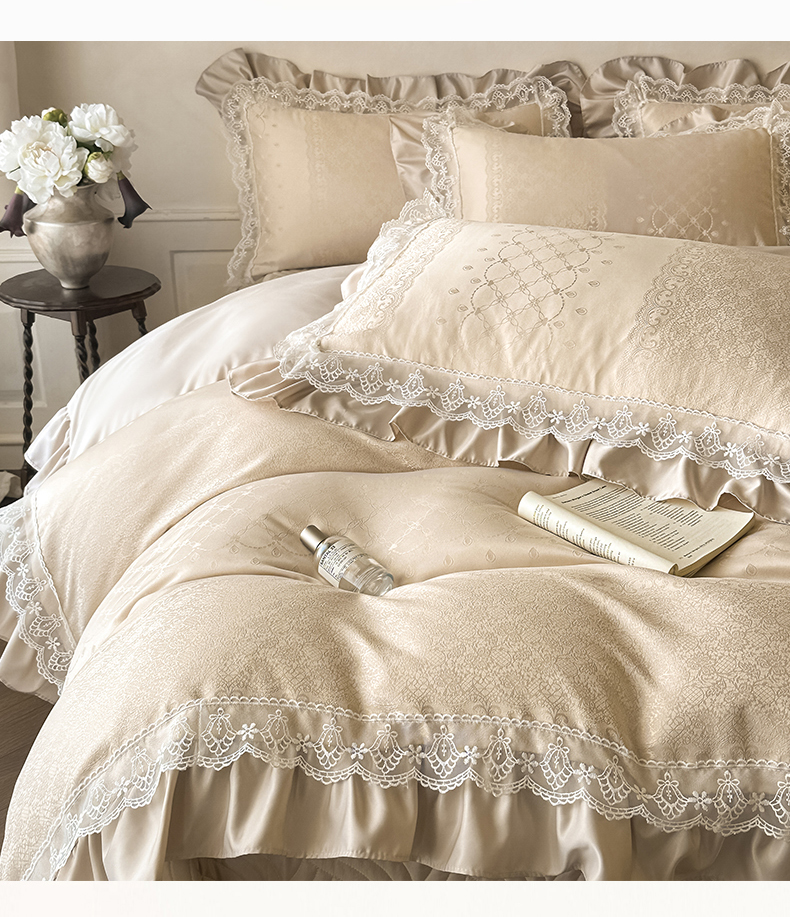 当前位置: 91家纺网 > 商品网购 > 床品套件 > 四件套 > 其它四件套 > 首尔家纺 2026新款花边夹棉床盖四件套厚织提花款系列-提供买家秀 浮生若梦-香槟