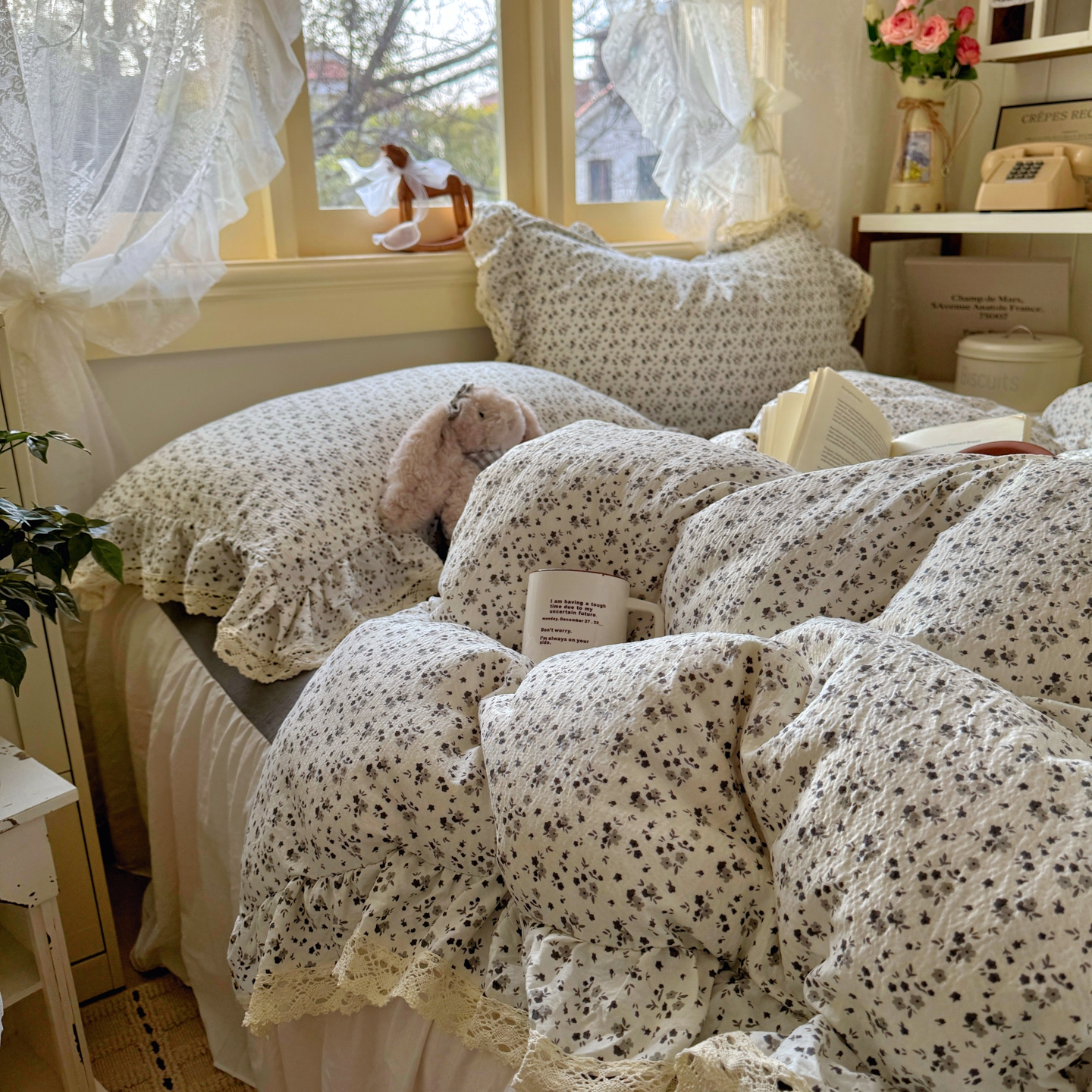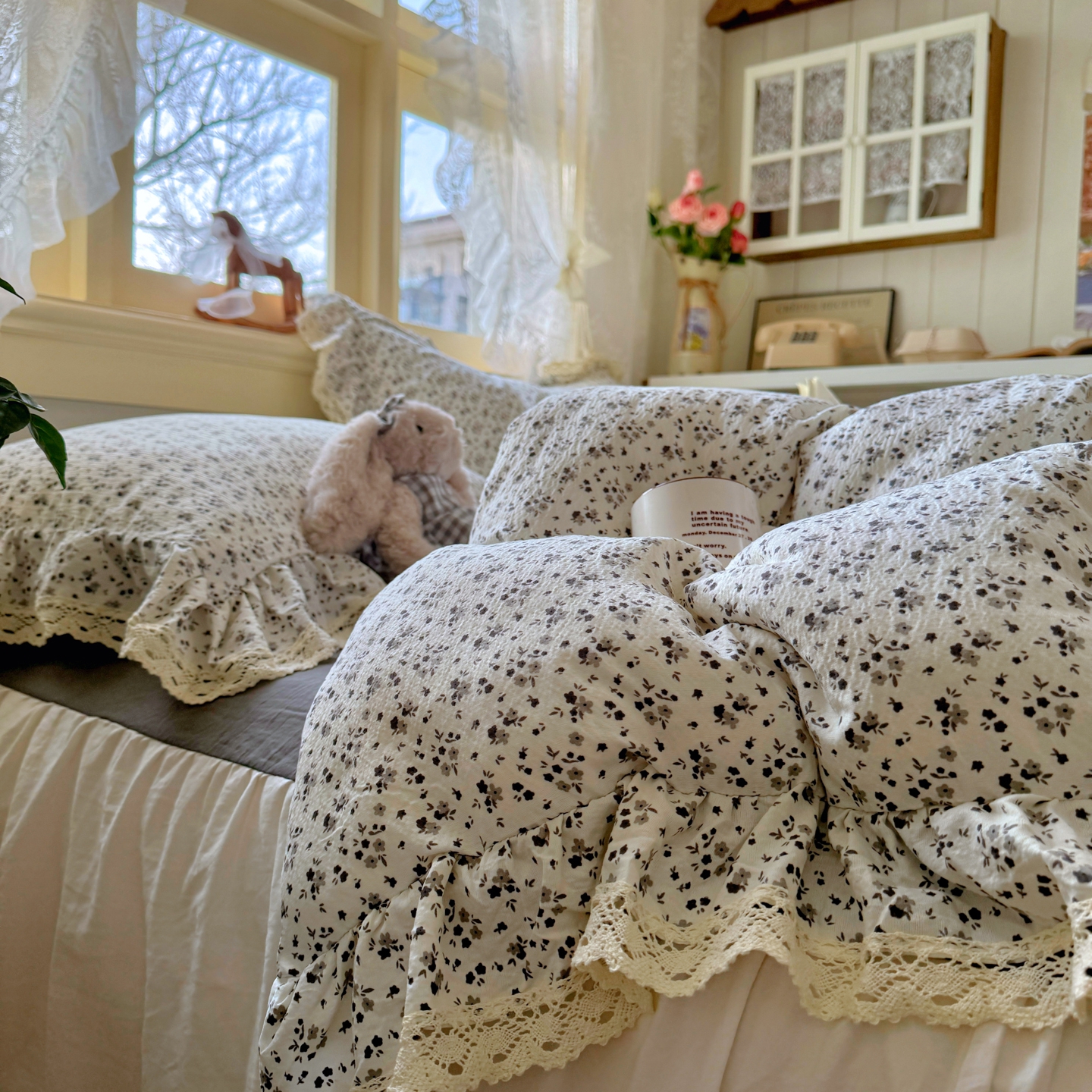 当前位置: 91家纺网 > 商品网购 > 床品套件 > 四件套 > 其它四件套 > 阿曼达 2026新款印花复古小碎花镂空蕾丝花边款四件套 复古小蕾丝-松月间.米