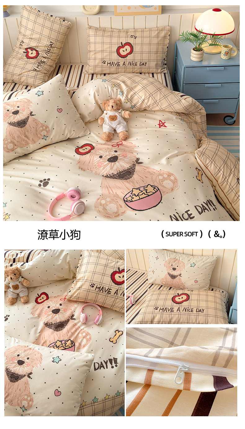 (总)寐居 2025新款大阪纯色毛巾绣牛奶绒四件套,格纹萌犬,红果果,滑板猫猫,帽子雪纳瑞,美拉德小熊,萌兔有约,年年有鱼,甜心小骑,星伴小象