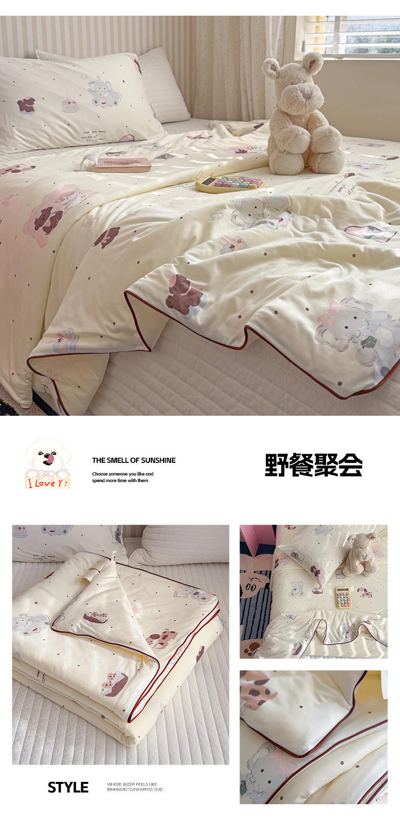 (总)暖生活 2026新款A类牛奶针织棉夏被被子被芯,小小狗,白夜蔷薇,缤纷小马,草莓小宠,花信驿,蓝豹纹KT,两只兔子,巧克力熊,小兔拼图,熊猫吐司,野餐聚会,宇宙恐龙,月光森林,组合图仅供参考