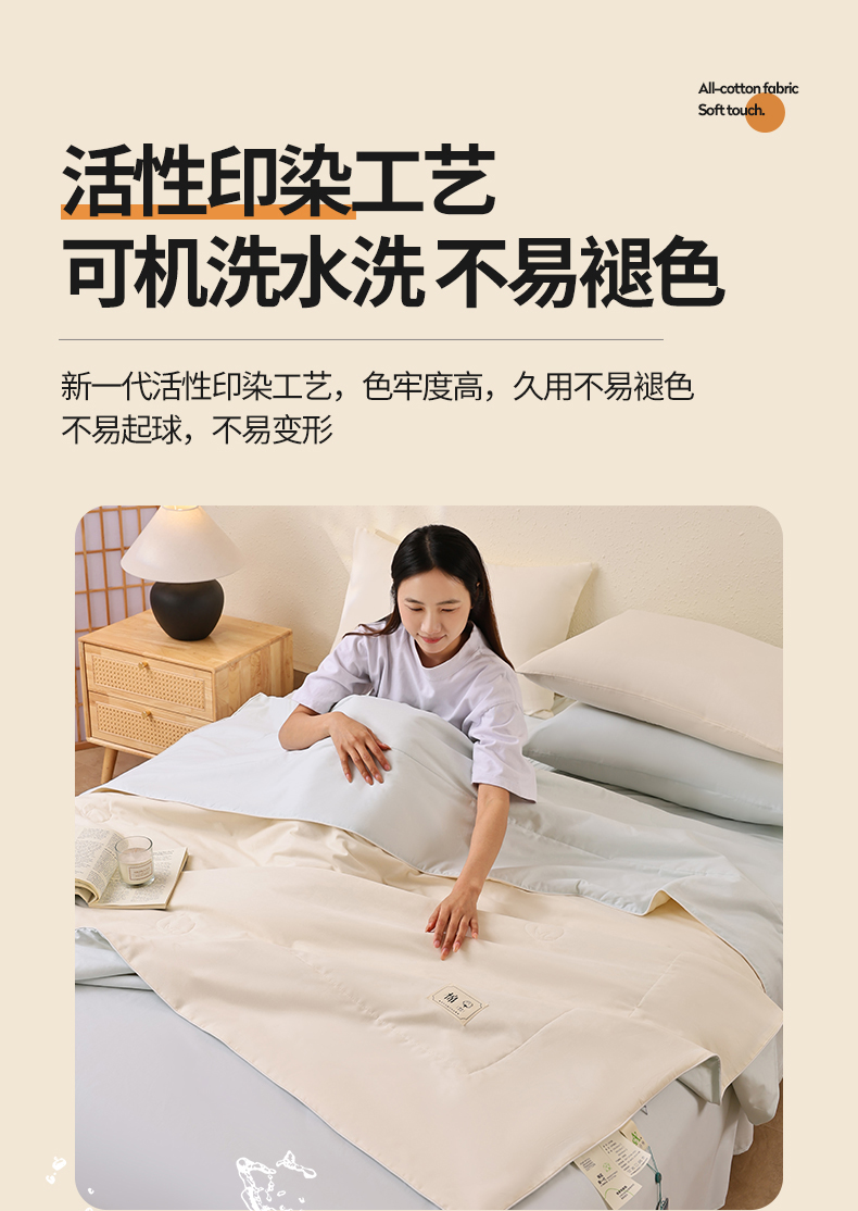 当前位置: 91家纺网 > 商品网购 > 被子 > 夏被 > 盛凡家纺 2026新款A类133*72里外全棉100%棉花夏被四件套夏凉被空调被子被芯 茶白+水绿