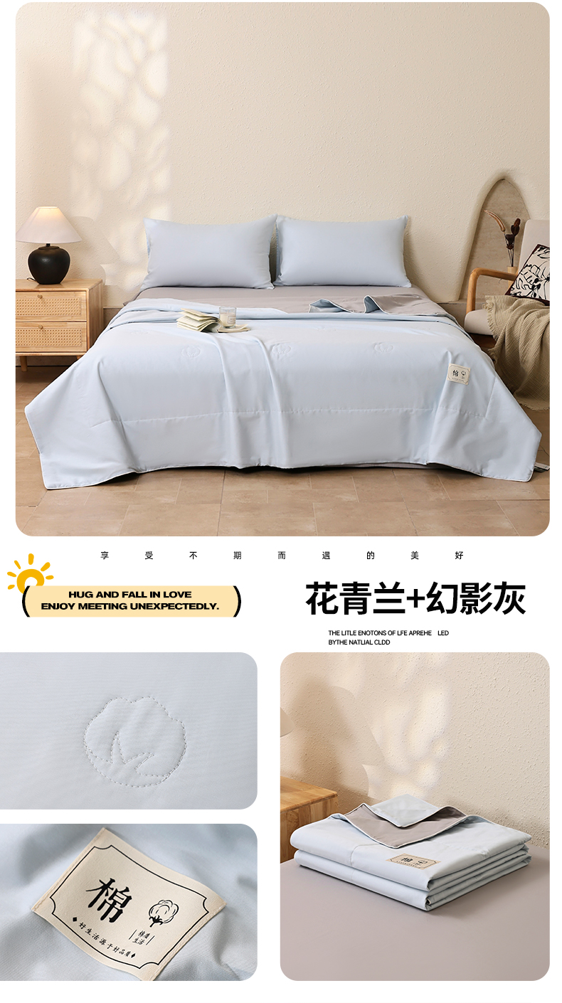 • 91家纺网 家纺一手货源 找家纺 (总)盛凡家纺 2026新款A类133*72里外全棉100%棉花夏被四件套夏凉被空调被子被芯,茶白+水绿,茶白+奶咖,花青兰+幻影灰,花青兰+奶咖,幻影灰+奶咖,玫瑰粉+奶咖,深睡蓝,水绿+松石绿