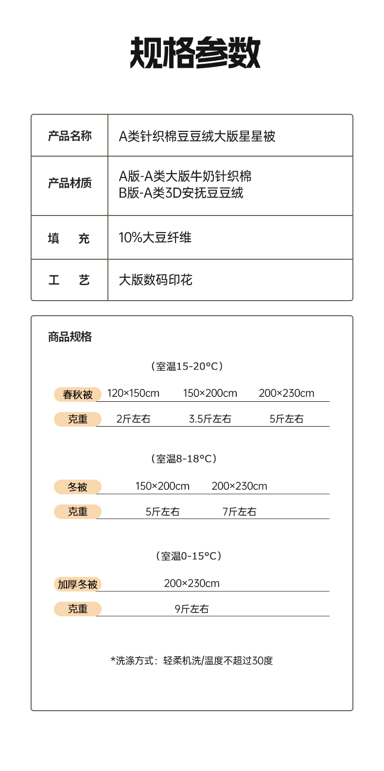 150x200cm(3.5斤左右)春秋被 | ¥65.00 |