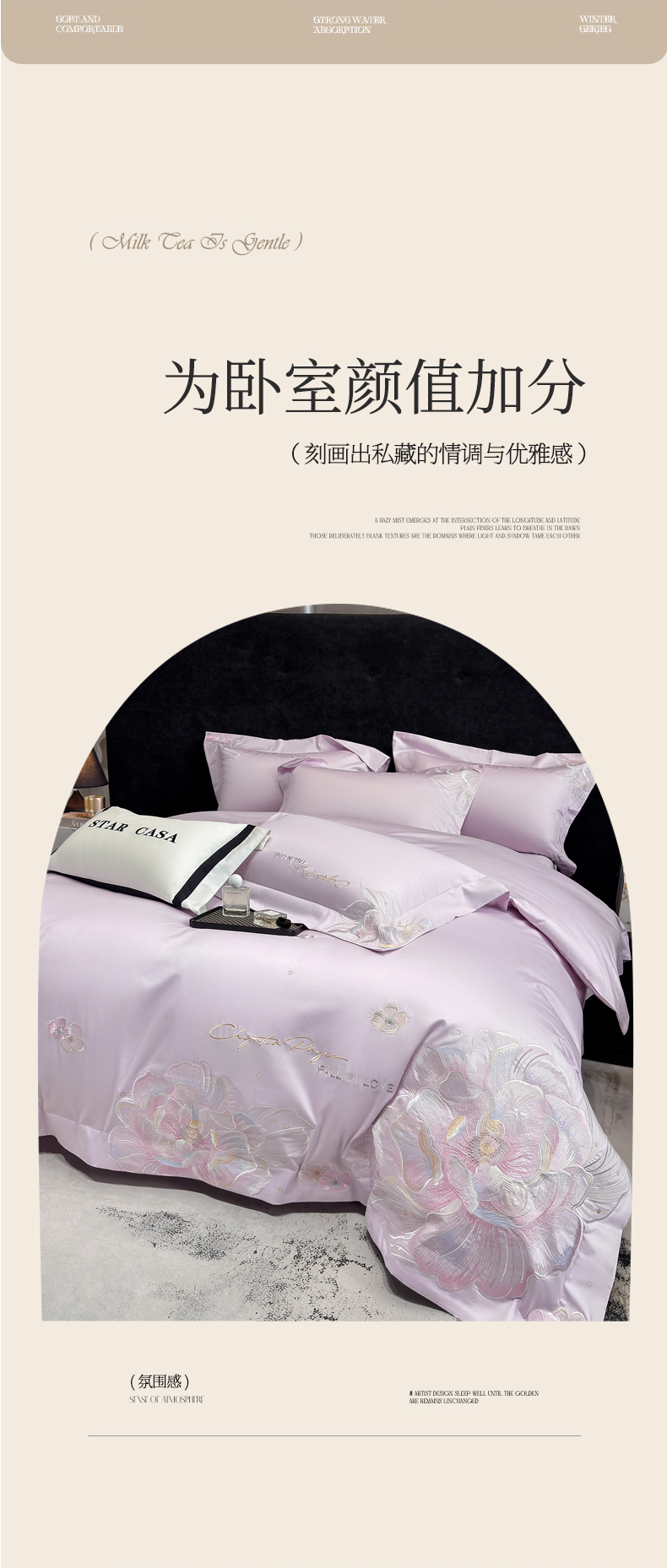 (总)星蕴家纺 2024新款A类新疆全棉刺绣四件套,高级灰,奶昔白,千禧粉,浅香槟