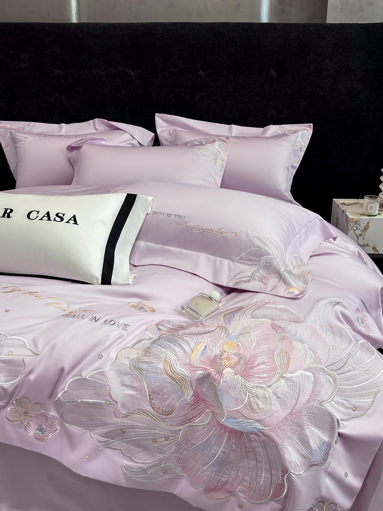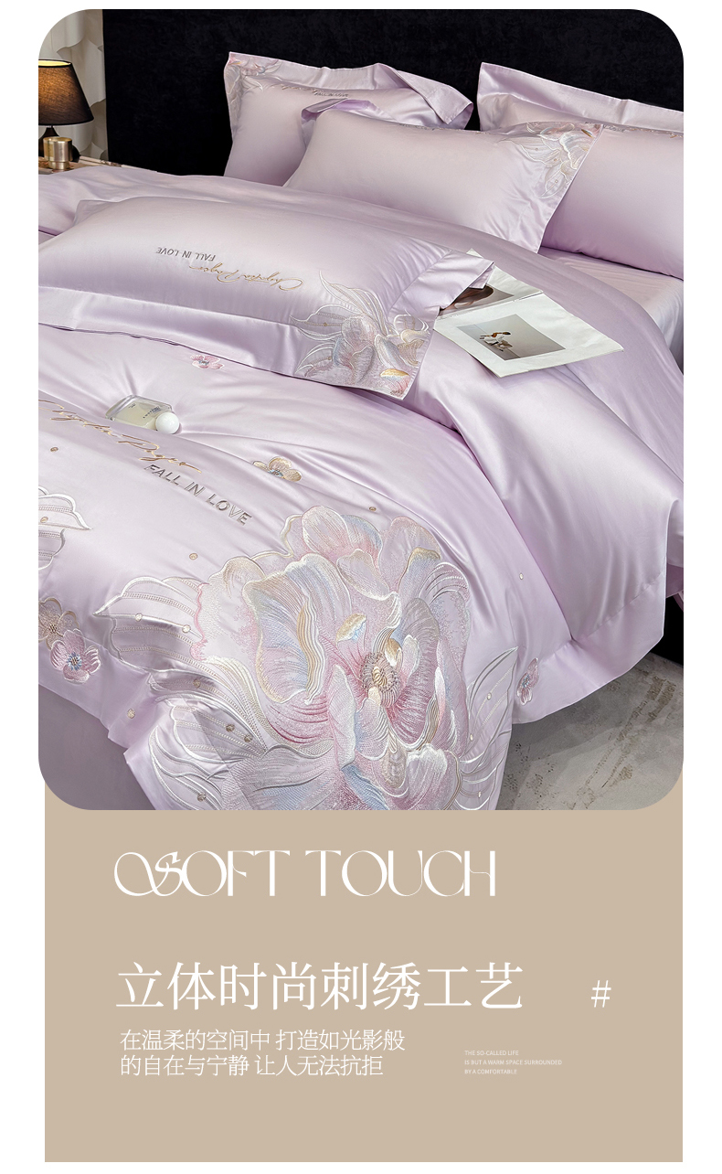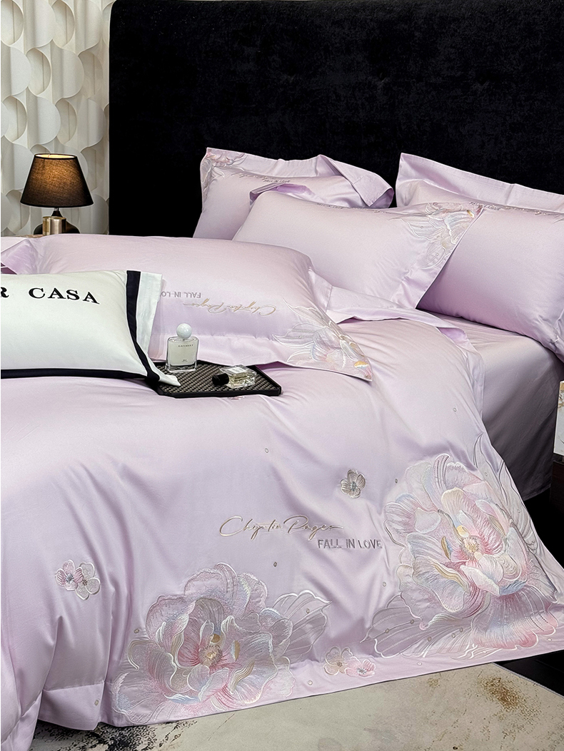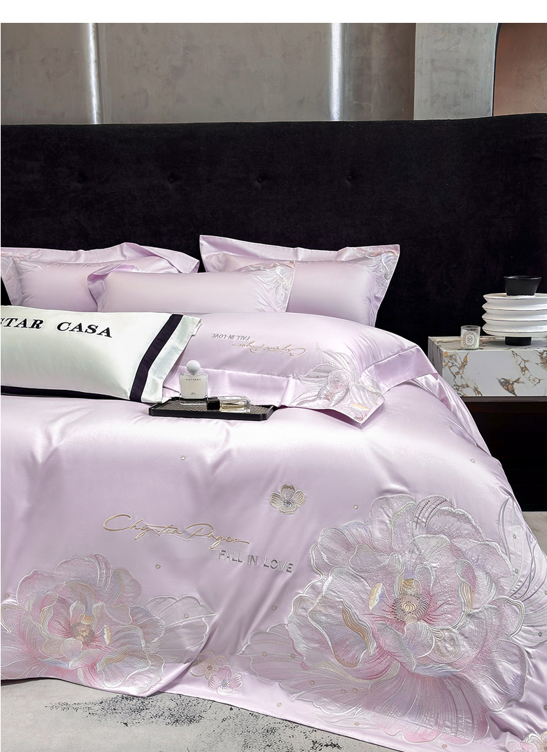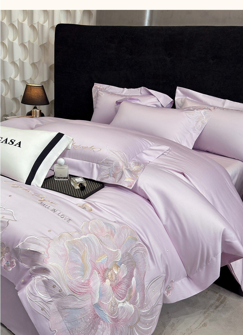 (总)星蕴家纺 2026新款50贡缎长绒棉纯棉绣花四件套-花瑾,花瑾-晴山蓝,花瑾-梦幻紫,花瑾-清新绿,花瑾-邂逅粉