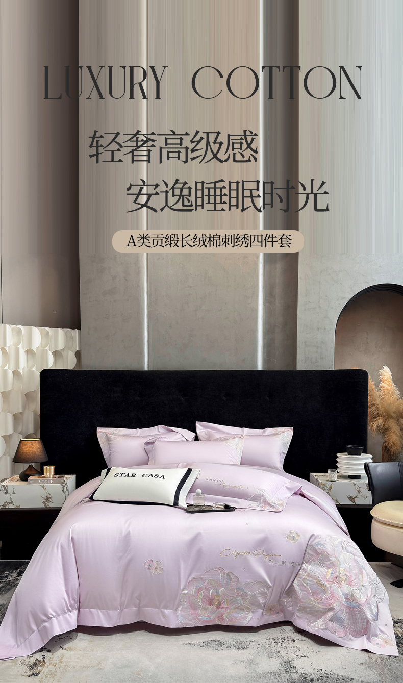 (总)星蕴家纺 2025新款澳棉正宗长绒棉四件套-诺兰,白拼玉,西柚粉,幸运兰,优雅紫