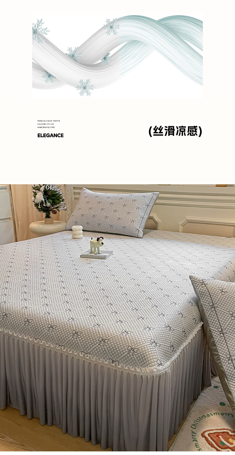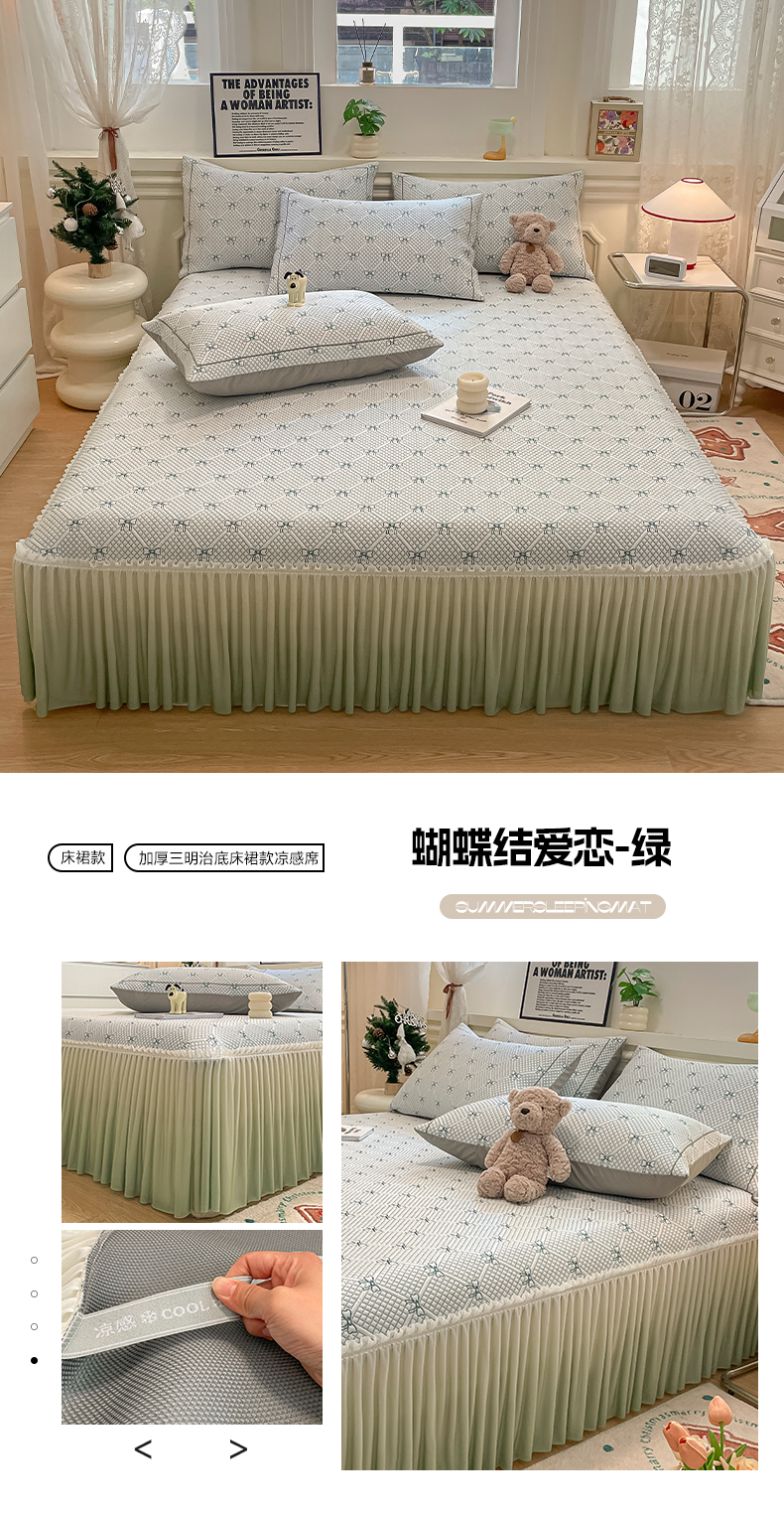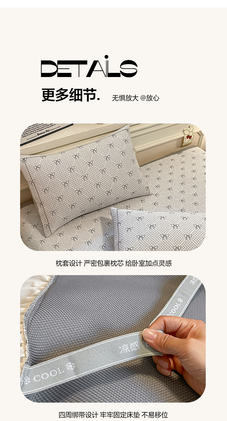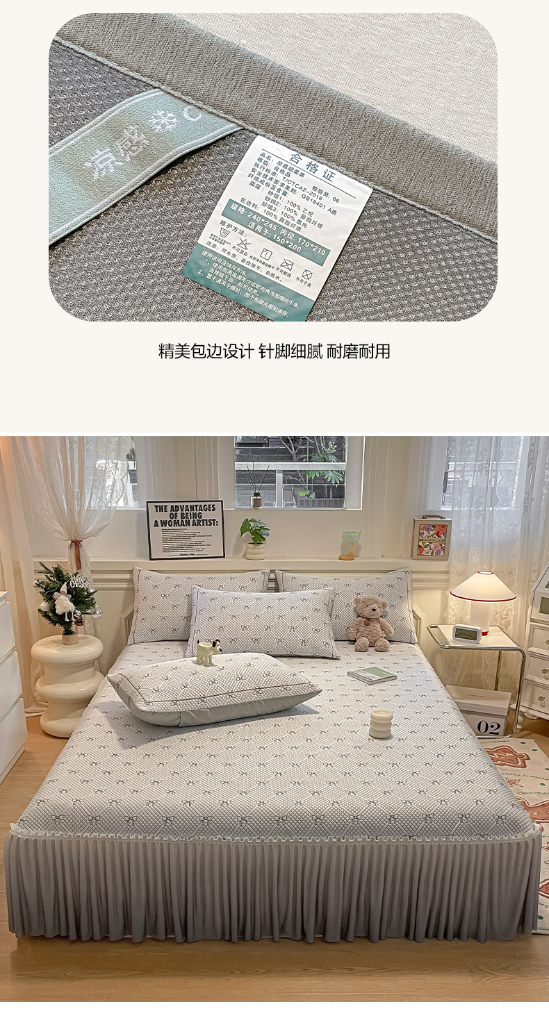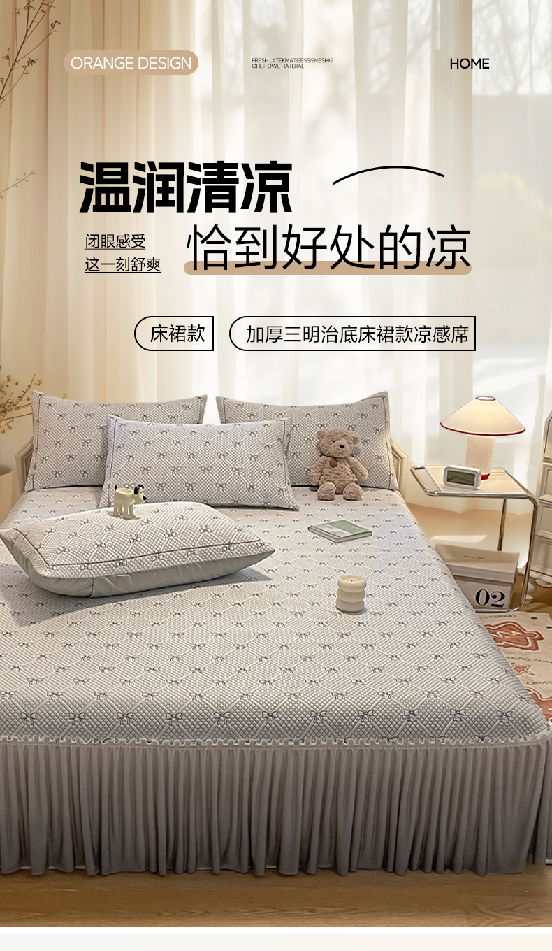 商品名称:雅居纺家纺 2026新款加厚三明治底床裙款凉感席凉席席子 蝴蝶结爱恋-灰