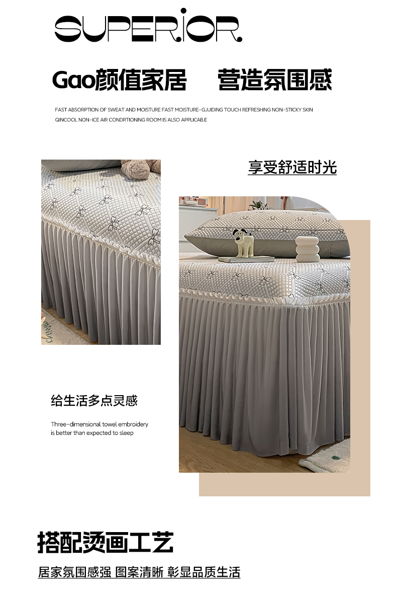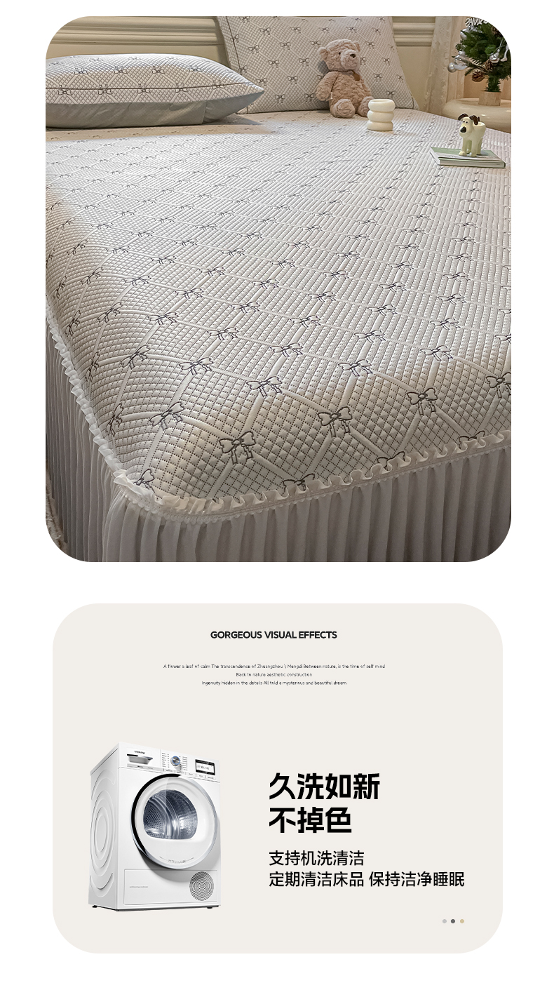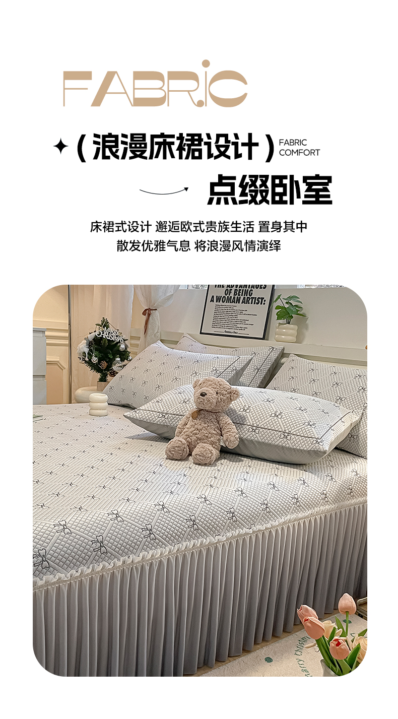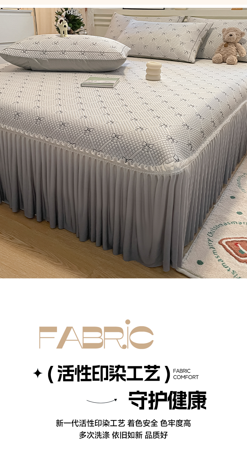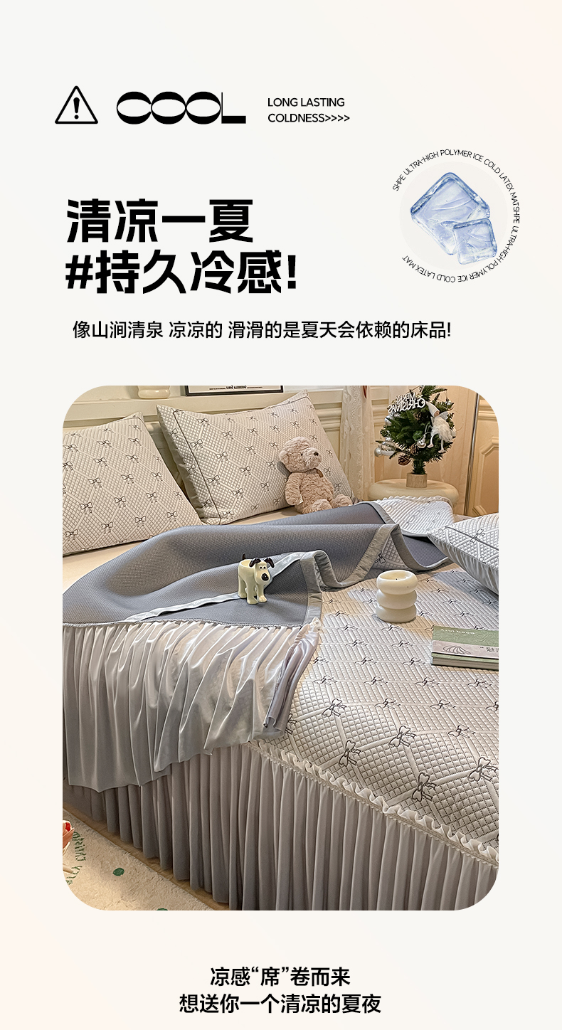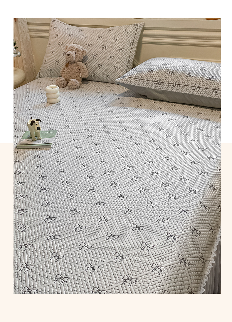 商品名称:雅居纺家纺 2026新款加厚三明治底床裙款凉感席凉席席子 蝴蝶结爱恋-灰