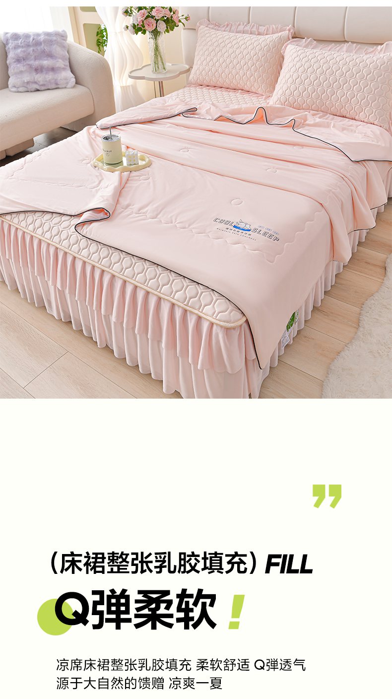 (总)畅畅家纺 2026春夏新款聚乙烯中分子凉感冰感凉豆豆凉席席子床裙三件套幸运草,幸运草-粉,幸运草-灰,幸运草-蓝,幸运草-绿