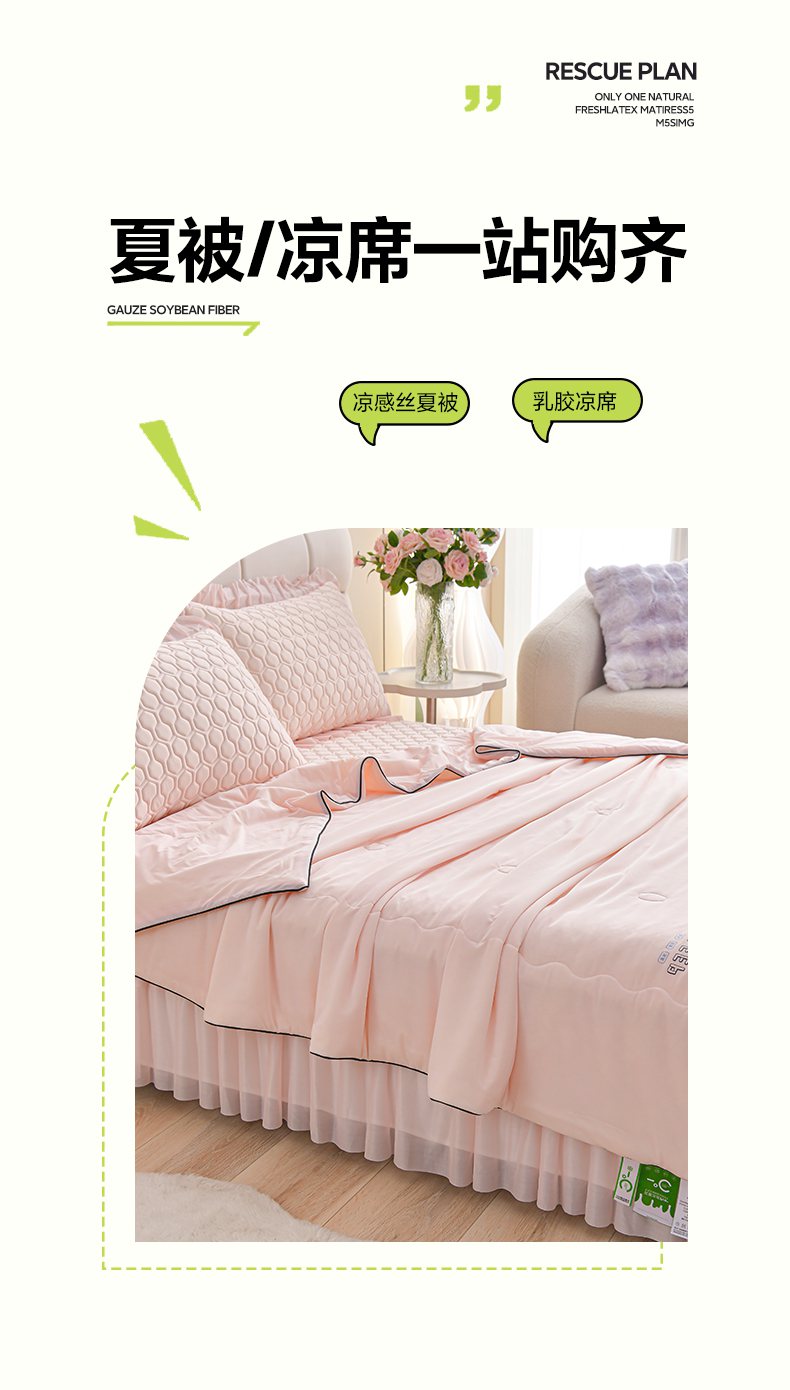 • 91家纺网 家纺一手货源 找家纺 畅畅家纺 2026新款夏季凉感丝足球花纯色凉席席子三件套夏被四件套 足球花-香妃粉