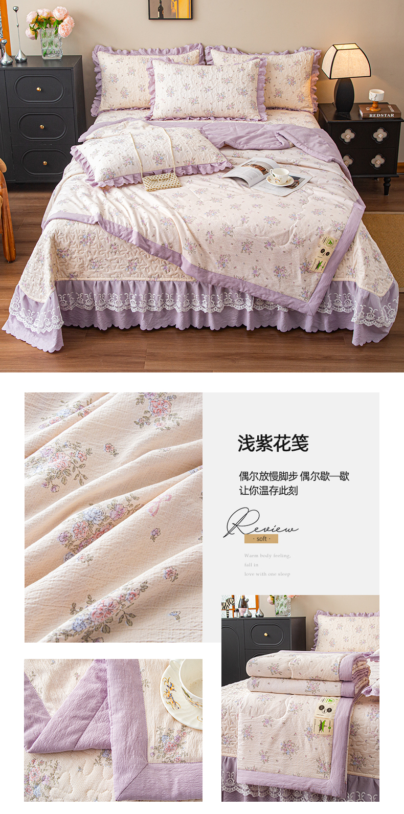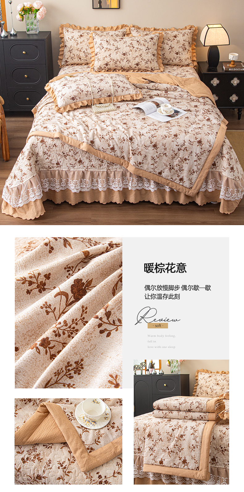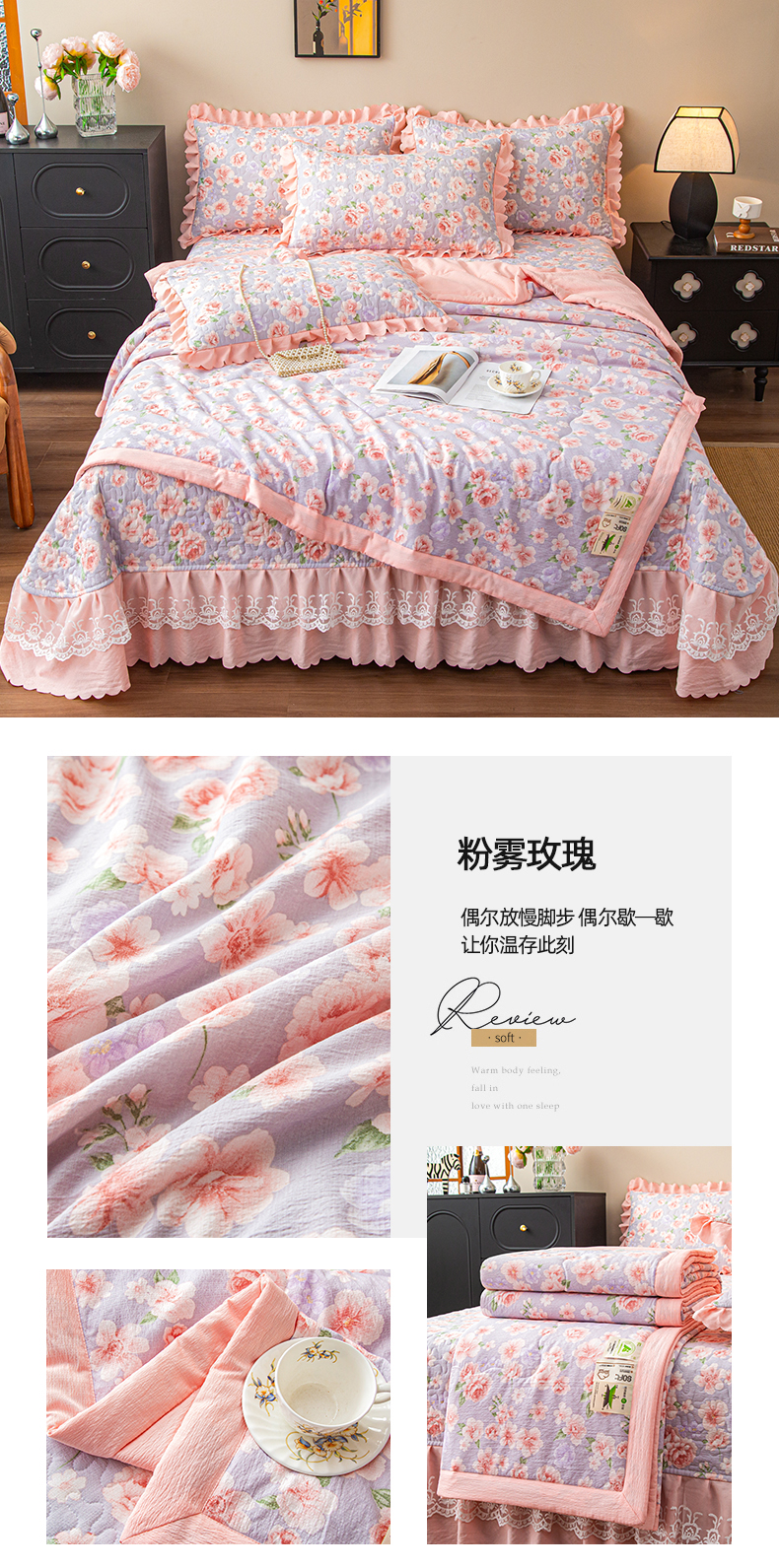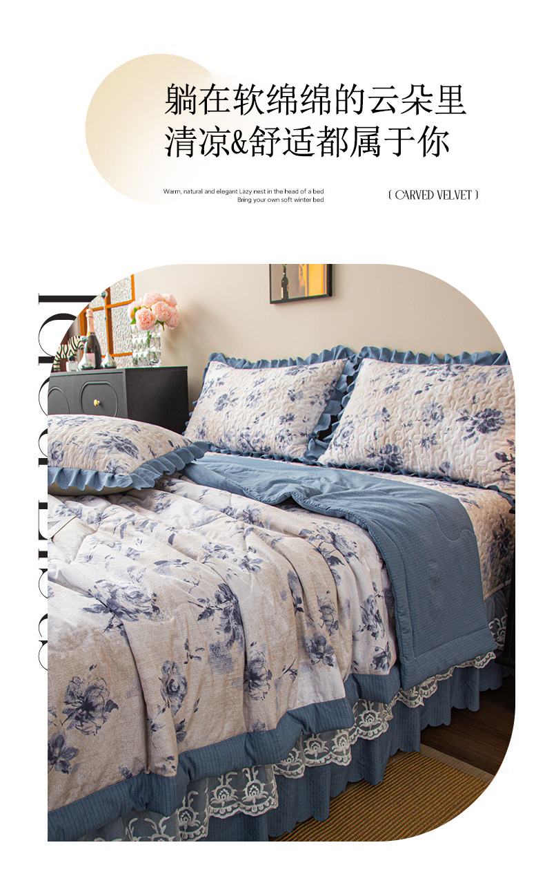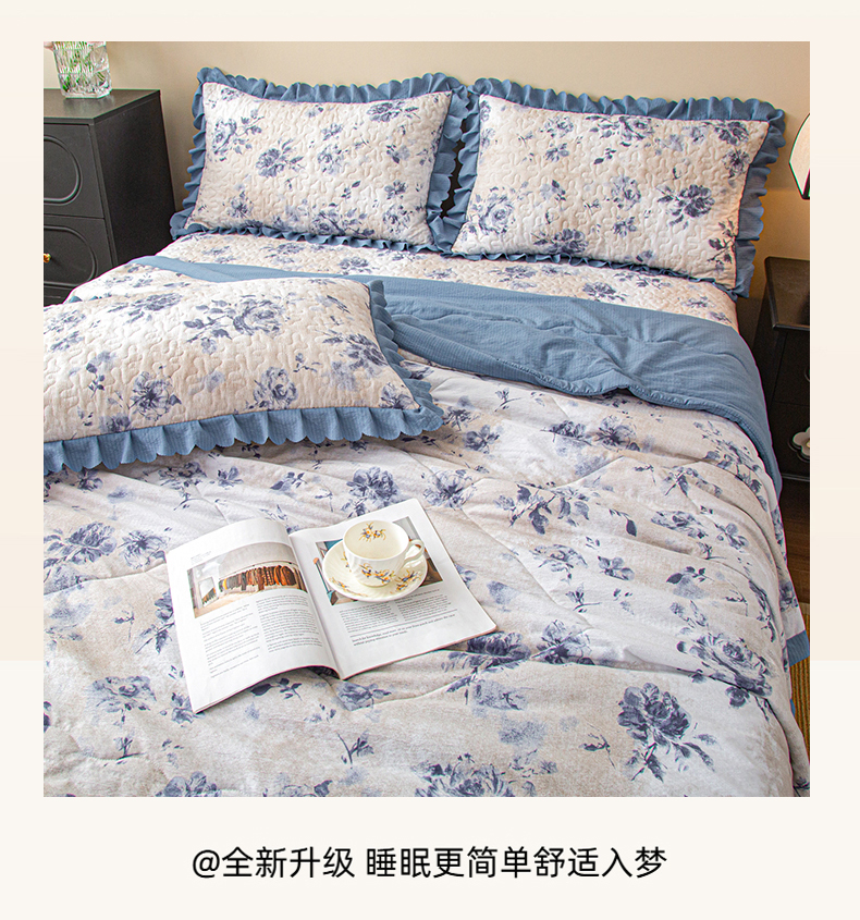 (总)美之润家纺 2026新款原麻夹棉床盖四件套,粉雾玫瑰,粉樱奶白,焦糖野枝,墨蓝玫瑰,暖棕花意,浅蓝花野,浅紫花笺,青雾松影,柔紫花簇,桃桃冰沙,薰衣草信,紫星碎梦,棕咖奶熊