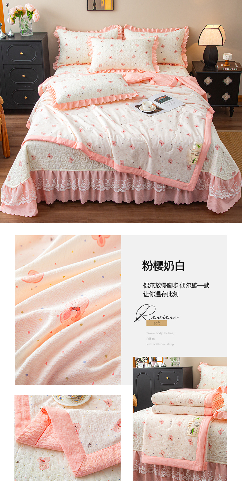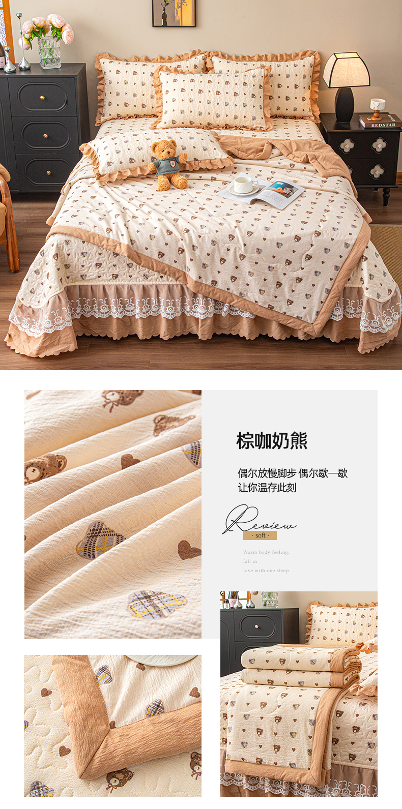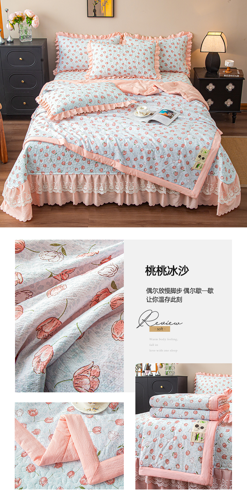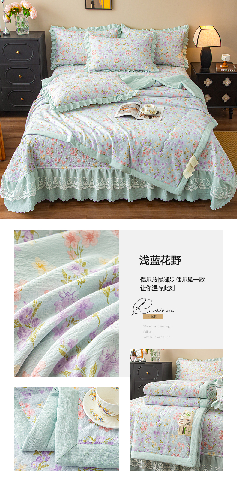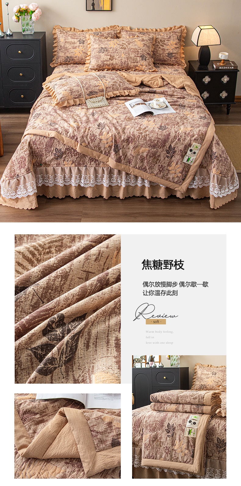 (总)美之润家纺 2026新款原麻夹棉床盖四件套,粉雾玫瑰,粉樱奶白,焦糖野枝,墨蓝玫瑰,暖棕花意,浅蓝花野,浅紫花笺,青雾松影,柔紫花簇,桃桃冰沙,薰衣草信,紫星碎梦,棕咖奶熊