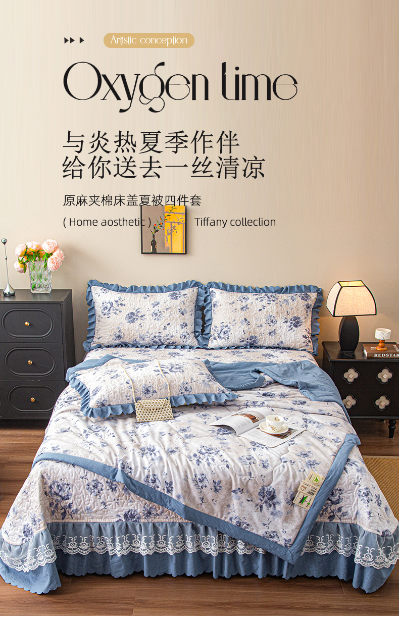 (总)美之润家纺 2026新款原麻夹棉床盖夏被四件套