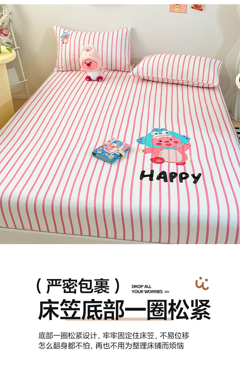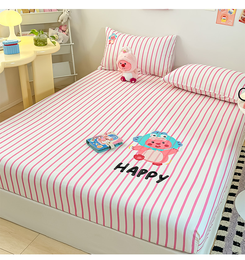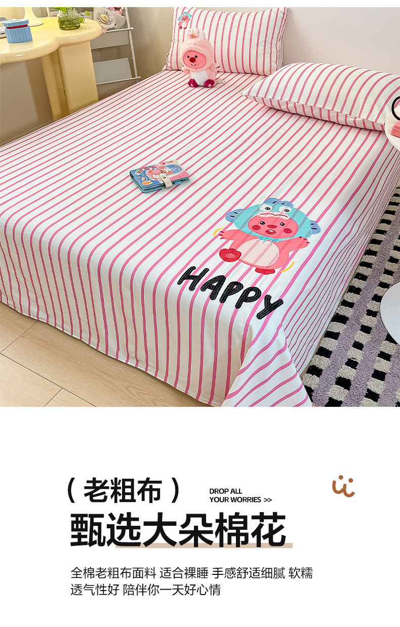 商品名称:雅居纺家纺 2026新款全棉绣花A类老粗布床单单件床单单品凉席席子 老粗布-小海狸-粉