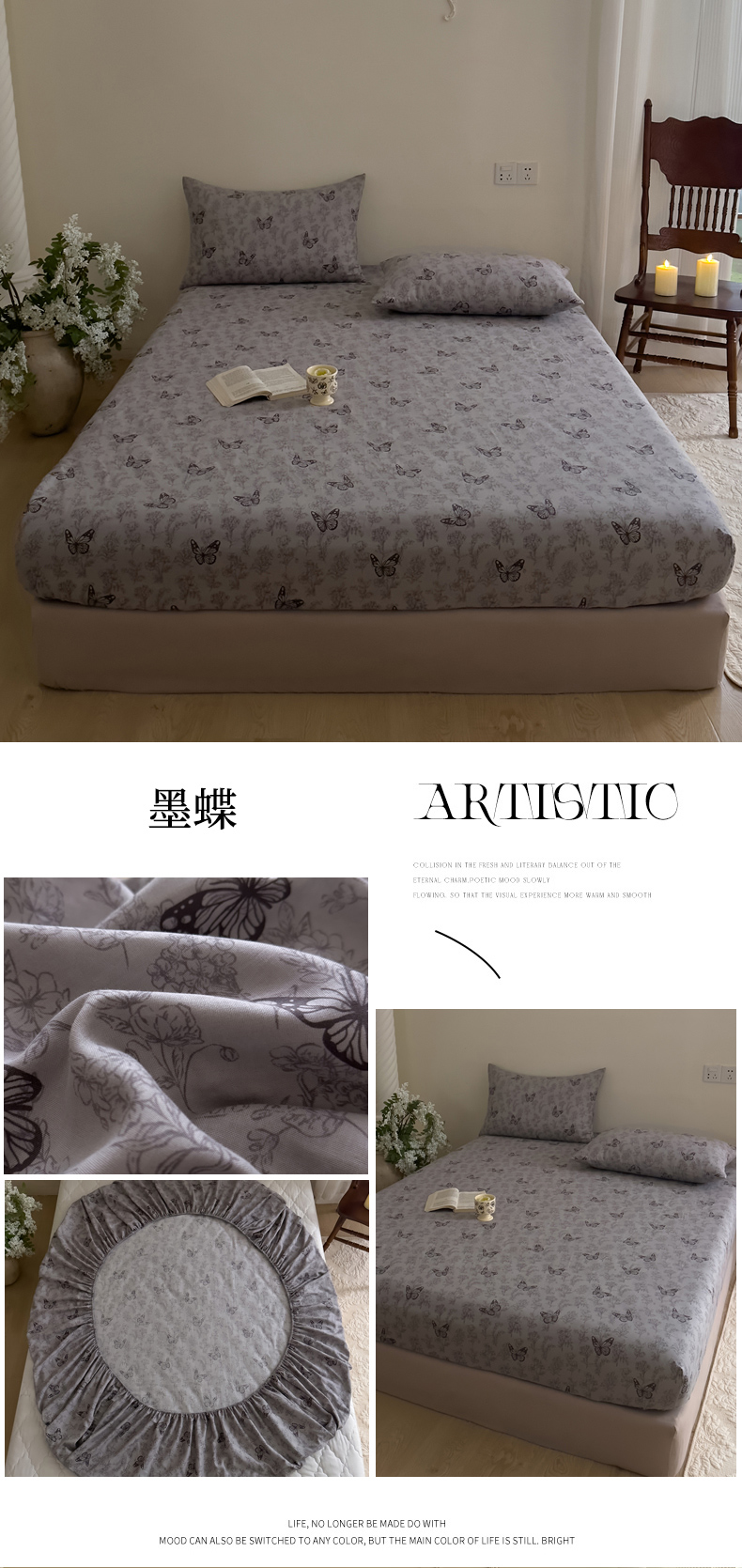 (总)DoDo 兜兜 2026新款全棉纯棉复古双层纱单品床单系列(可定做尺寸),攀枝花,眠香铺,墨蝶,青竹漫-灰,青竹漫-米,睡花间,叶语-灰