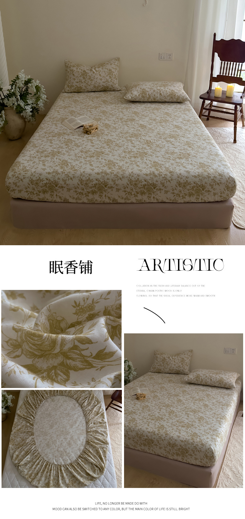 (总)DoDo 兜兜 2026新款全棉纯棉复古双层纱单品床笠系列(可定做尺寸),攀枝花,绿色,眠香铺,墨蝶,浅茶灰,青竹漫-灰,青竹漫-米,深绿色,睡花间,杏仁色,烟灰色,叶语-灰