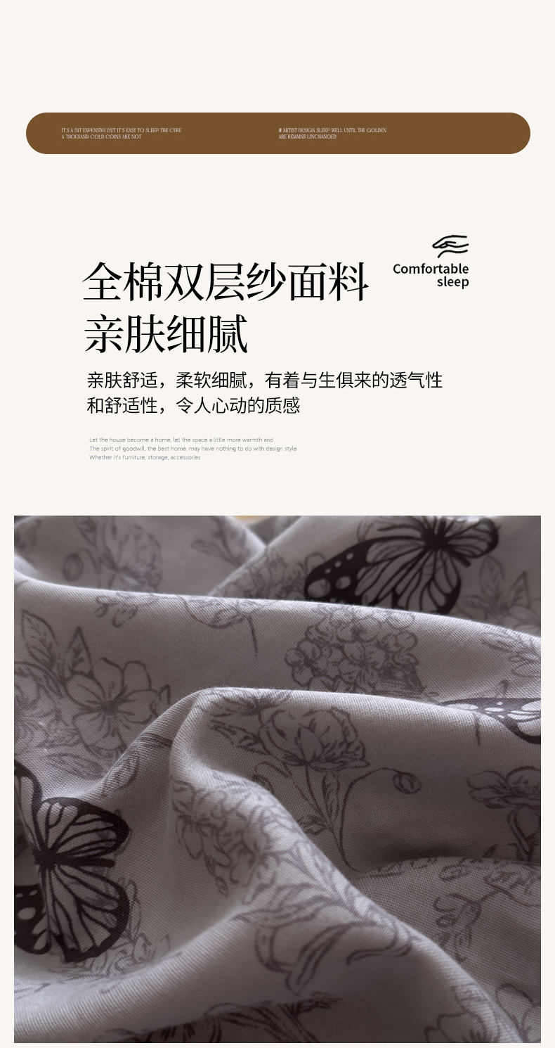 • 91家纺网 家纺一手货源 找家纺 (总)DoDo 兜兜 2026新款全棉纯棉复古双层纱四件套系列(可定做尺寸),攀枝花,眠香铺,墨蝶,青竹漫-灰,青竹漫-米,睡花间,叶语-灰
