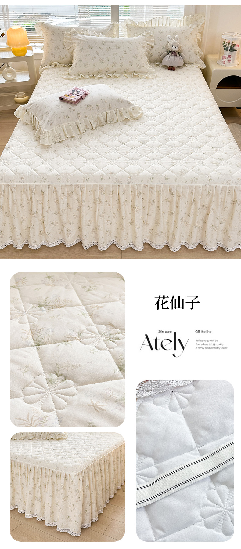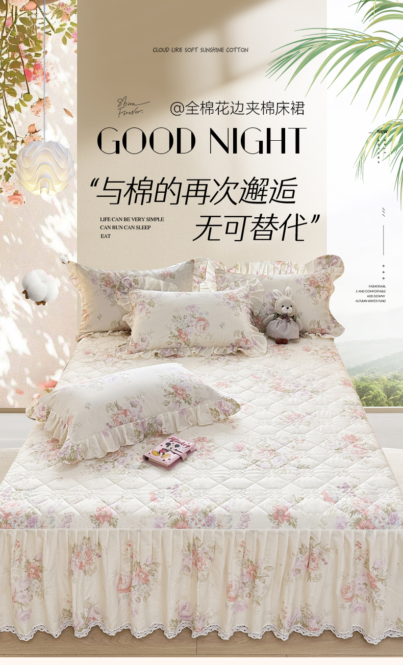 (总)忘忧草 2026新款13372全棉夹棉款床笠式床裙,1屋顶花园,2樱桃季 紫,3蜜汁 粉,4南枝,5如愿,6贝贝熊,7花簇-米,8秋洛,9少女心,10温迪