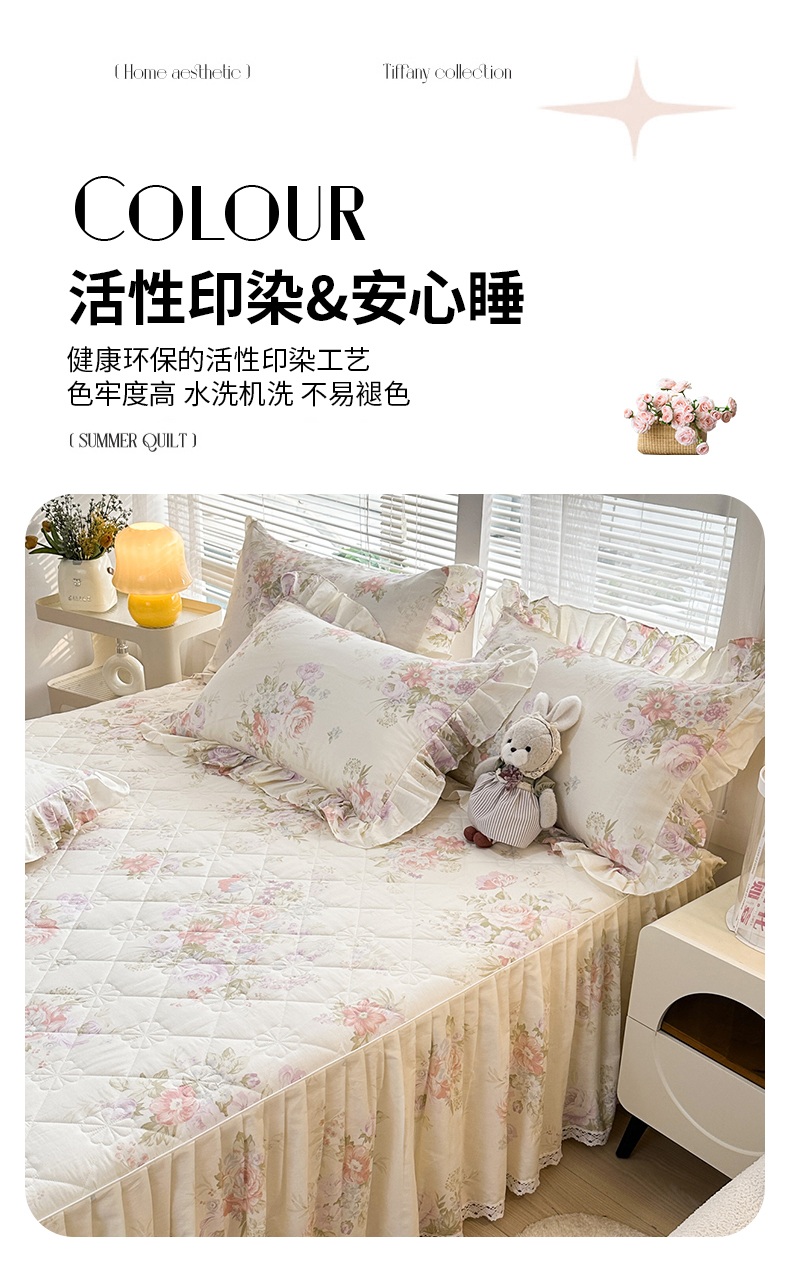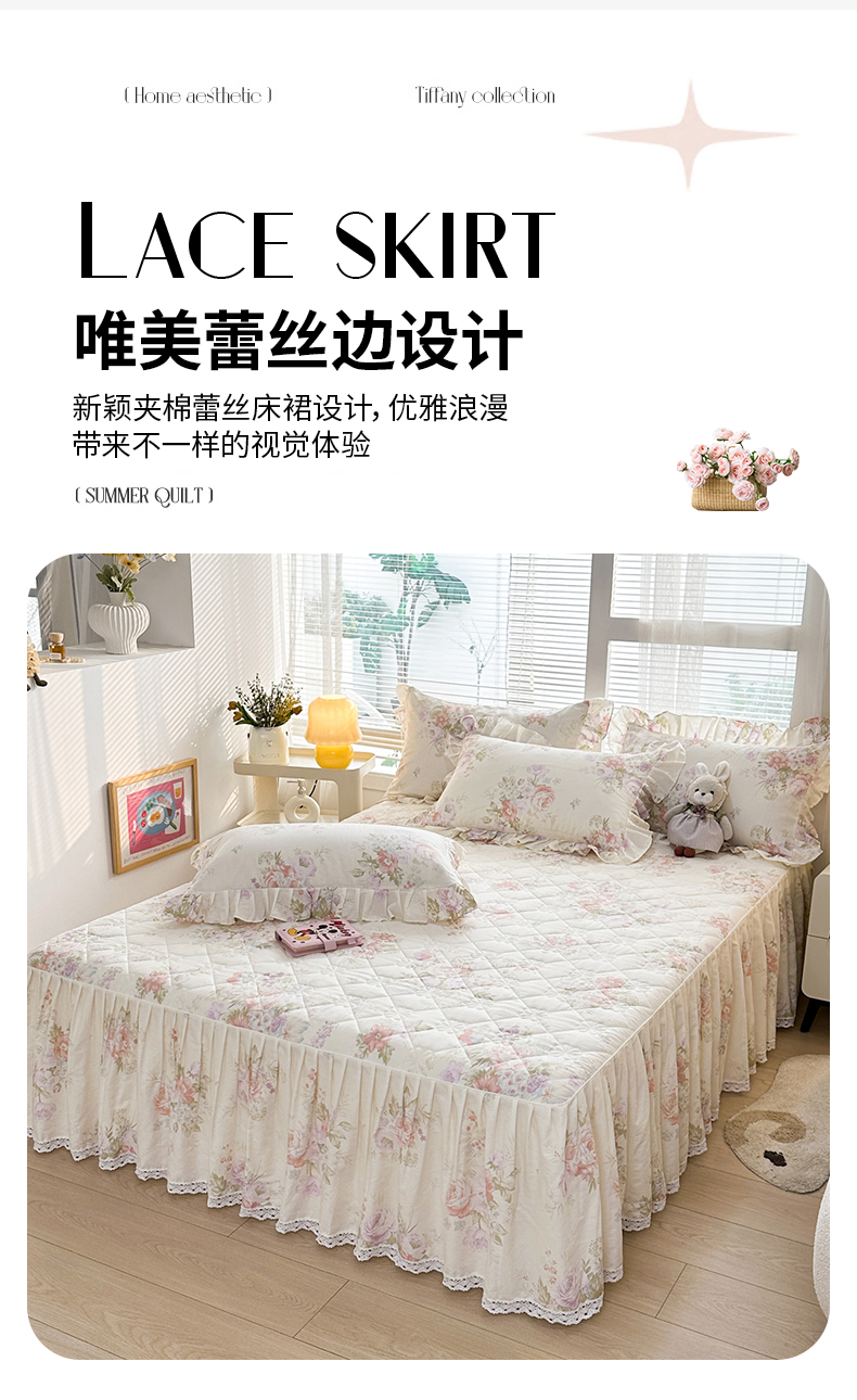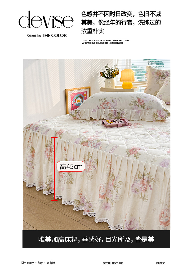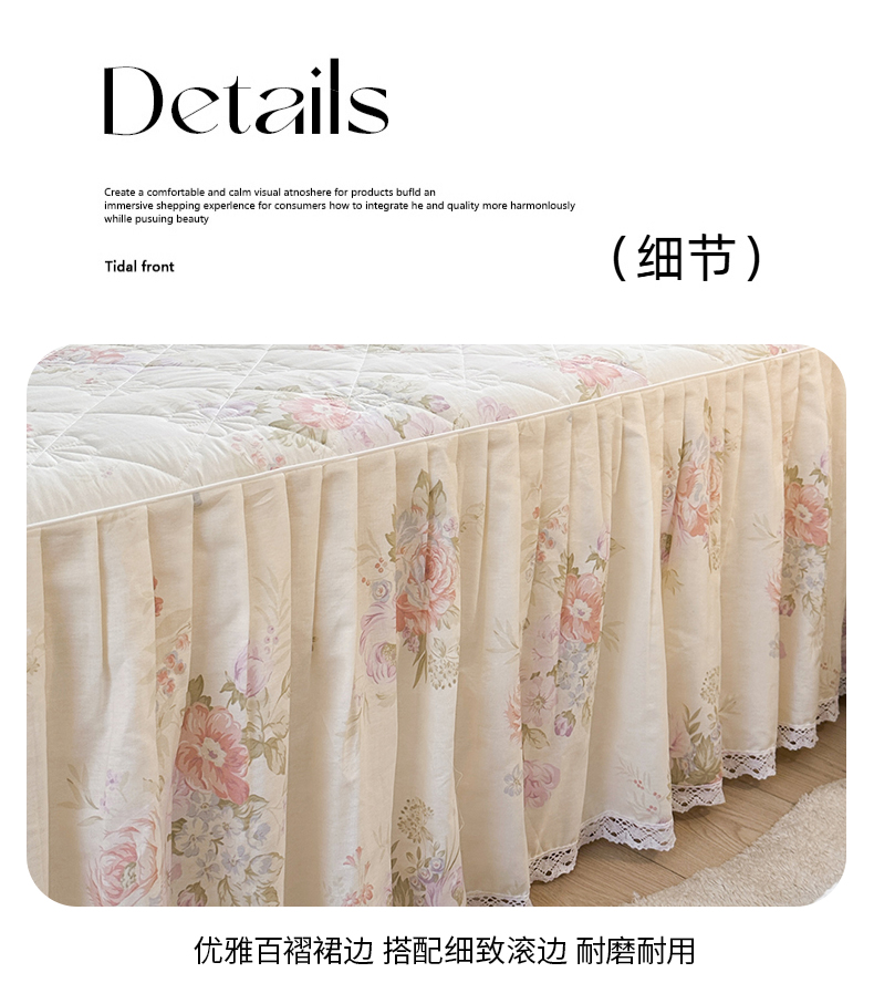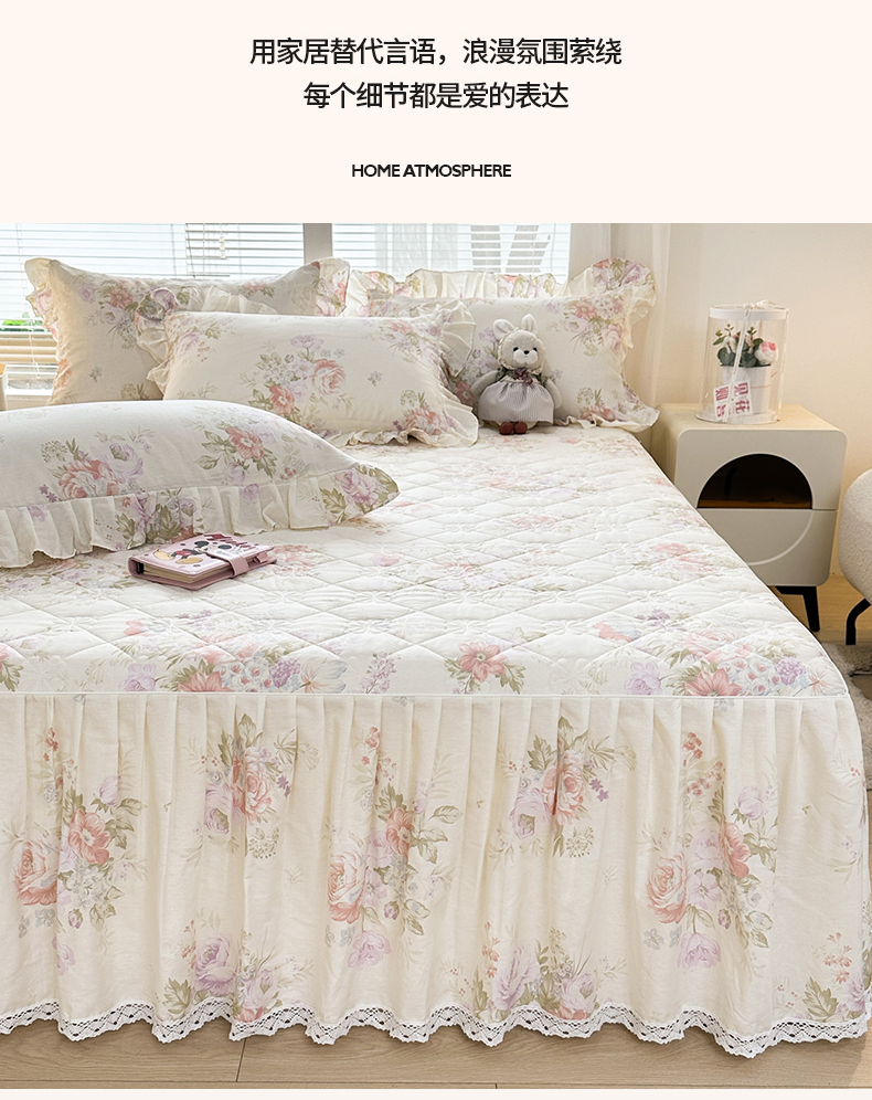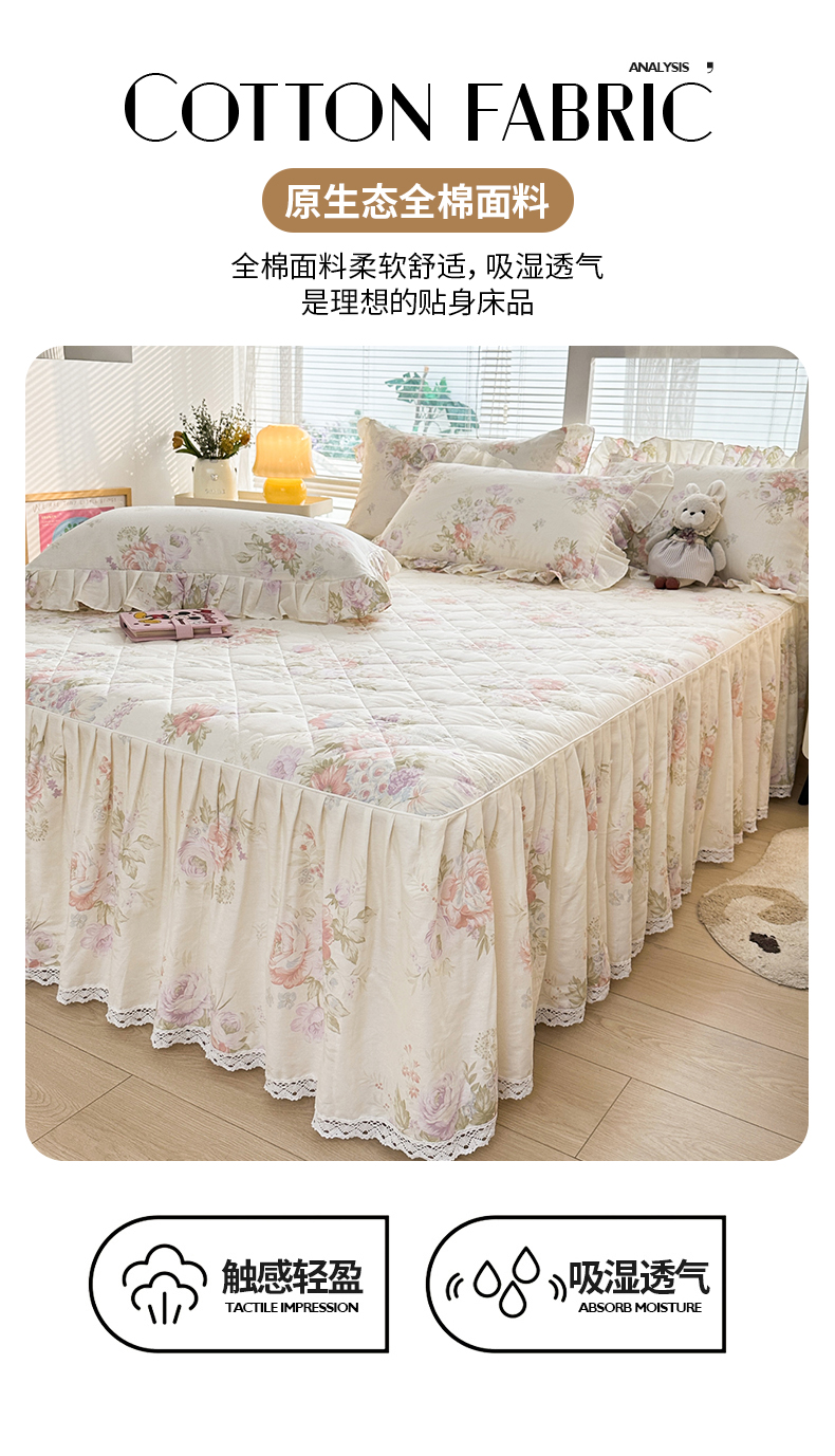 商品名称:忘忧草 2026春夏新款全棉纯棉夹棉印花床裙床裙单件 烟笼蔷薇