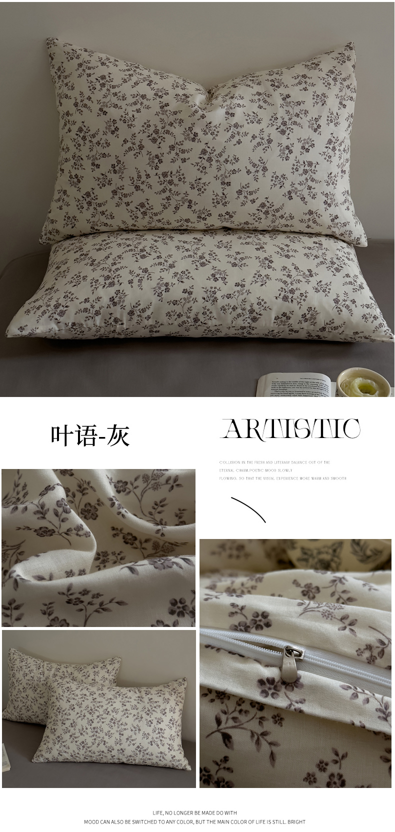 (总)DoDo 兜兜 2026新款全棉纯棉复古双层纱单品枕套系列(可定做尺寸),攀枝花,眠香铺,墨蝶,青竹漫-灰,青竹漫-米,睡花间,叶语-灰