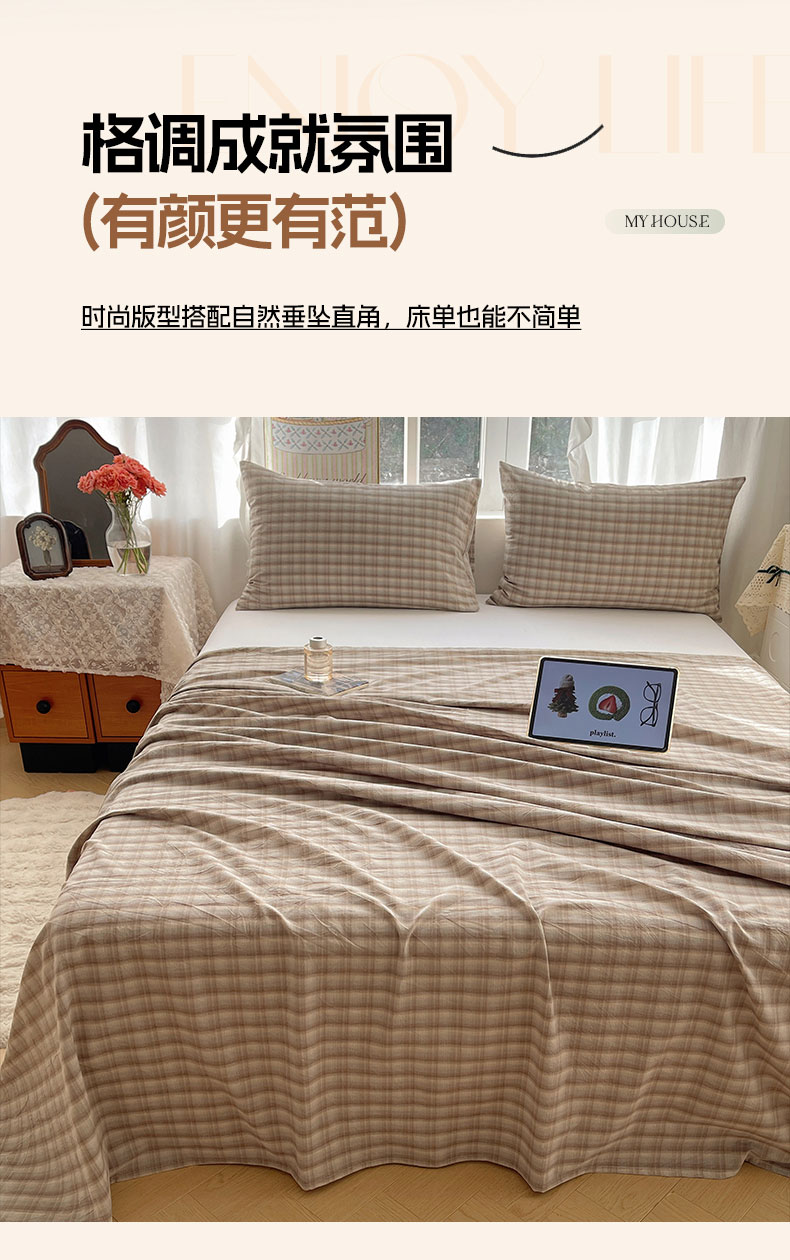 (总)六巷胡同 2026新款A类全棉纯棉水洗棉色织格子单品床单 床单单件,追光-蓝格,川奈-咖格,觅影-粉格,觅影-黑格,觅影-咖格,觅影-棕格,巷往-红格,巷往-灰格,巷往-橘格,巷往-蓝格,巷往-绿格,悦野-白格,悦野-灰格,知序-灰格,知序-橘格,知序-蓝格,知序-绿格,逐风-红格,逐风-灰格,逐风-咖格,追光-红格,追光-米格,组合图仅供展示不可下单