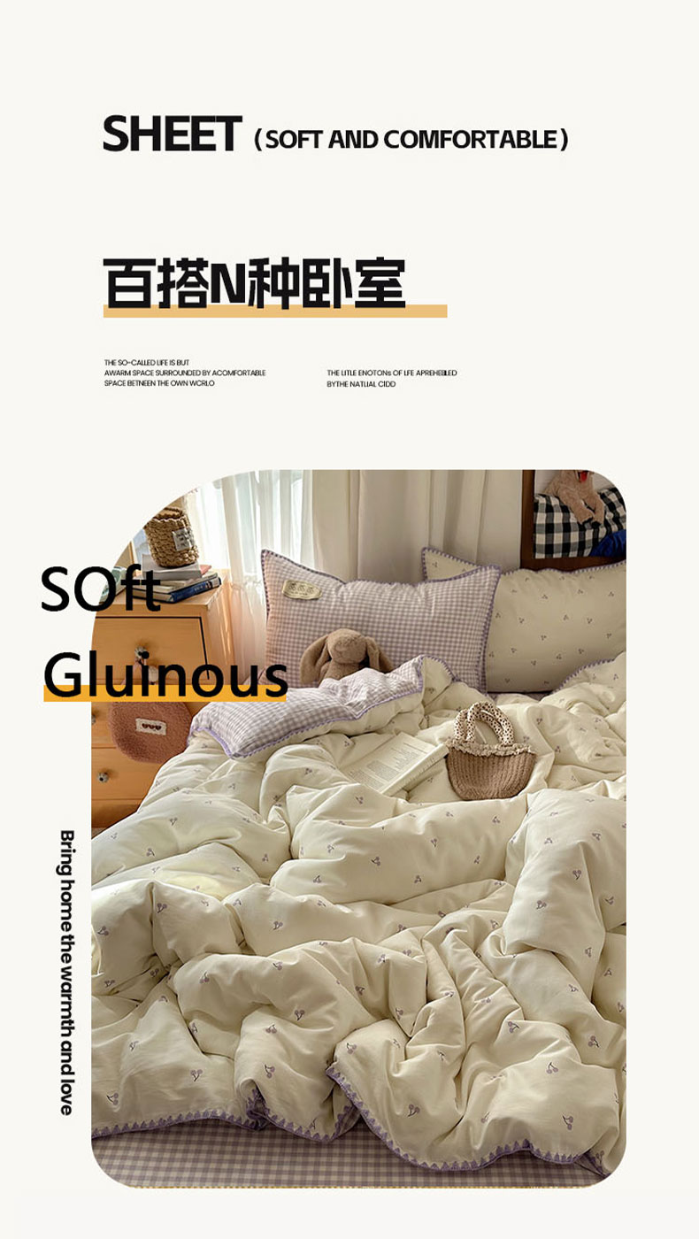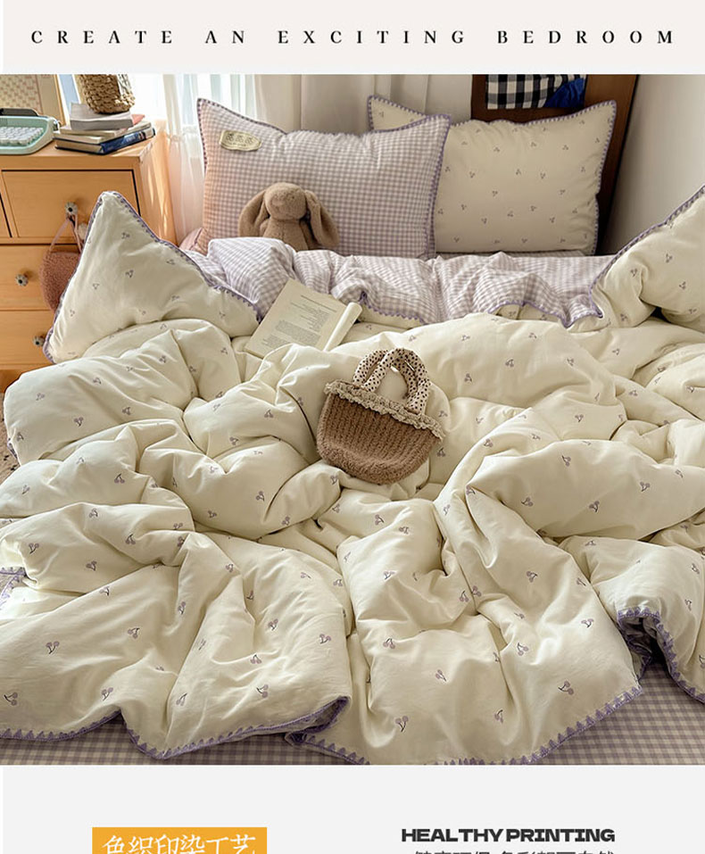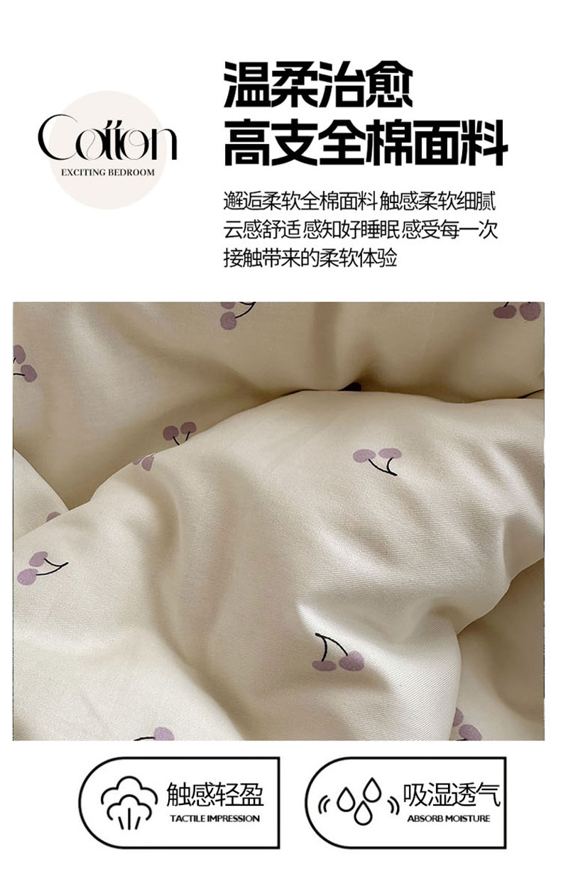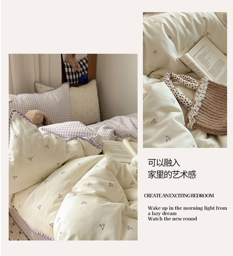 当前位置: 91家纺网 > 商品网购 > 床品套件 > 四件套 > 全棉普通四件套 > 桃子家居 2026新款小清新A类全棉纯棉水洗棉色织混搭四件套甜心樱桃 棉三角针-甜心樱桃紫