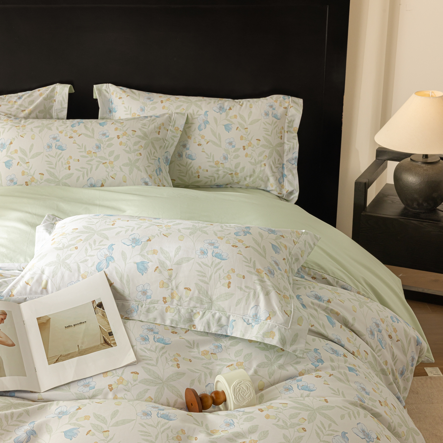 莱豫家纺 2026新款50s阿克苏长绒棉数码印花四件套 宛春兰
