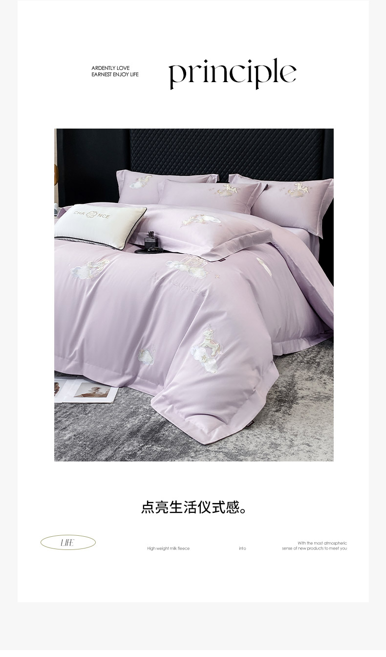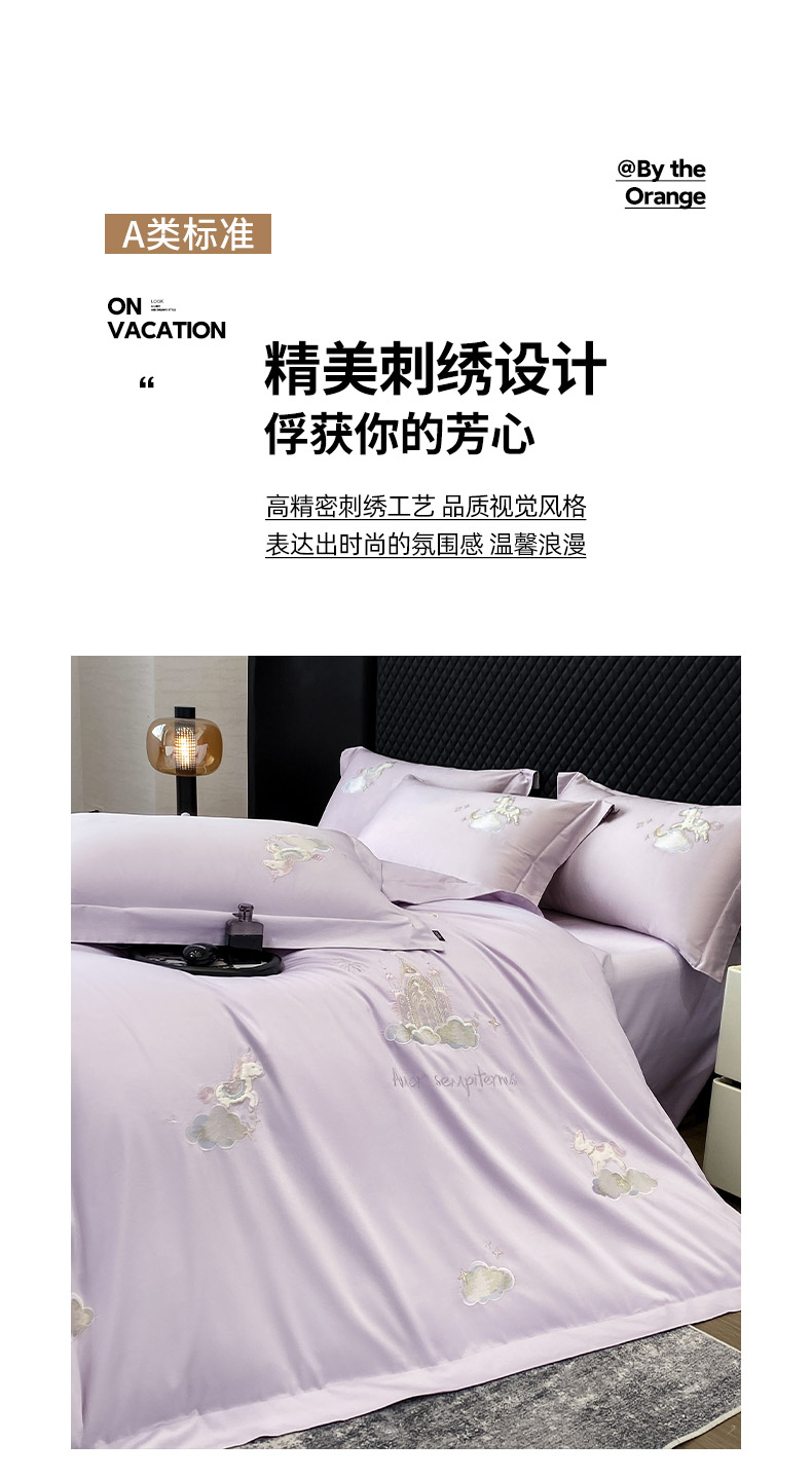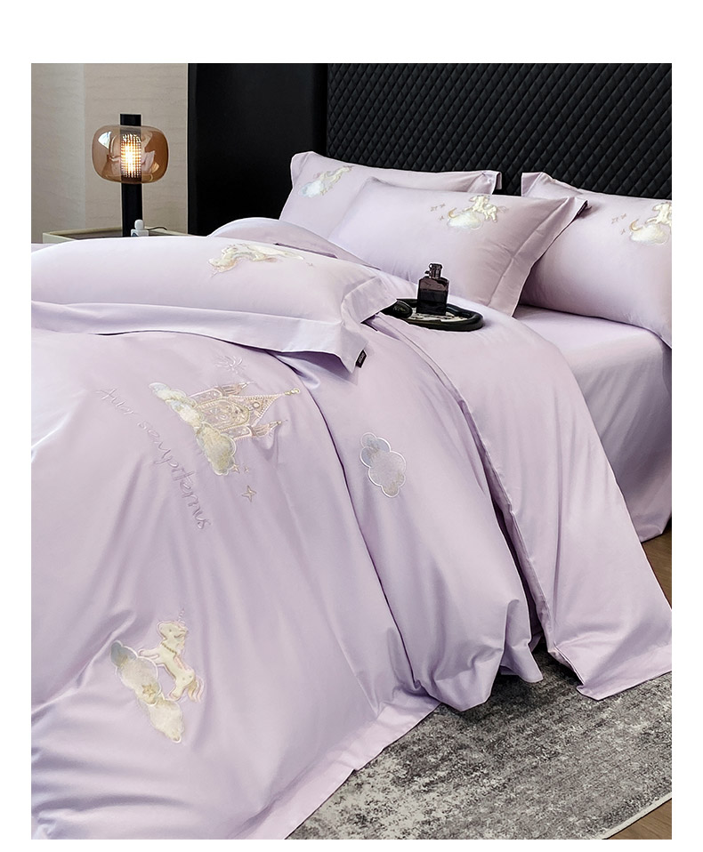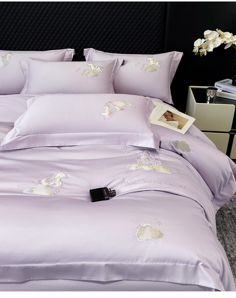 当前位置: 91家纺网 > 商品网购 > 床品套件 > 四件套 > 长绒棉四件套 > 春夏新品A类长绒棉纯棉四件套100全棉重工刺绣被套床单床笠纯色高端轻奢床上用品 城堡小马-黛紫