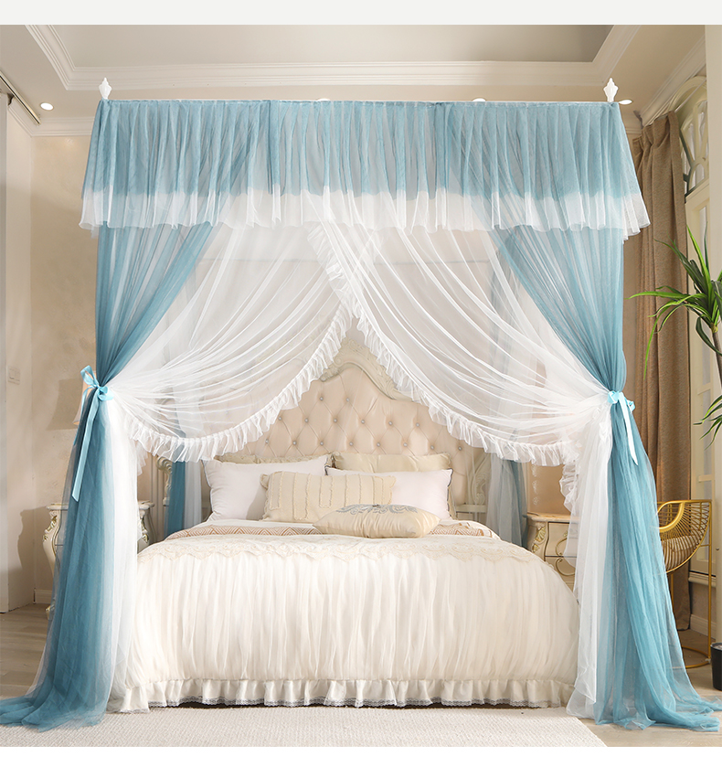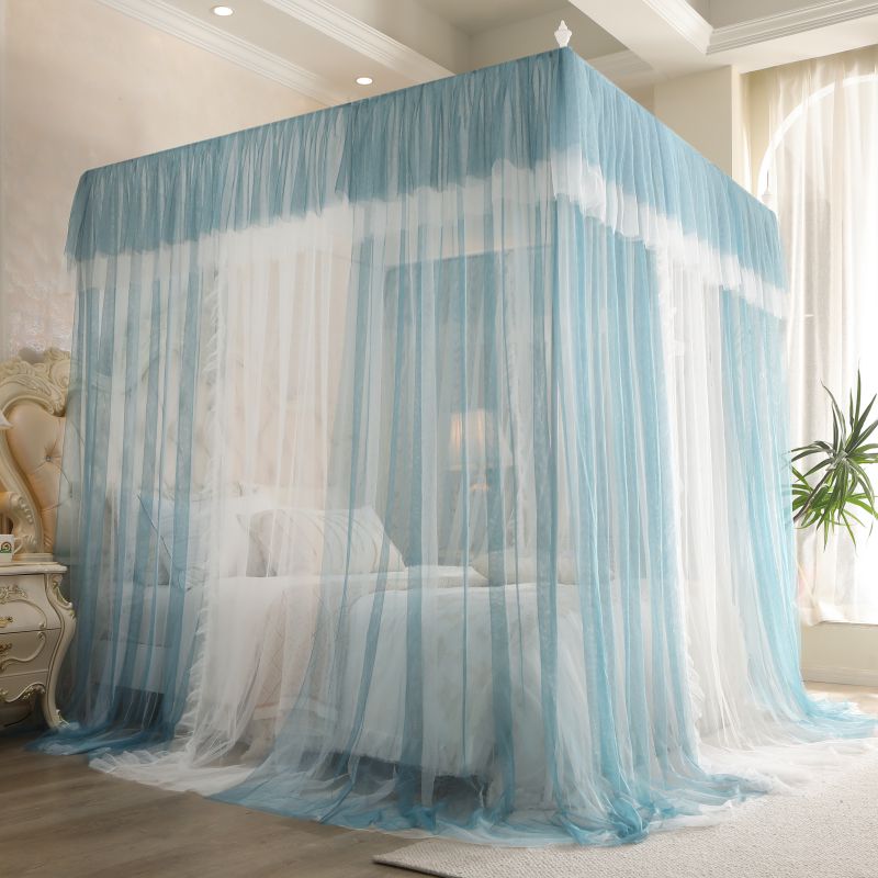 (总)青竹苑 2026春夏新款双层纱撞色落地蚊帐,孔雀蓝,薄荷绿,宝蓝,嫩粉色,柠檬黄,太妃紫,香槟色,玉色