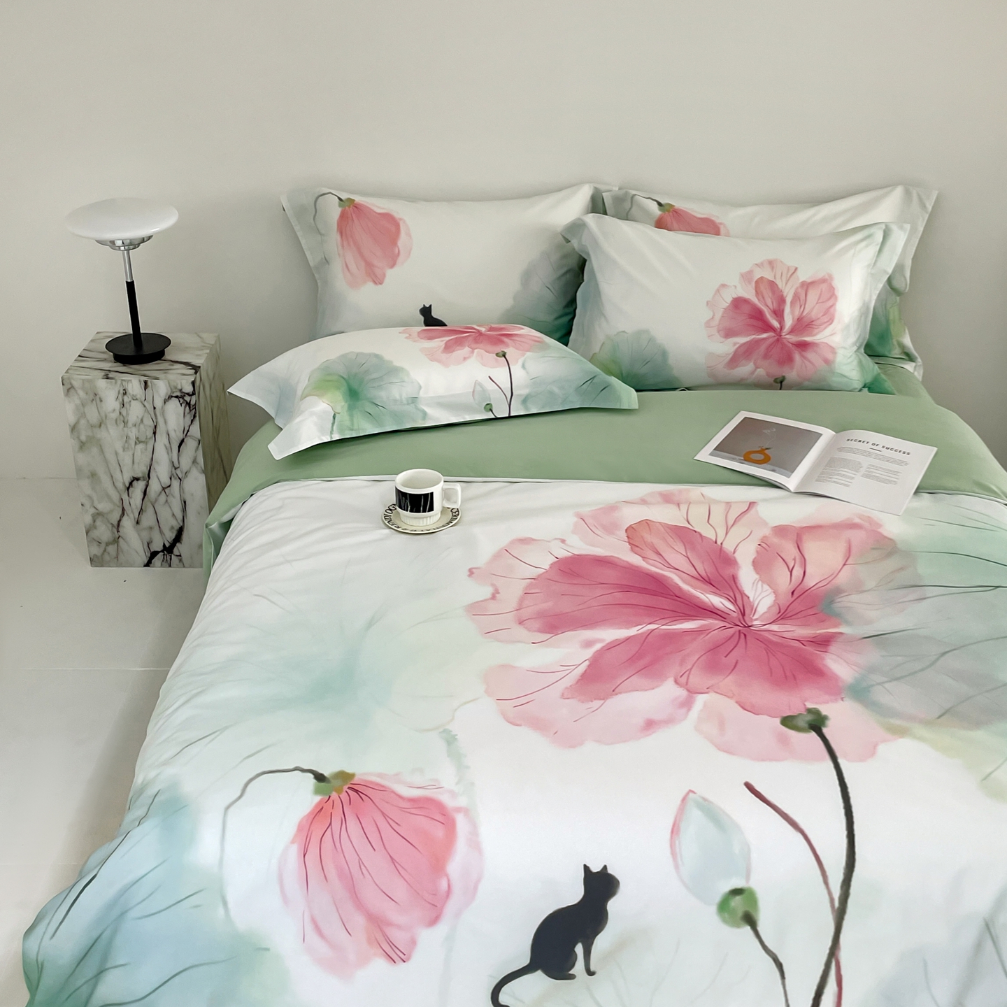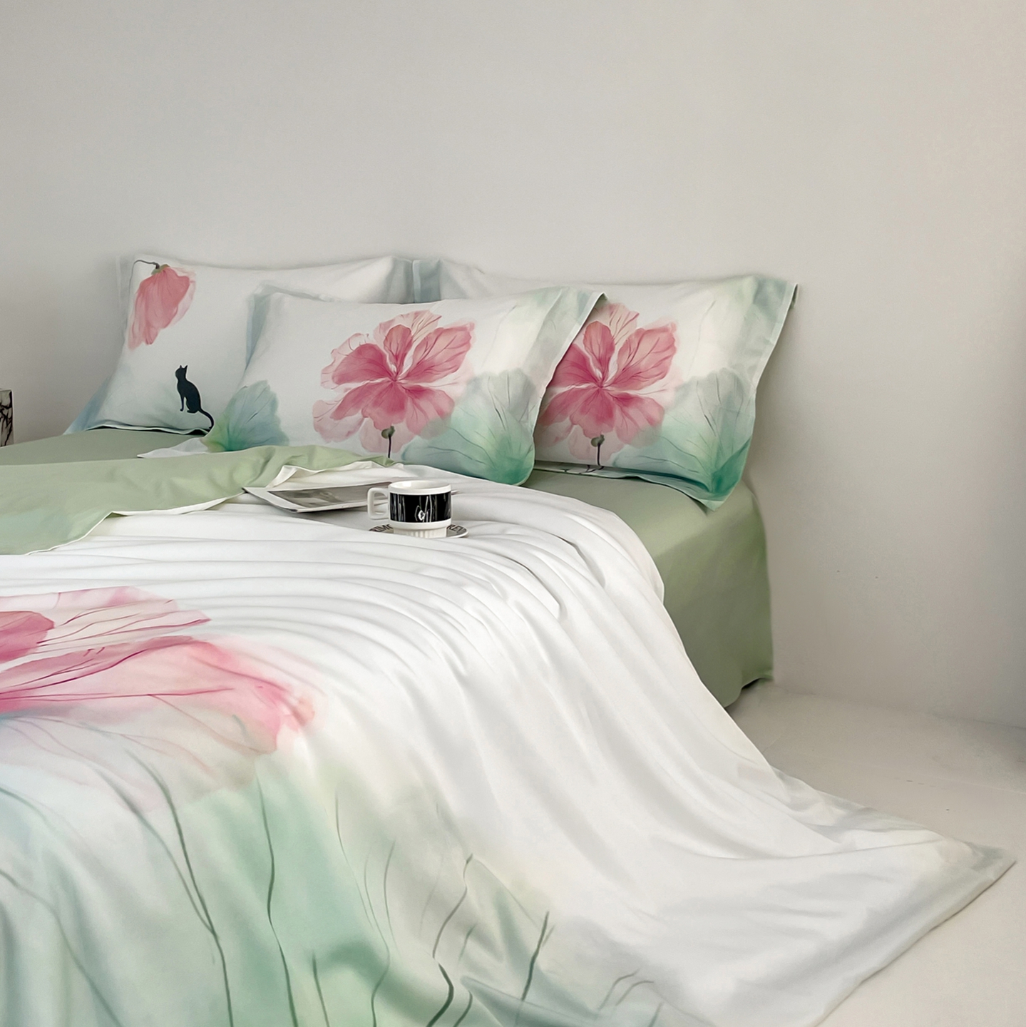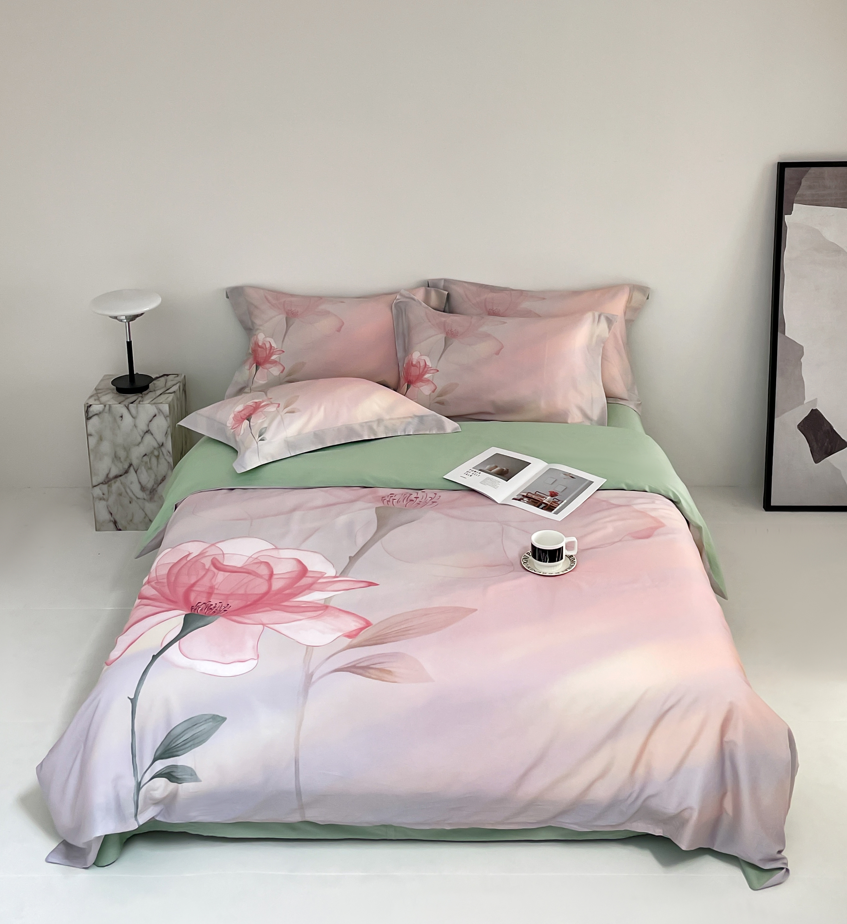金奇达家纺 2026新款茧养天丝棉四件套-朝颜(标准号全网控价(折后券后)不低于268元) 朝颜-水云粉