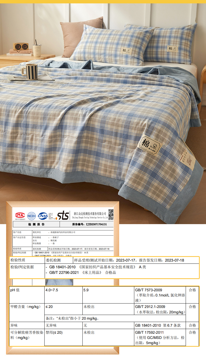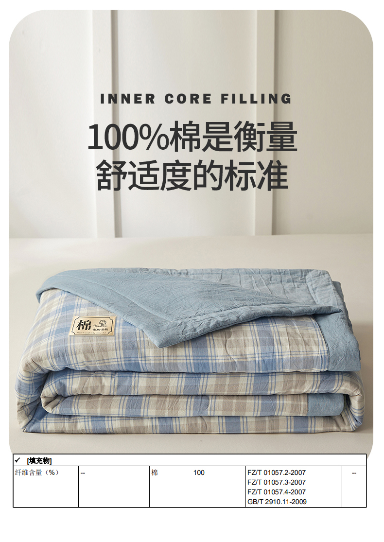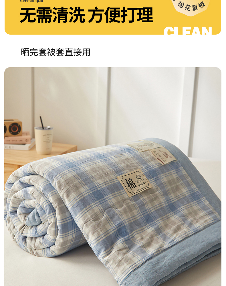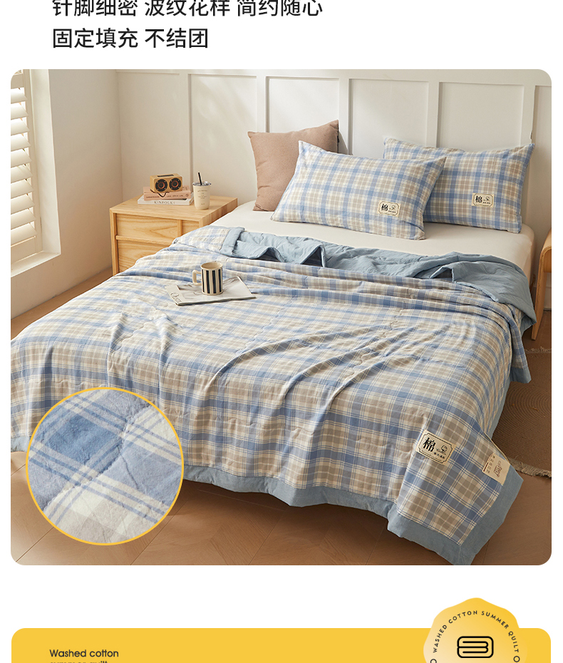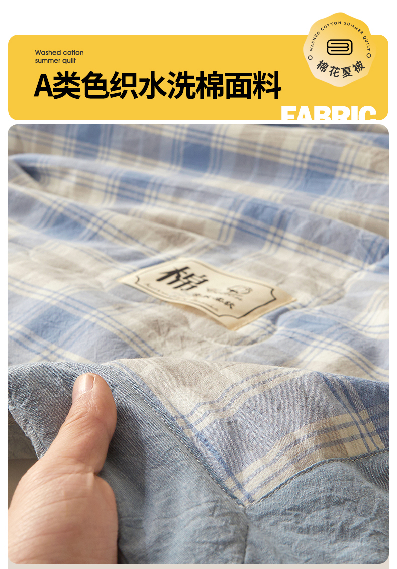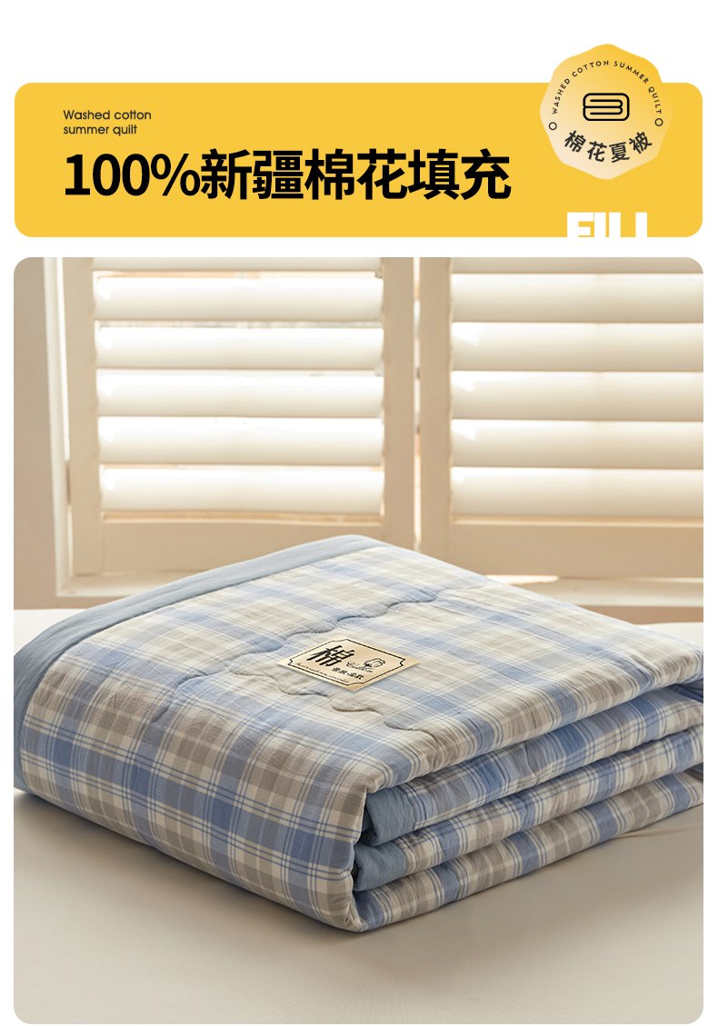 • 91家纺网 家纺一手货源 找家纺 招财星家纺 2026新款A类无印风100%新疆棉花夏被纯棉夏凉被空调被子薄被芯棉花被四件套 蓝黄格