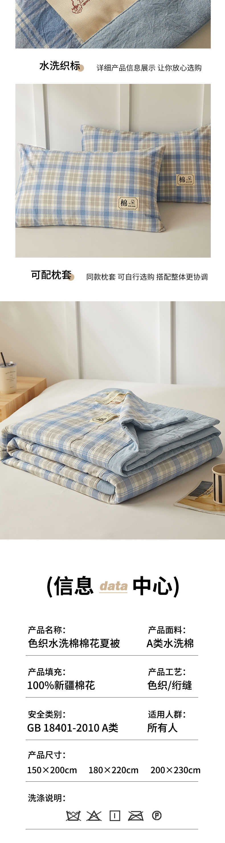 150x200cm单夏被+枕套一对