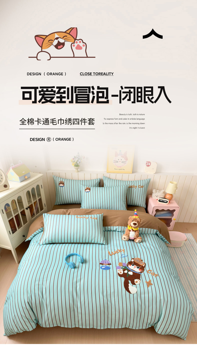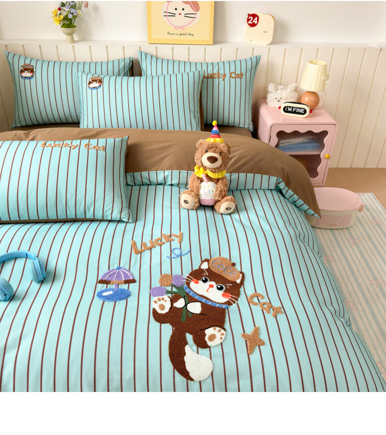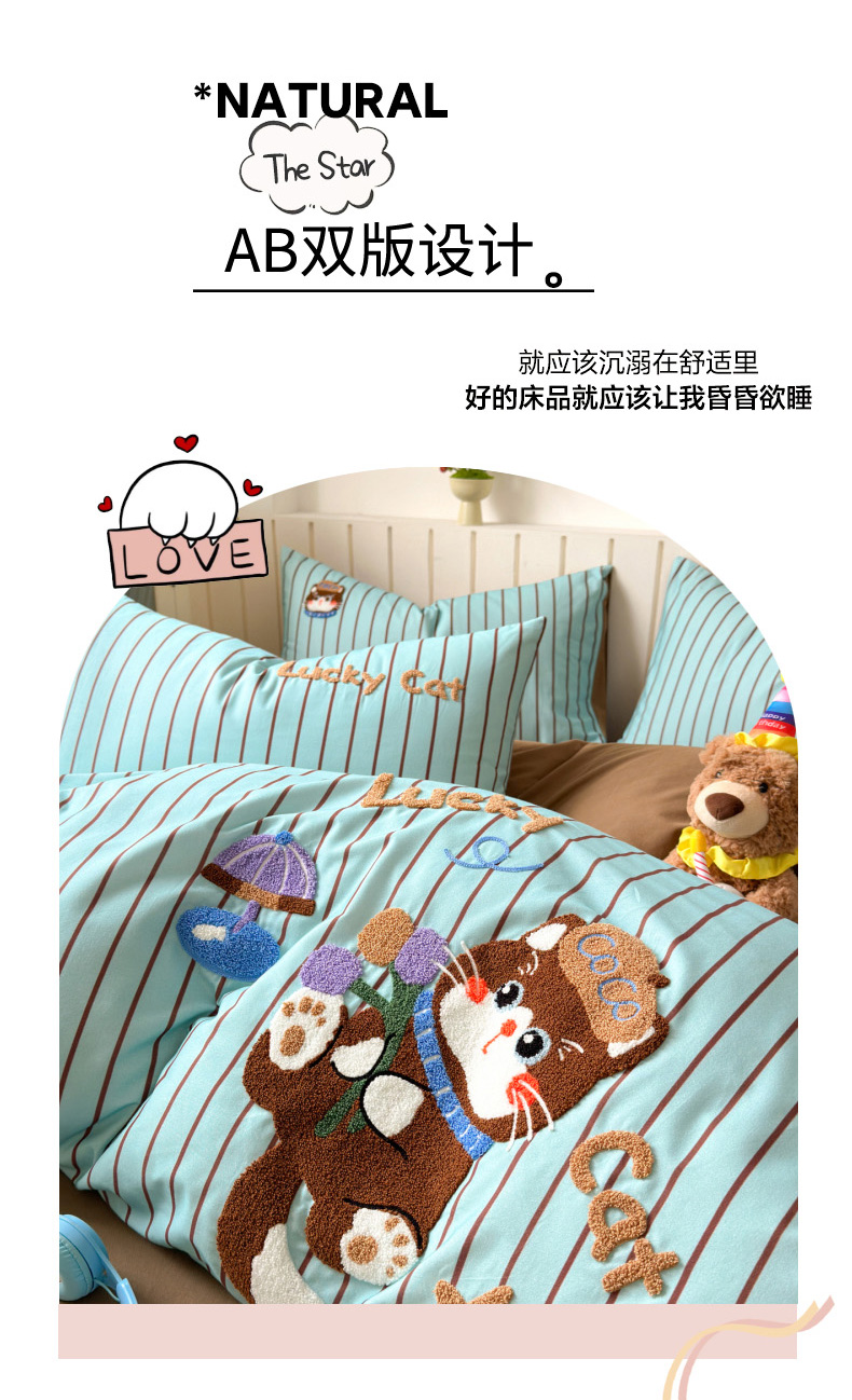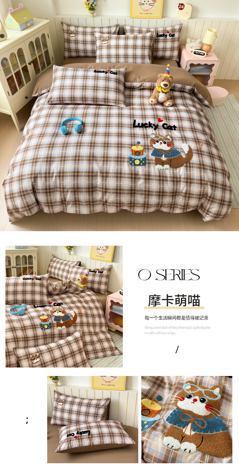 当前位置: 91家纺网 > 商品网购 > 床品套件 > 四件套 > 全棉普通四件套 > 如意朵 2026新款超柔高密全棉小清新绣花四件套(专版花型) 幸运喵喵