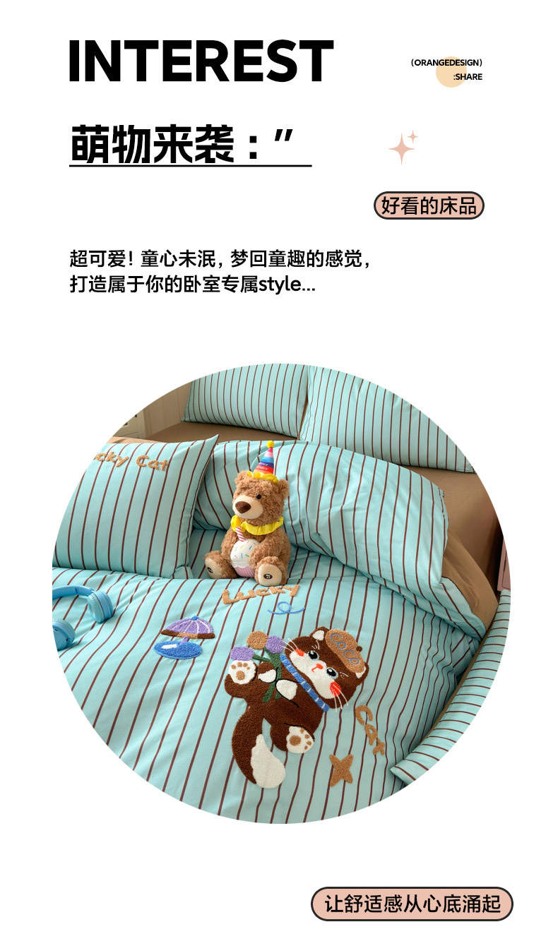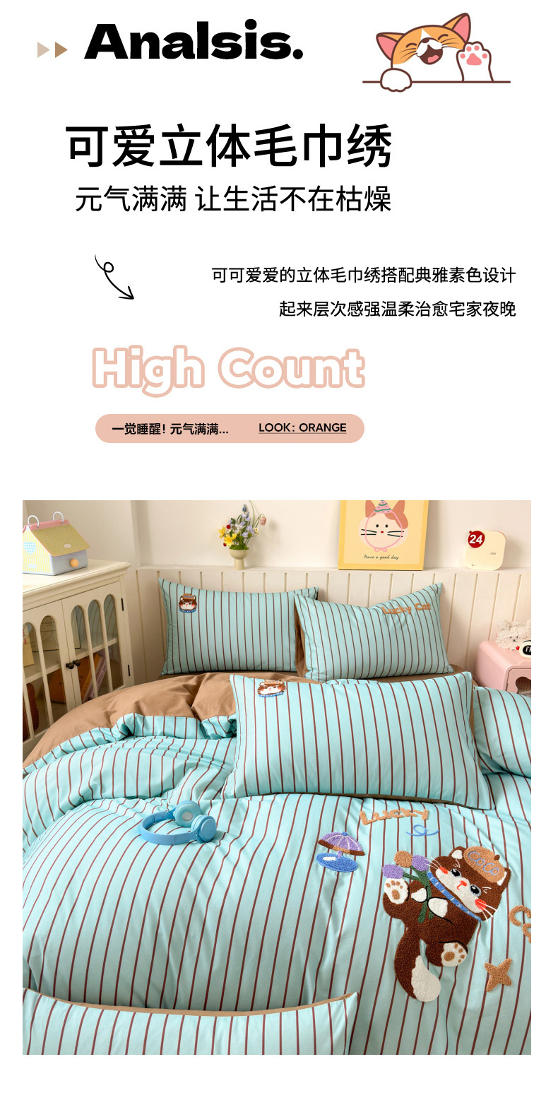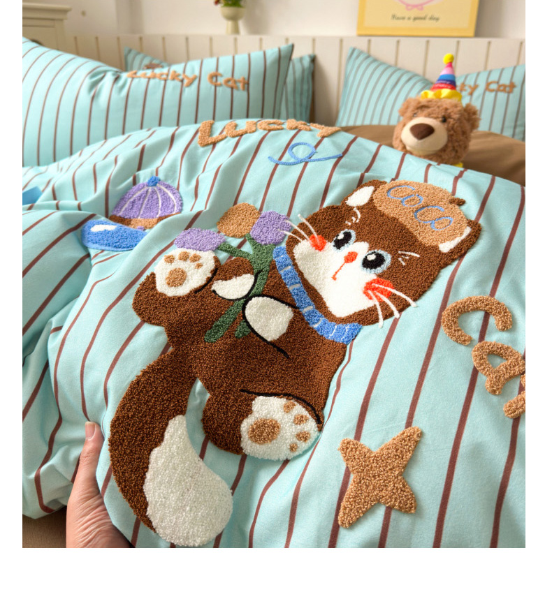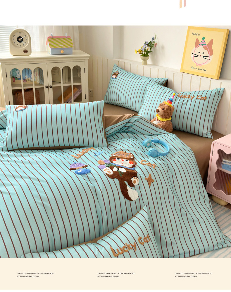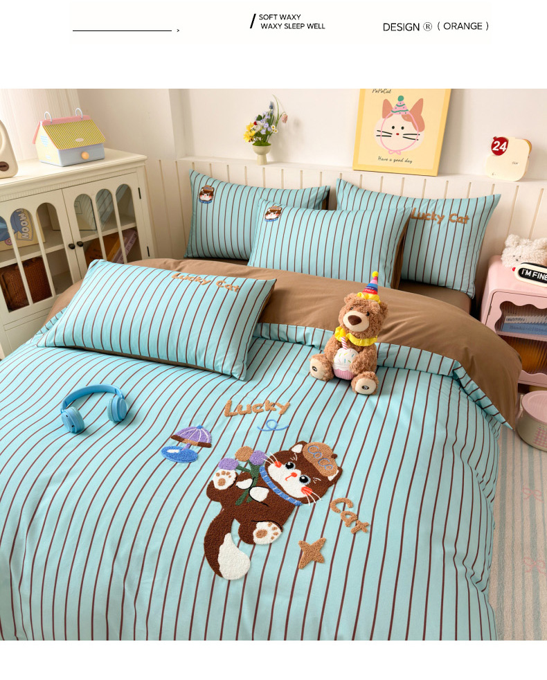 当前位置: 91家纺网 > 商品网购 > 床品套件 > 四件套 > 全棉普通四件套 > 如意朵 2026新款超柔高密全棉小清新绣花四件套(专版花型) 幸运喵喵