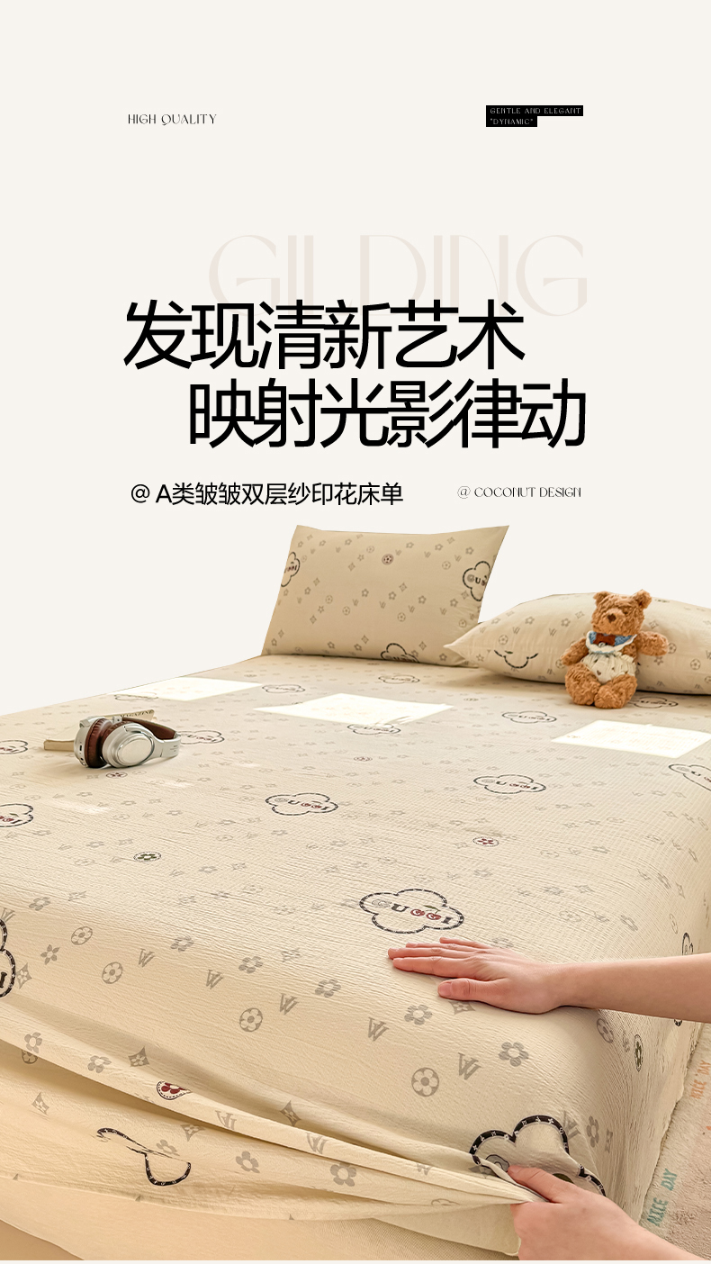 眠势力 2026新款双层纱床单单件云感皱皱纱床罩三件套 组合