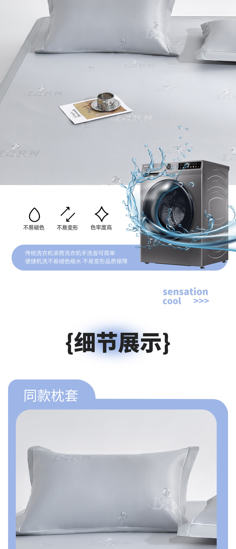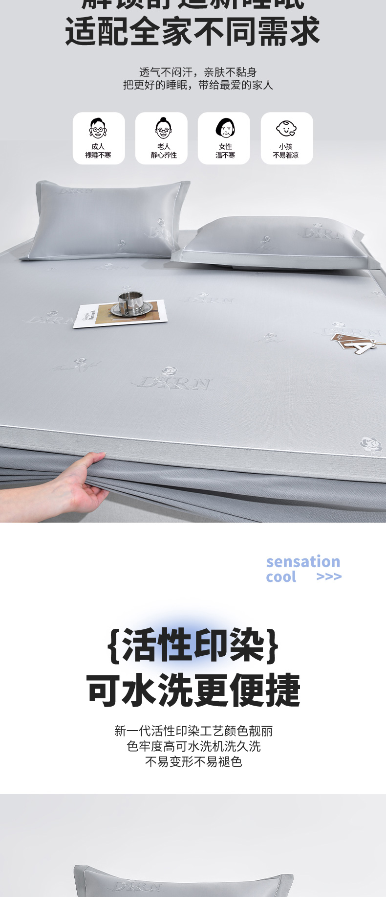 (总)小牛席业 2026新款半定位大提花凉感冰丝席(床笠款)凉席竹席藤席冰藤席乳胶席豆豆席,灰色,粉色,蓝色,香槟